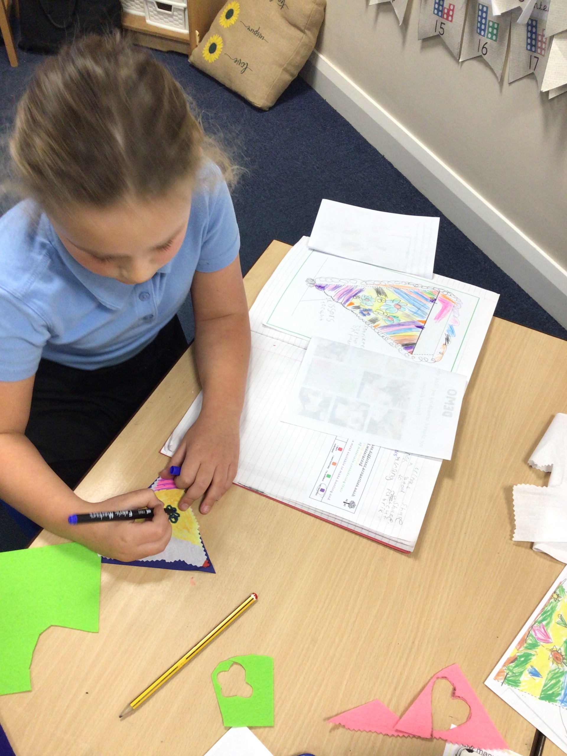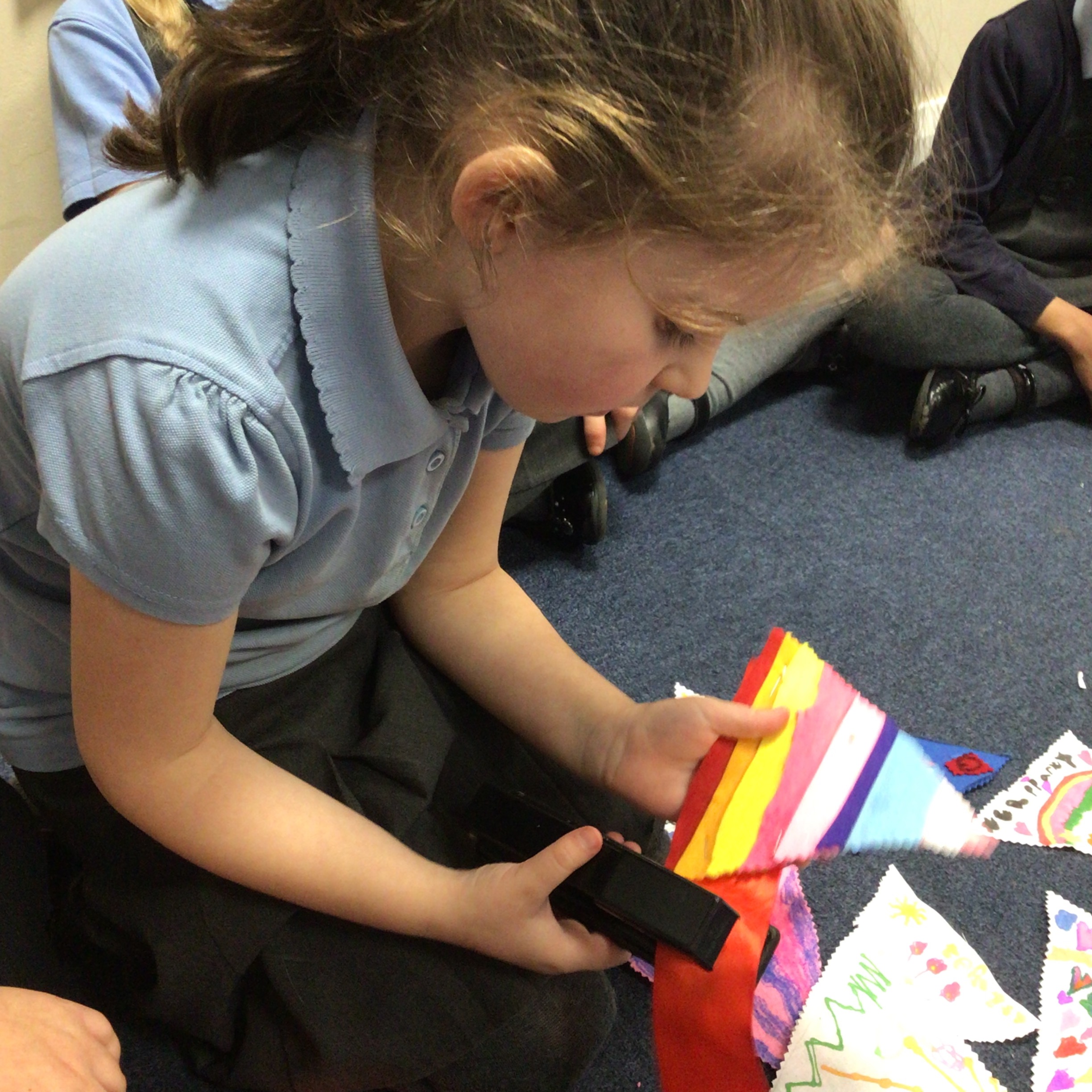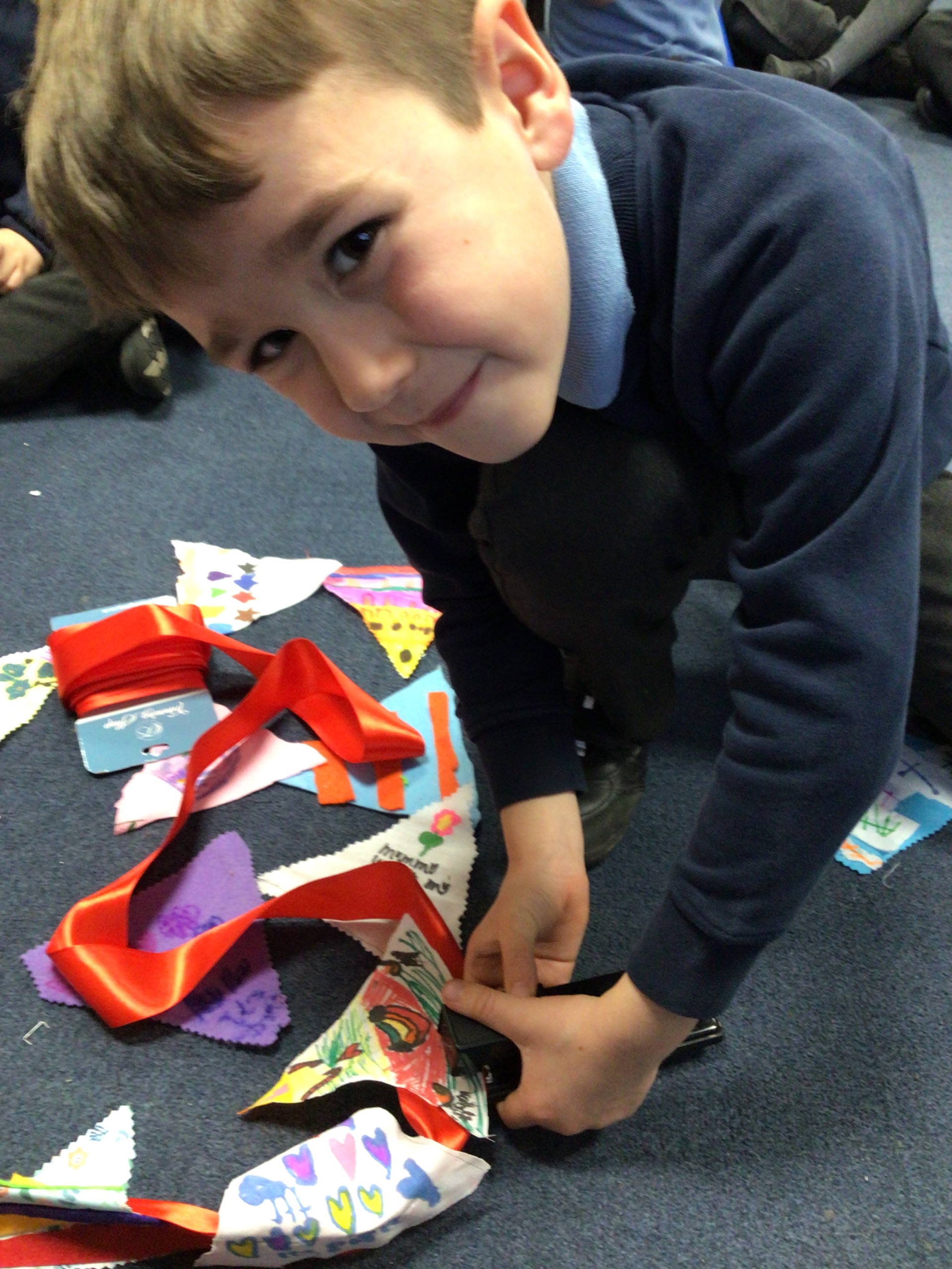 The first task was to create a set of class bunting. We designed our bunting thinking carefully about the colours and materials we would use.