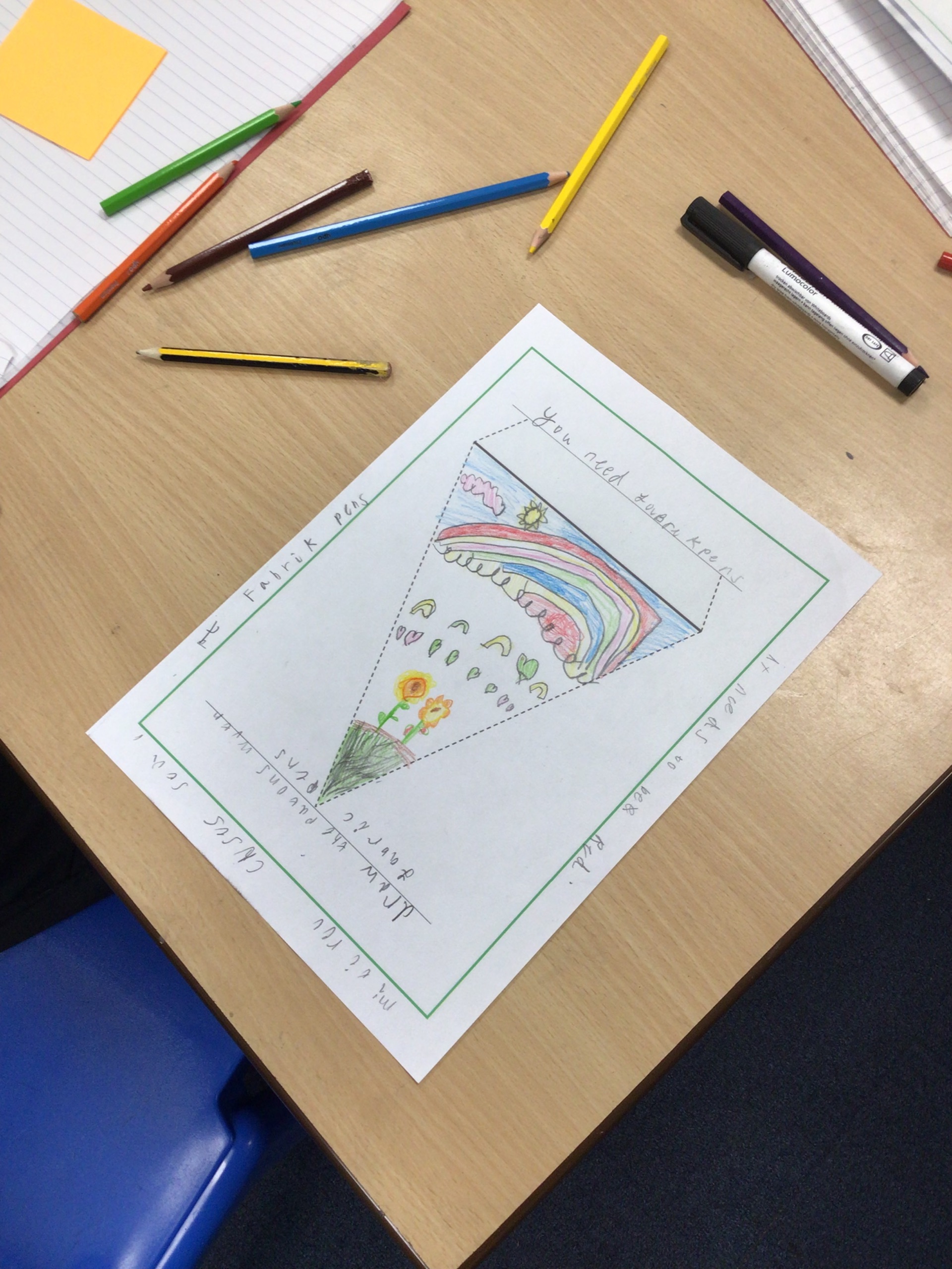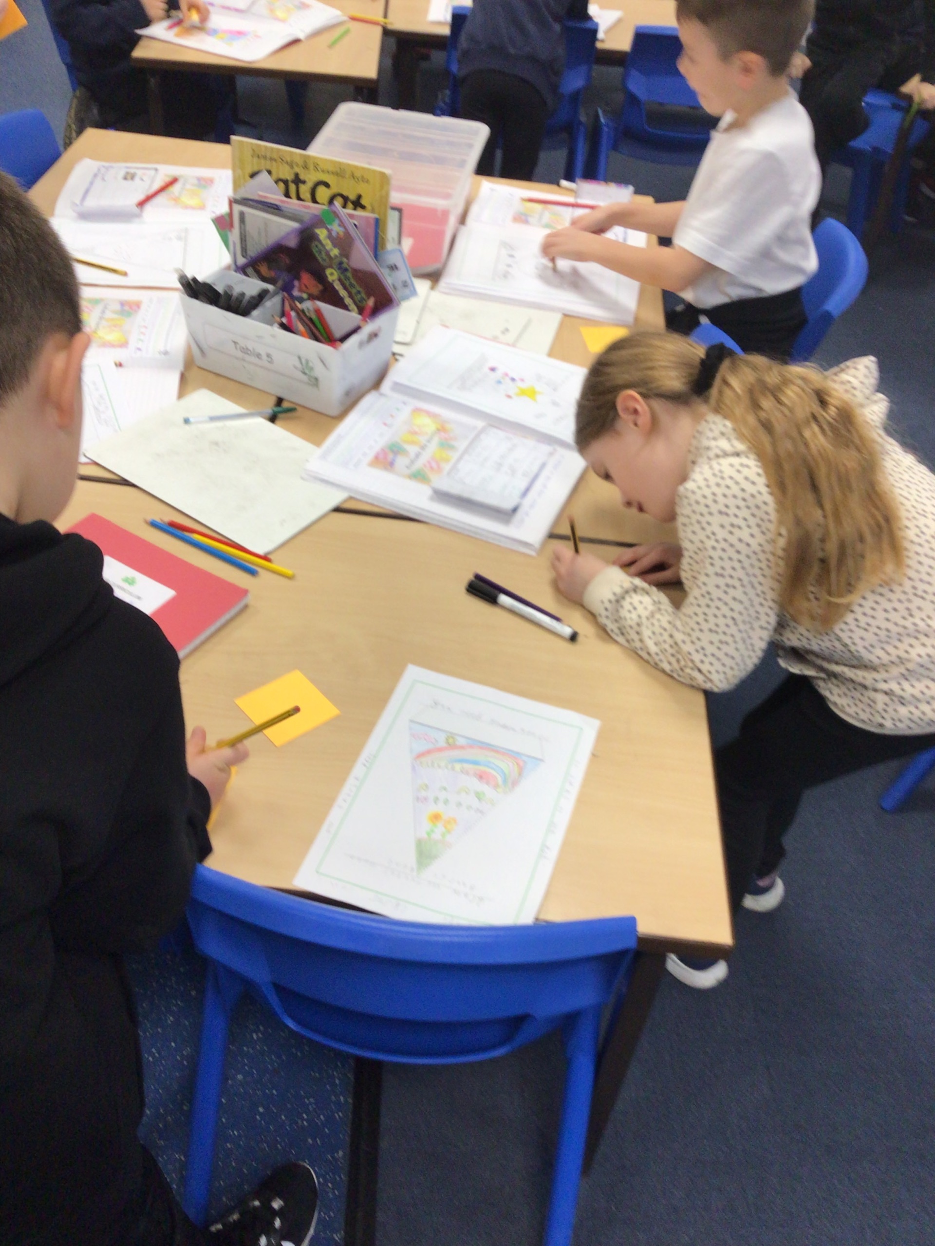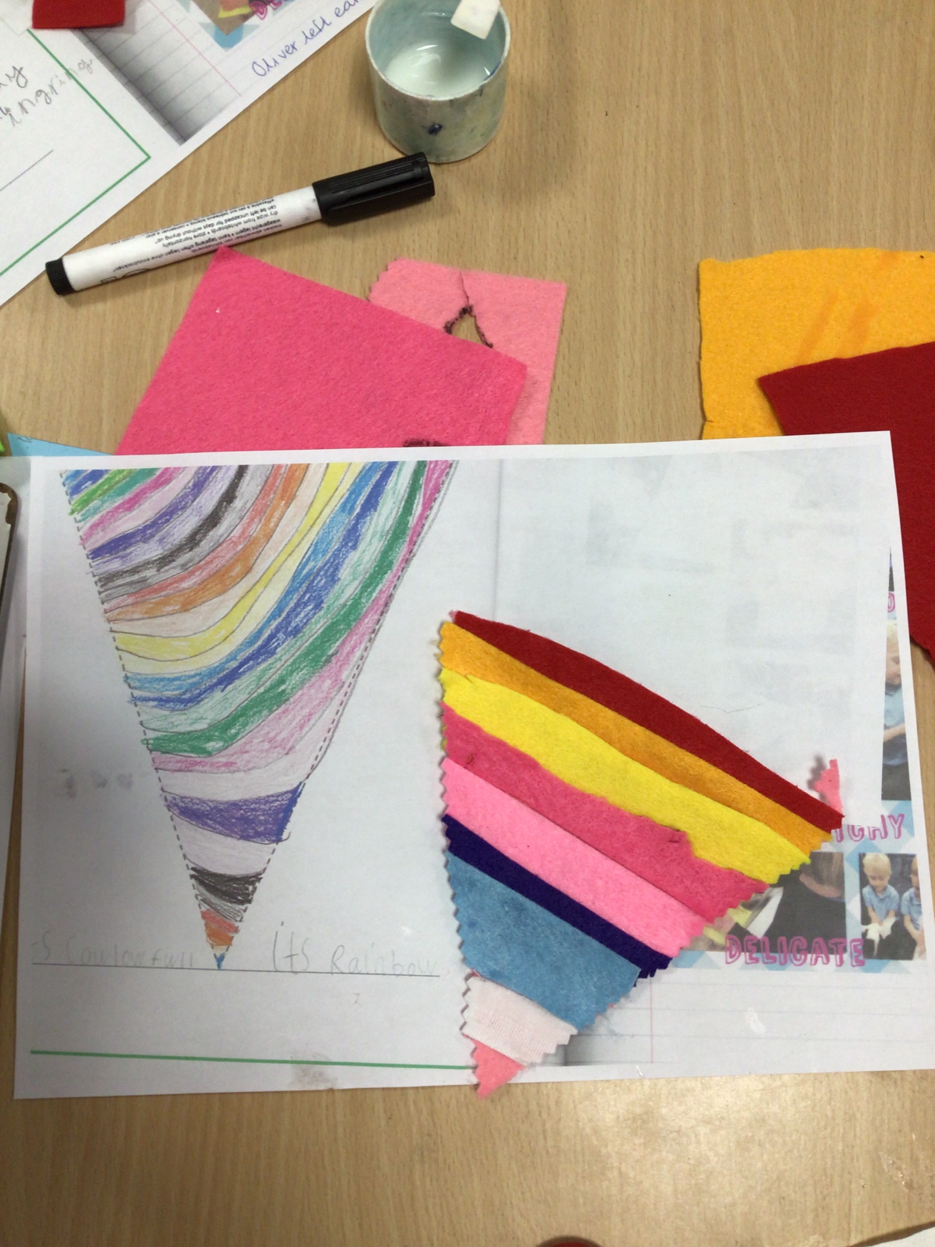 The first task was to create a set of class bunting. We designed our bunting thinking carefully about the colours and materials we would use.