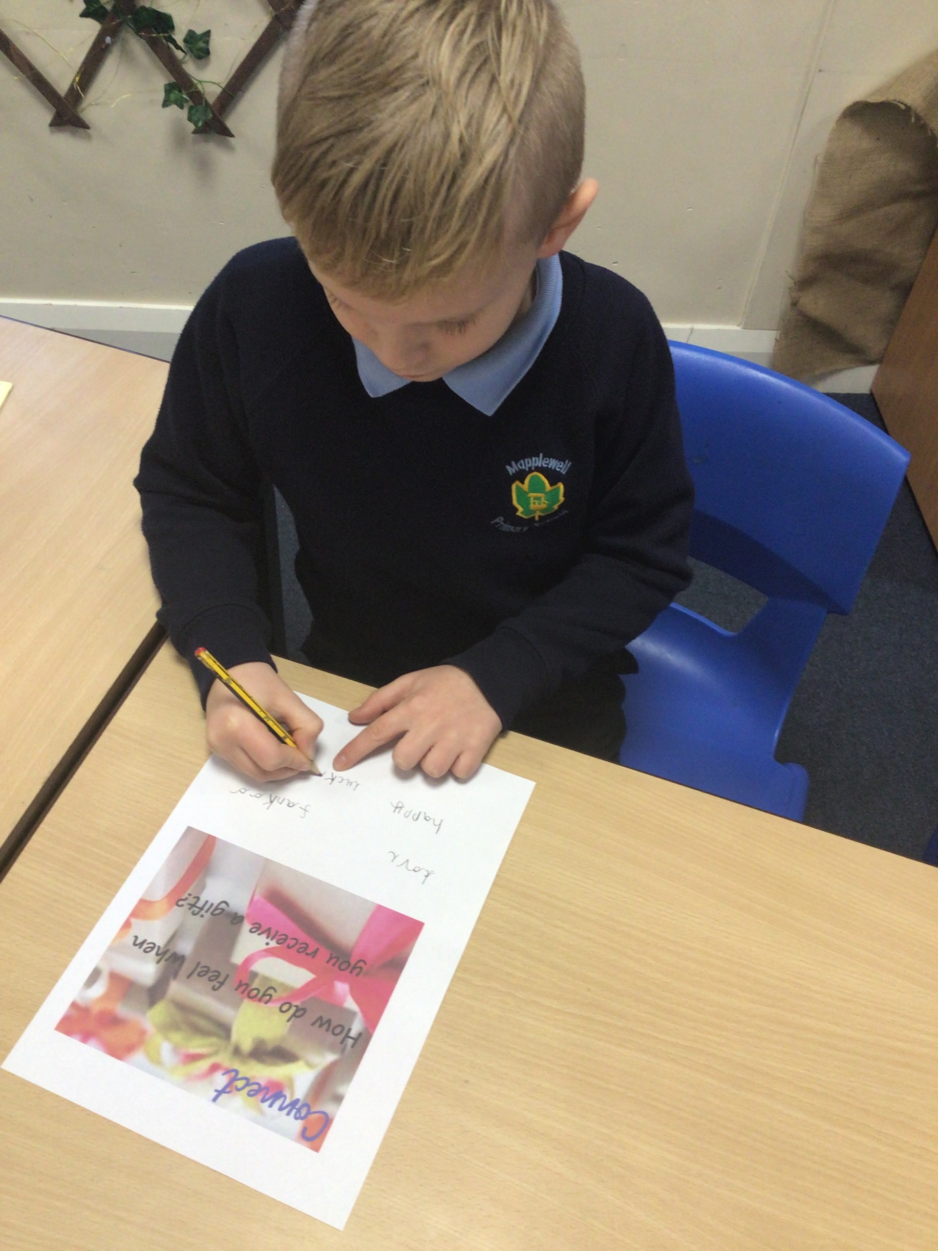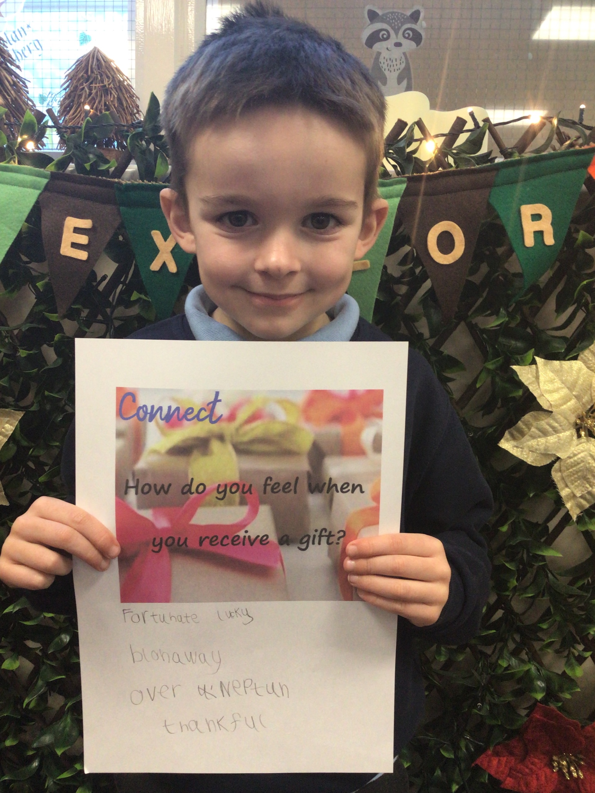 We agreed that it was a good feeling to receive a gift and thought of some great vocabulary to describe the feeling.