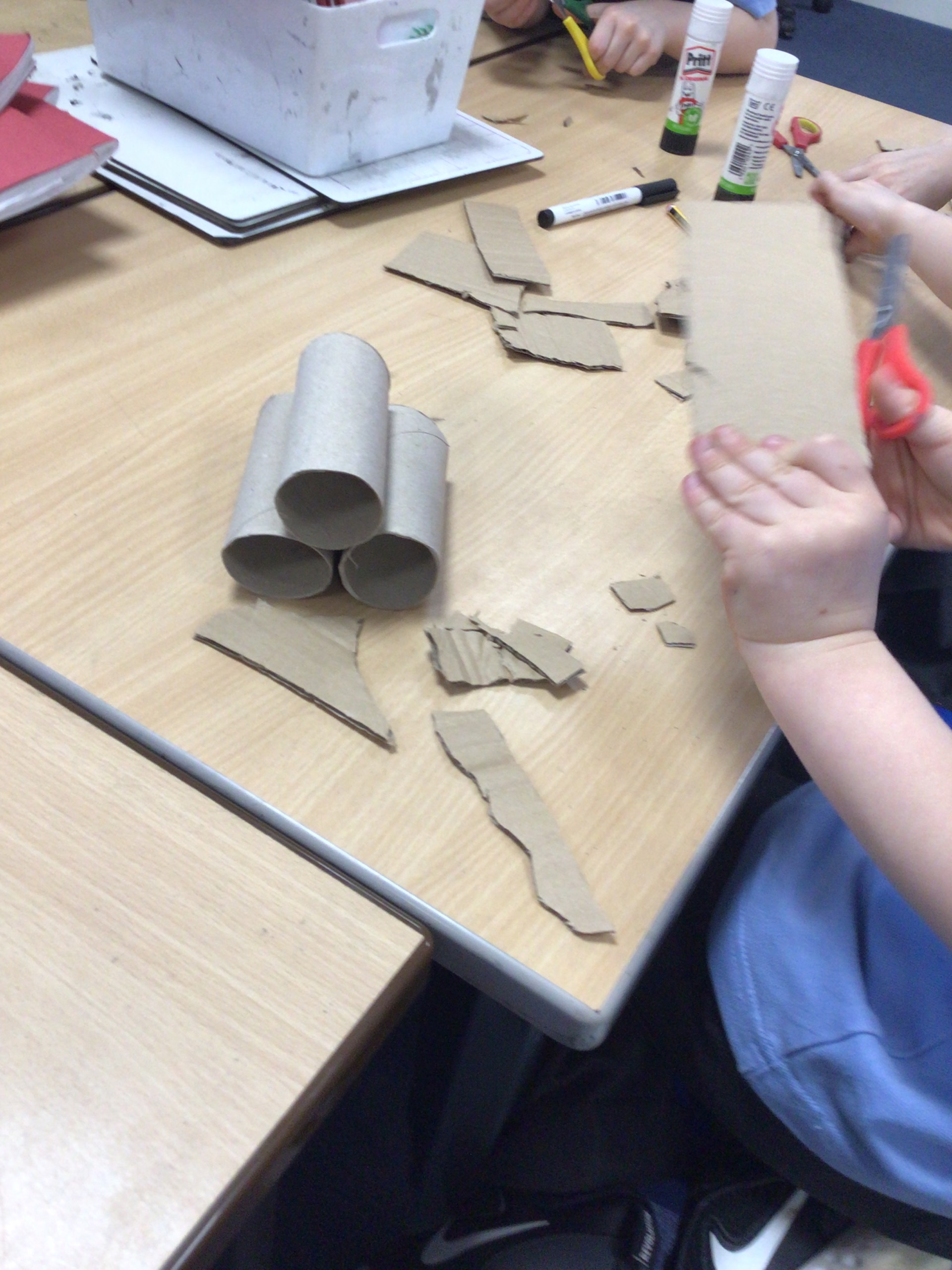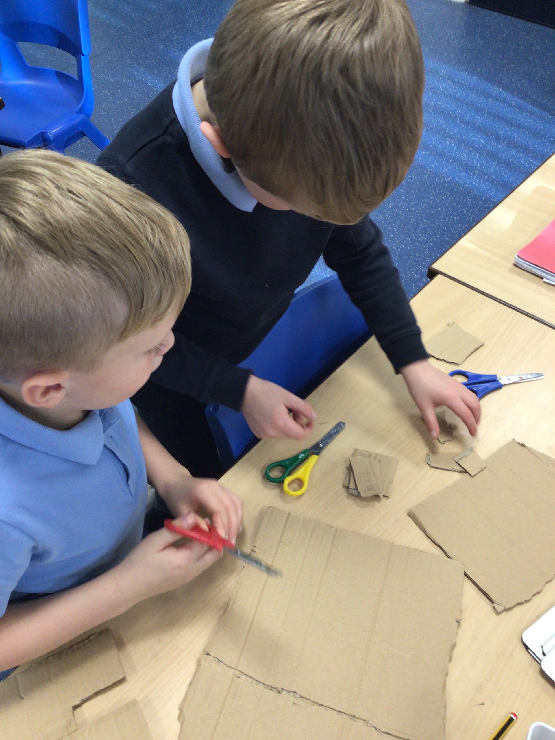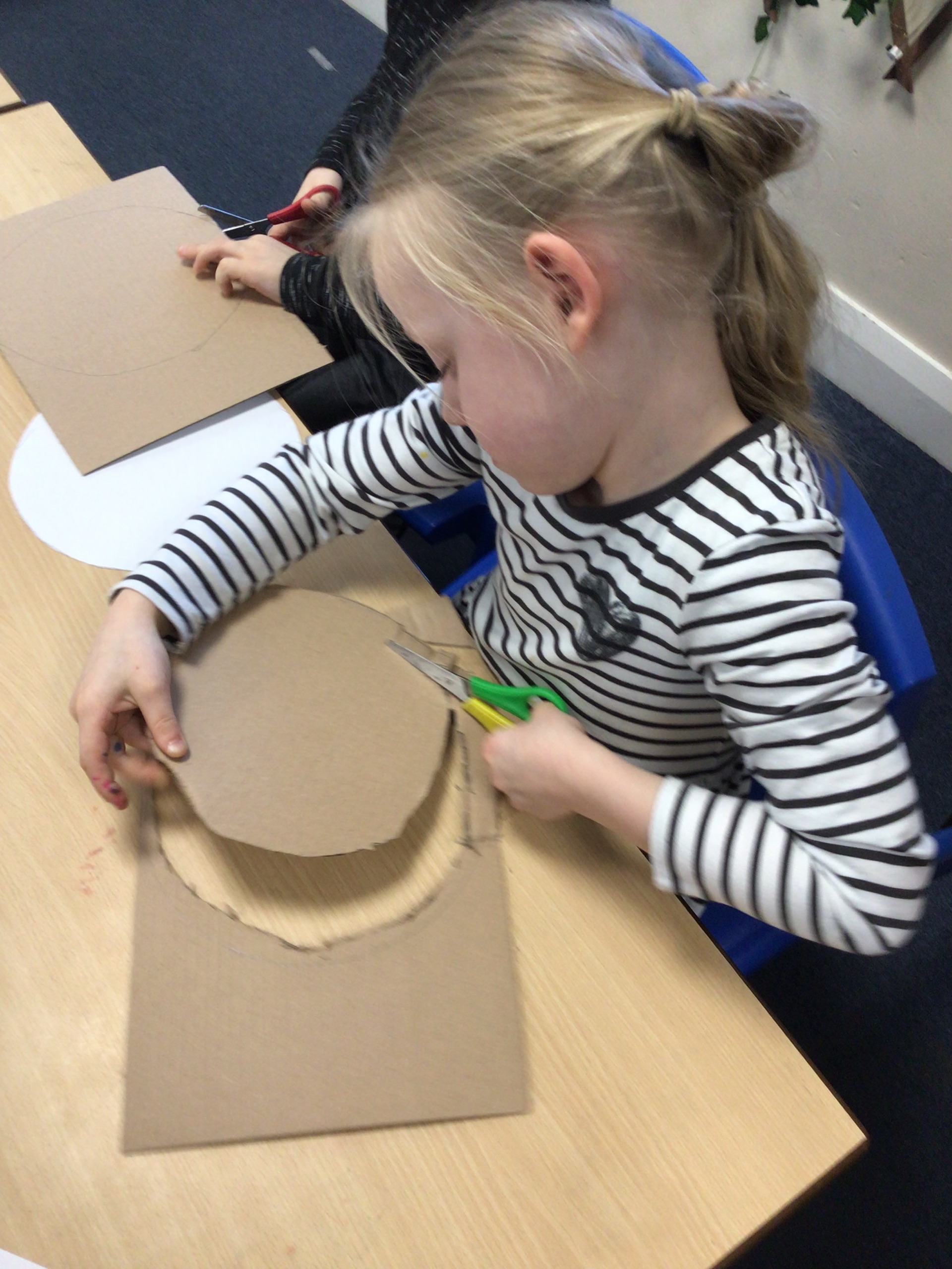 Our cutting skills have certainly developed. We worked as a team to cut out the components for the cake stand.