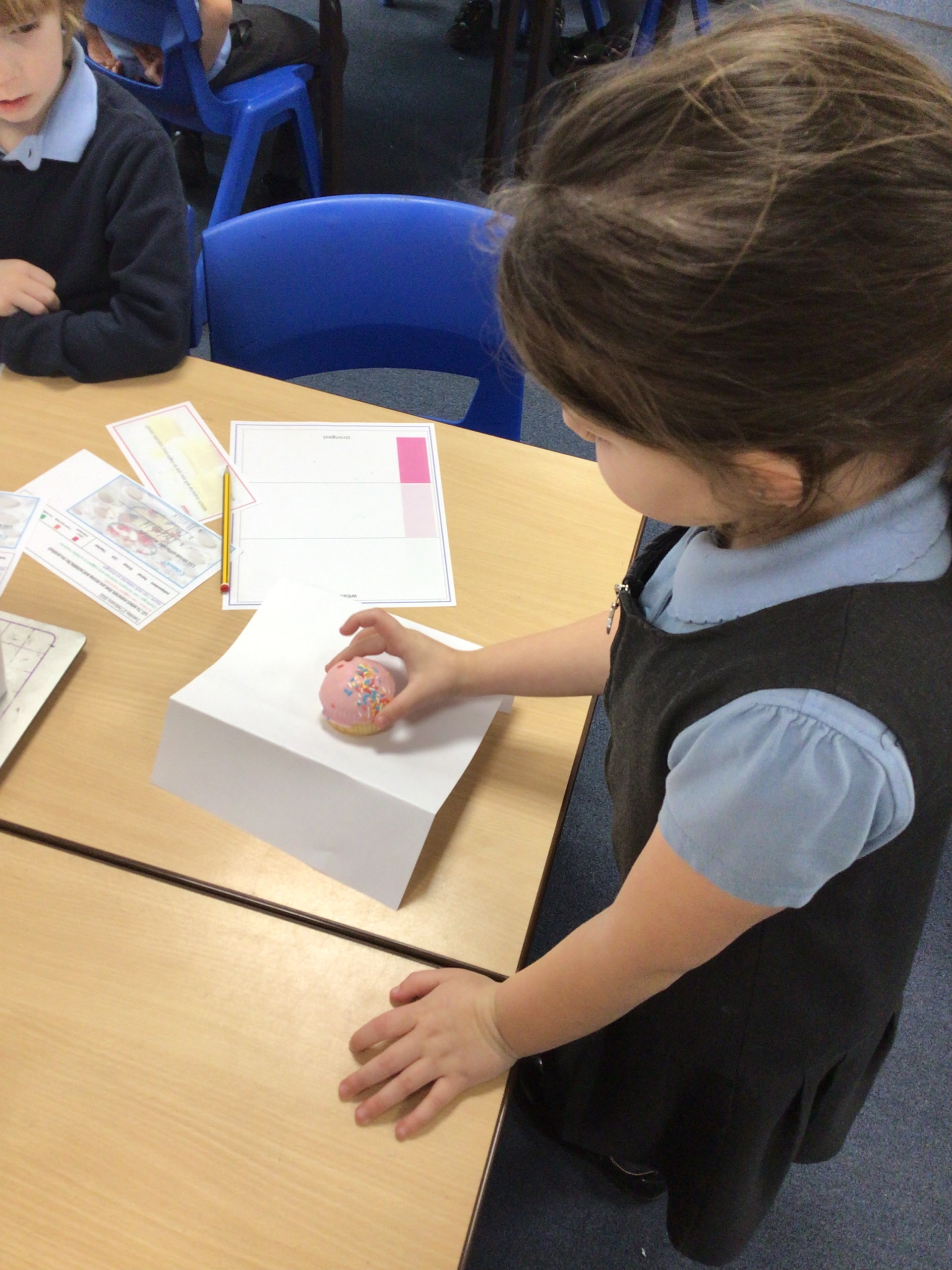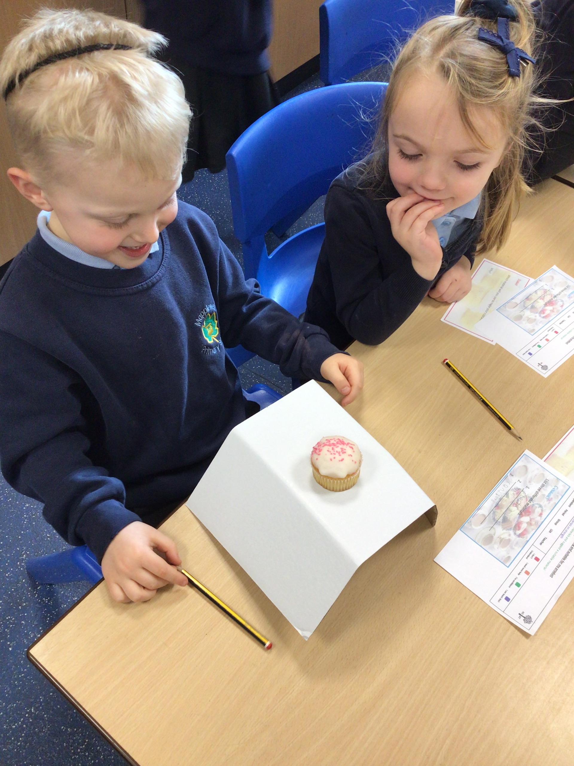 Before designing our cake stands we worked collaboratively to test which material was the strongest to hold a cupcake.