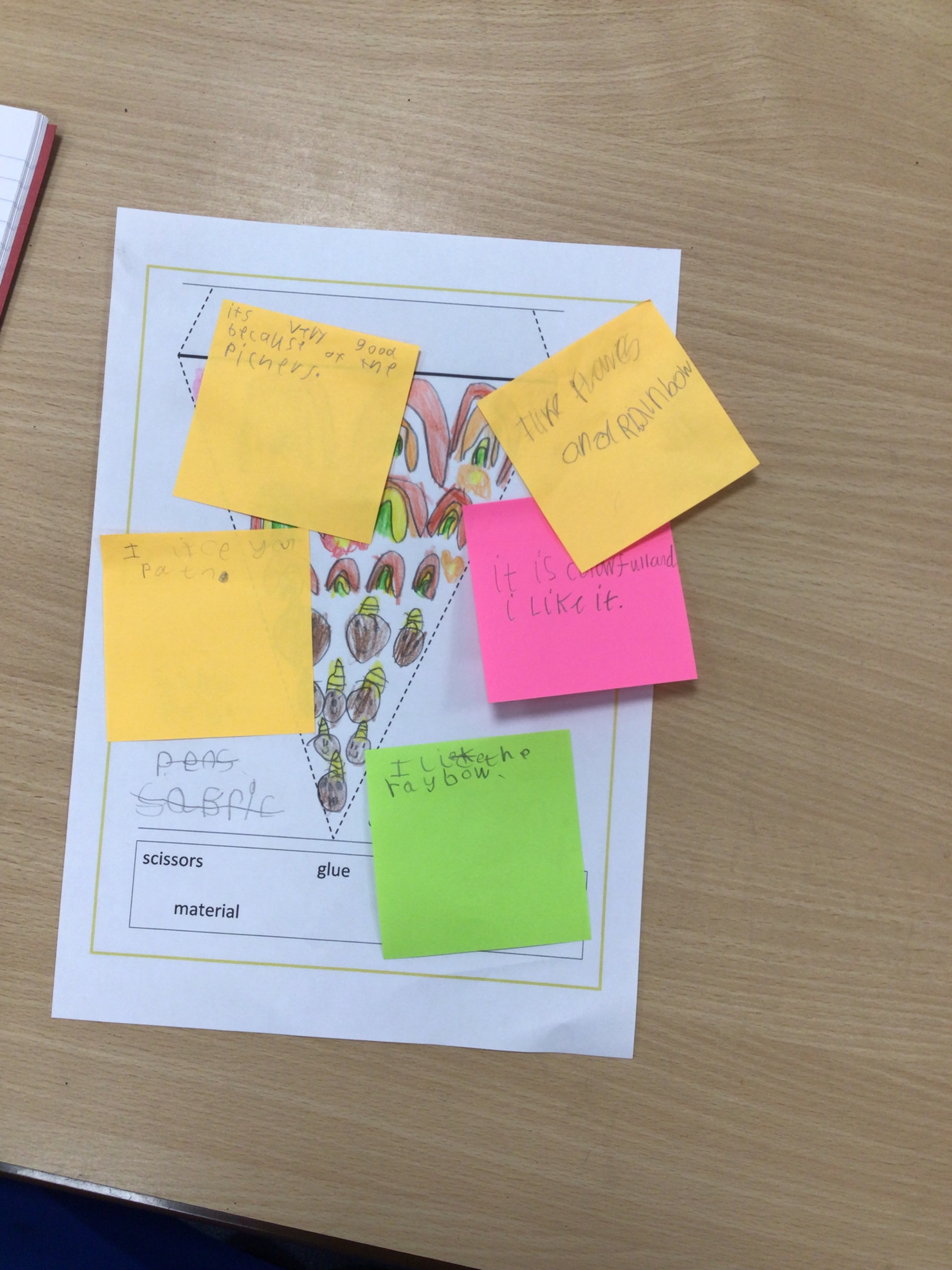 We evaluated our own bunting designs, peered assessed and ‘magpied’ some ideas for our own designs.