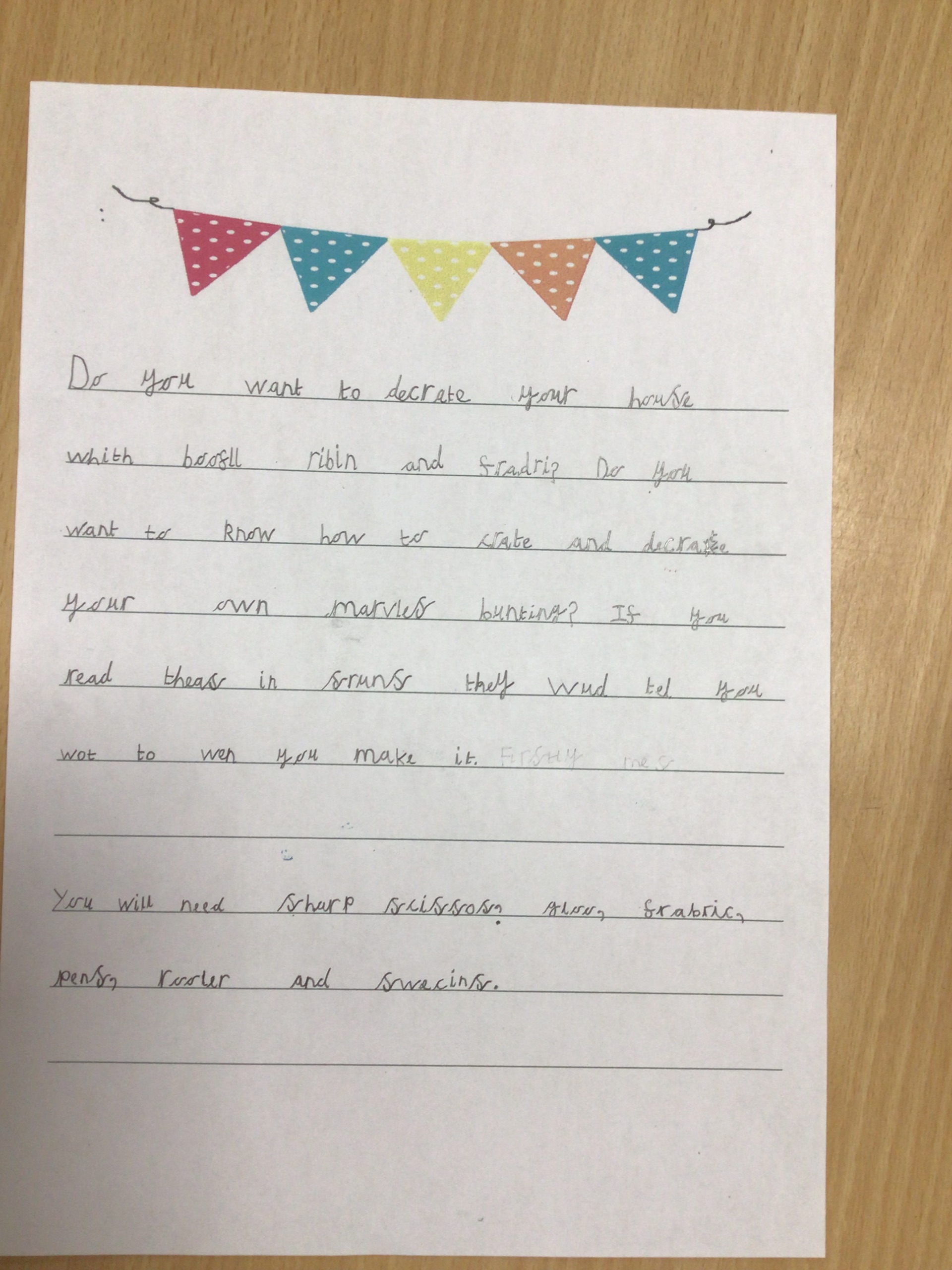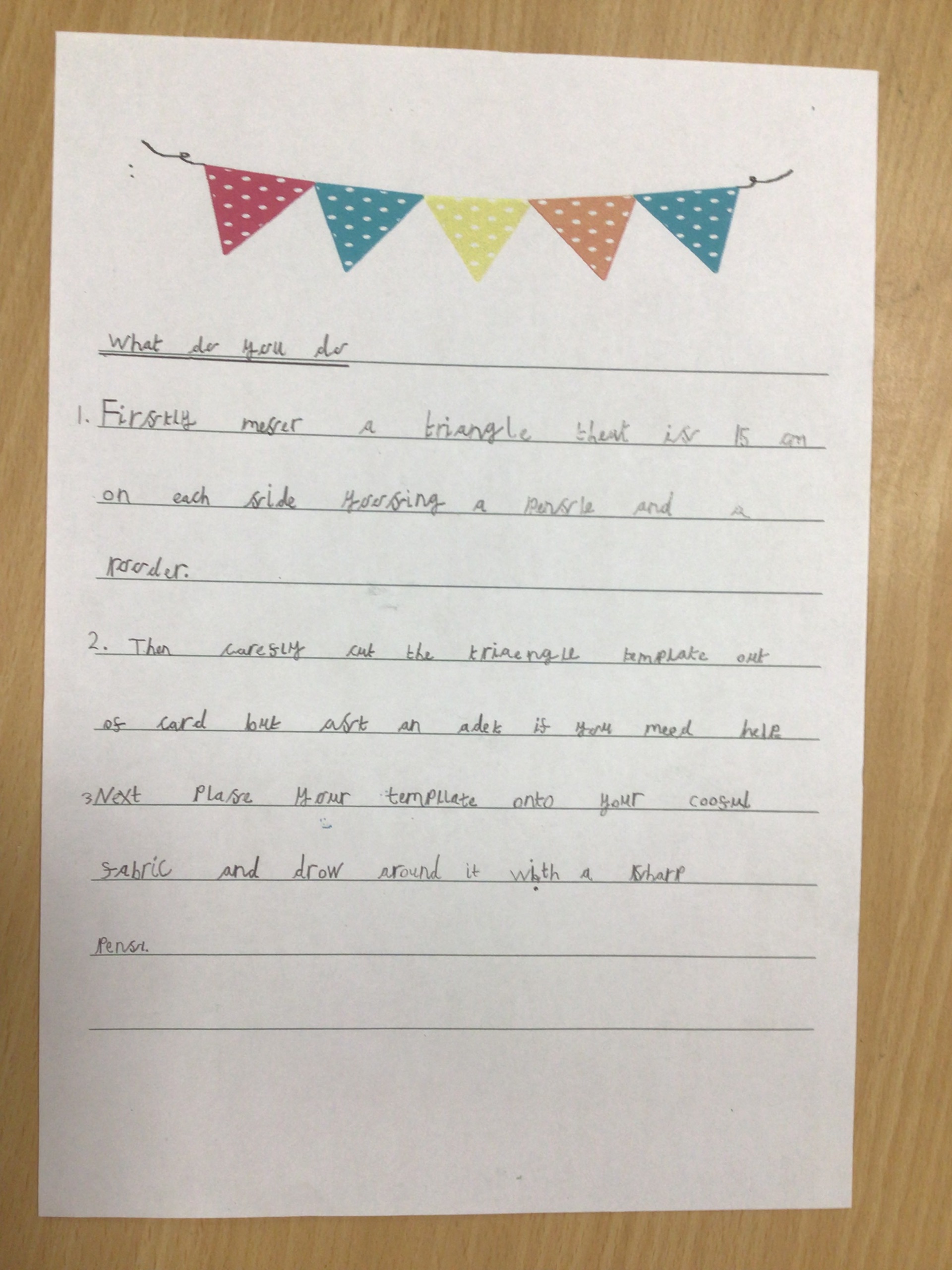 After making our marvellous bunting, a local gift shop asked Class 4 to write a set of instructions on how to make the bunting.