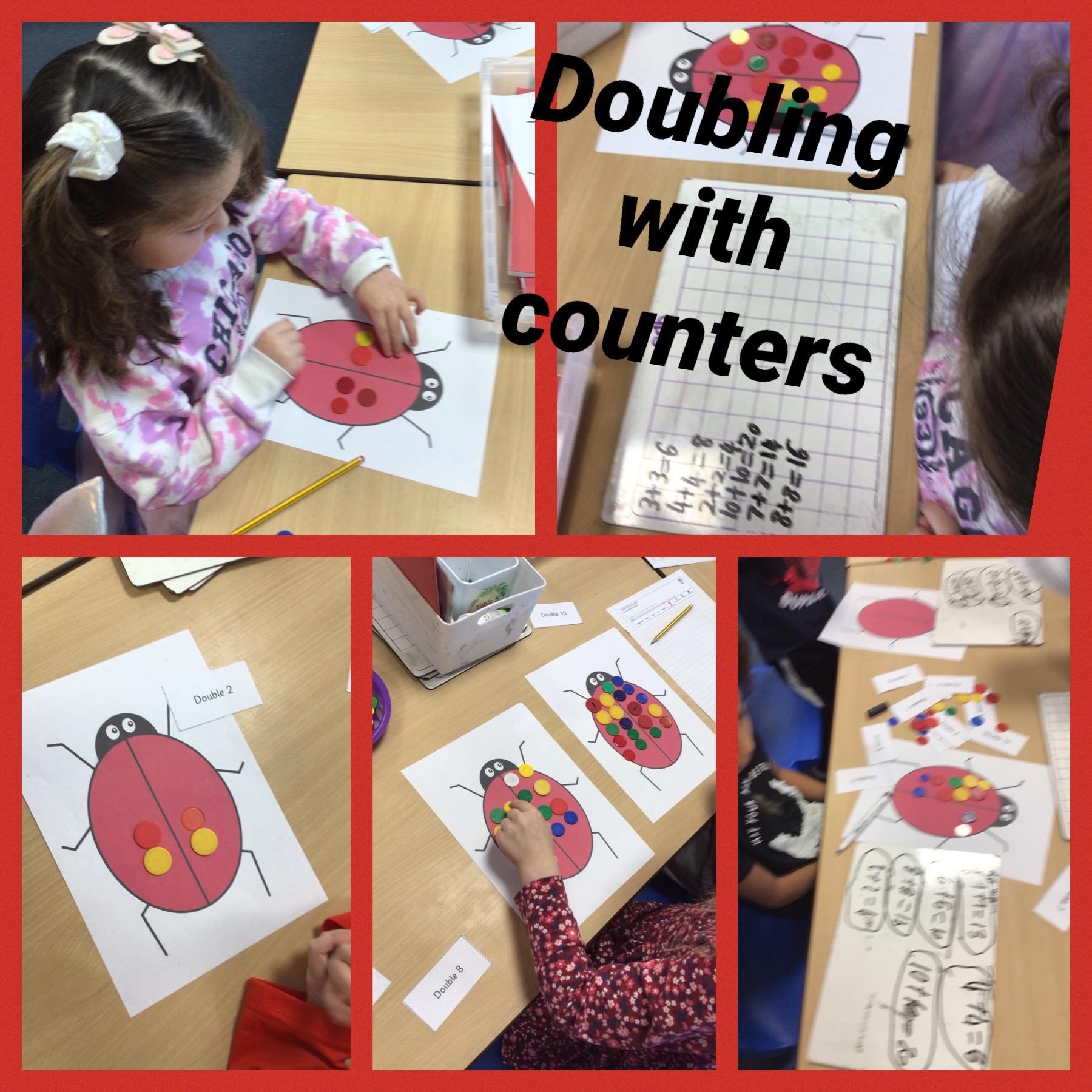 We then looked at doubling. We know that to double a number we add it to itself. We also know that doubling is the same as multiplying by two. We also looked at halving numbers and shapes.