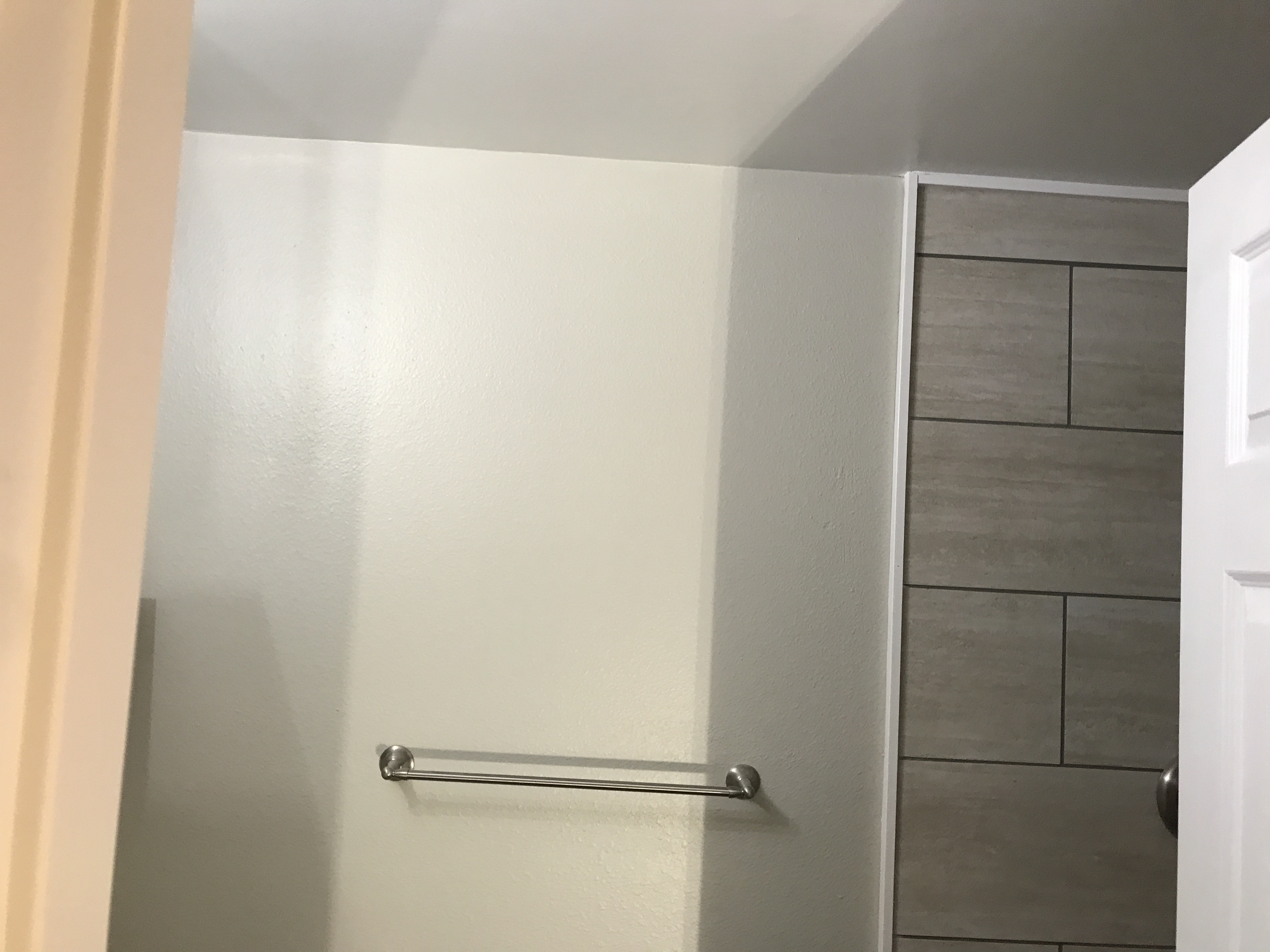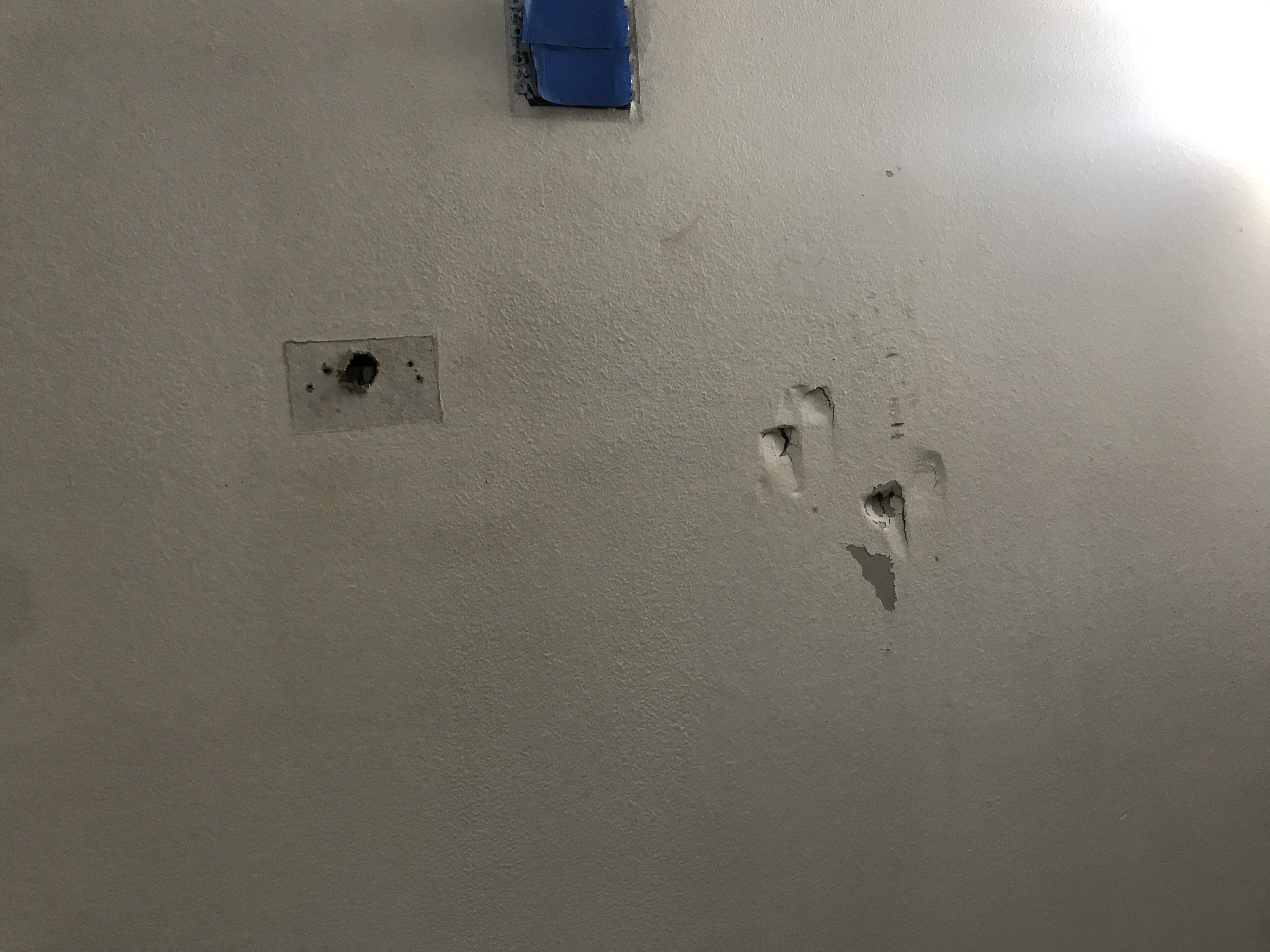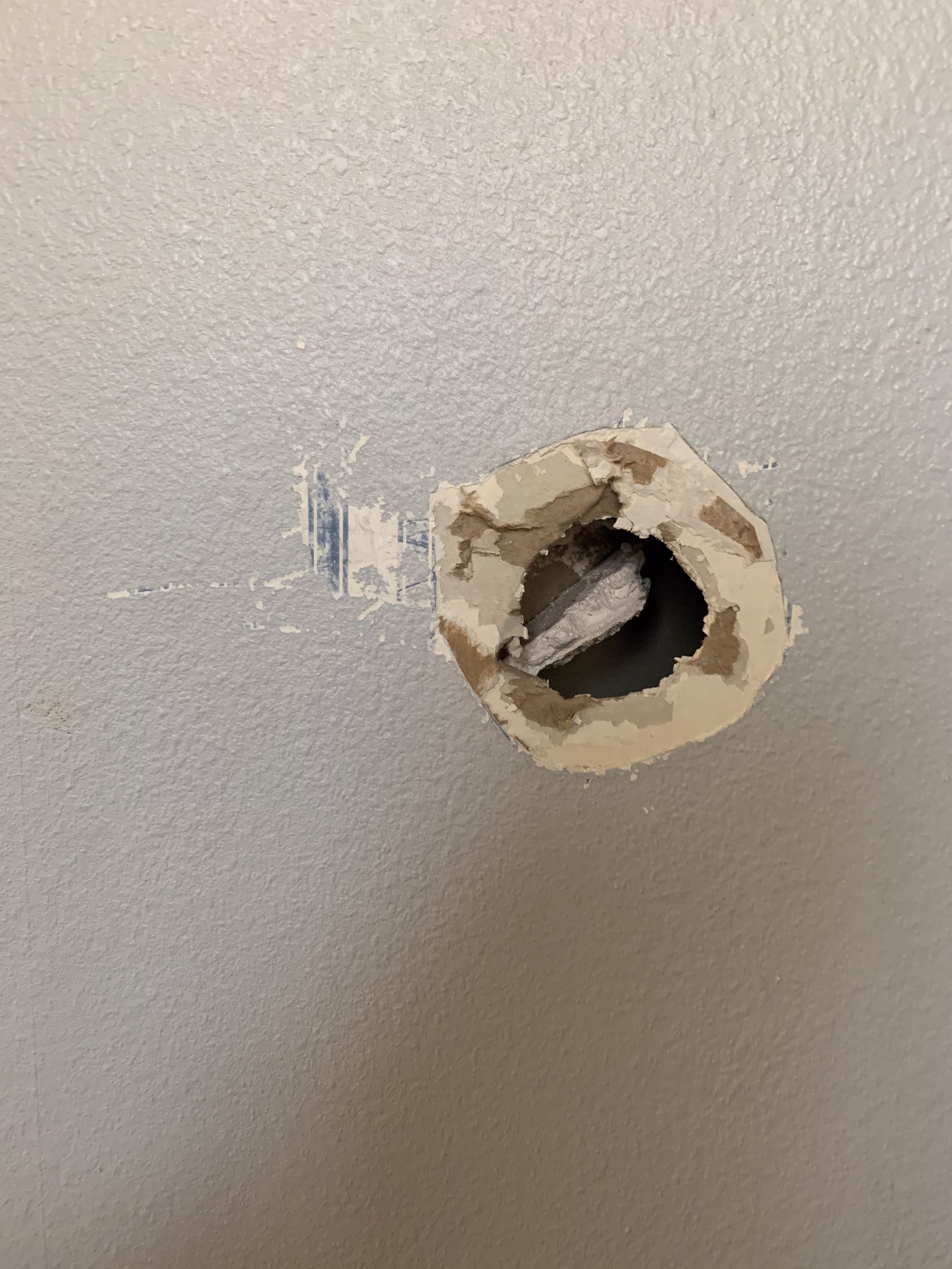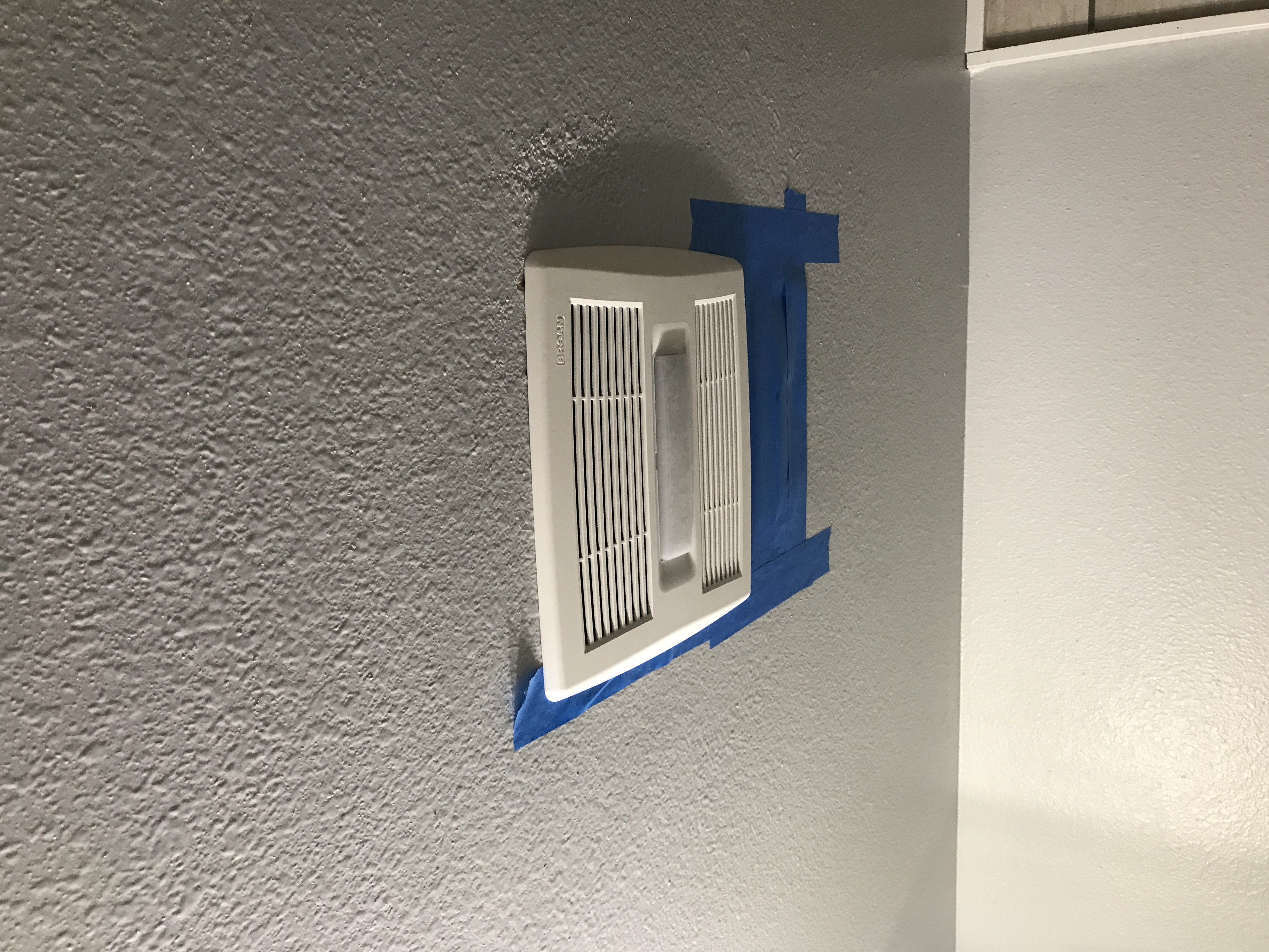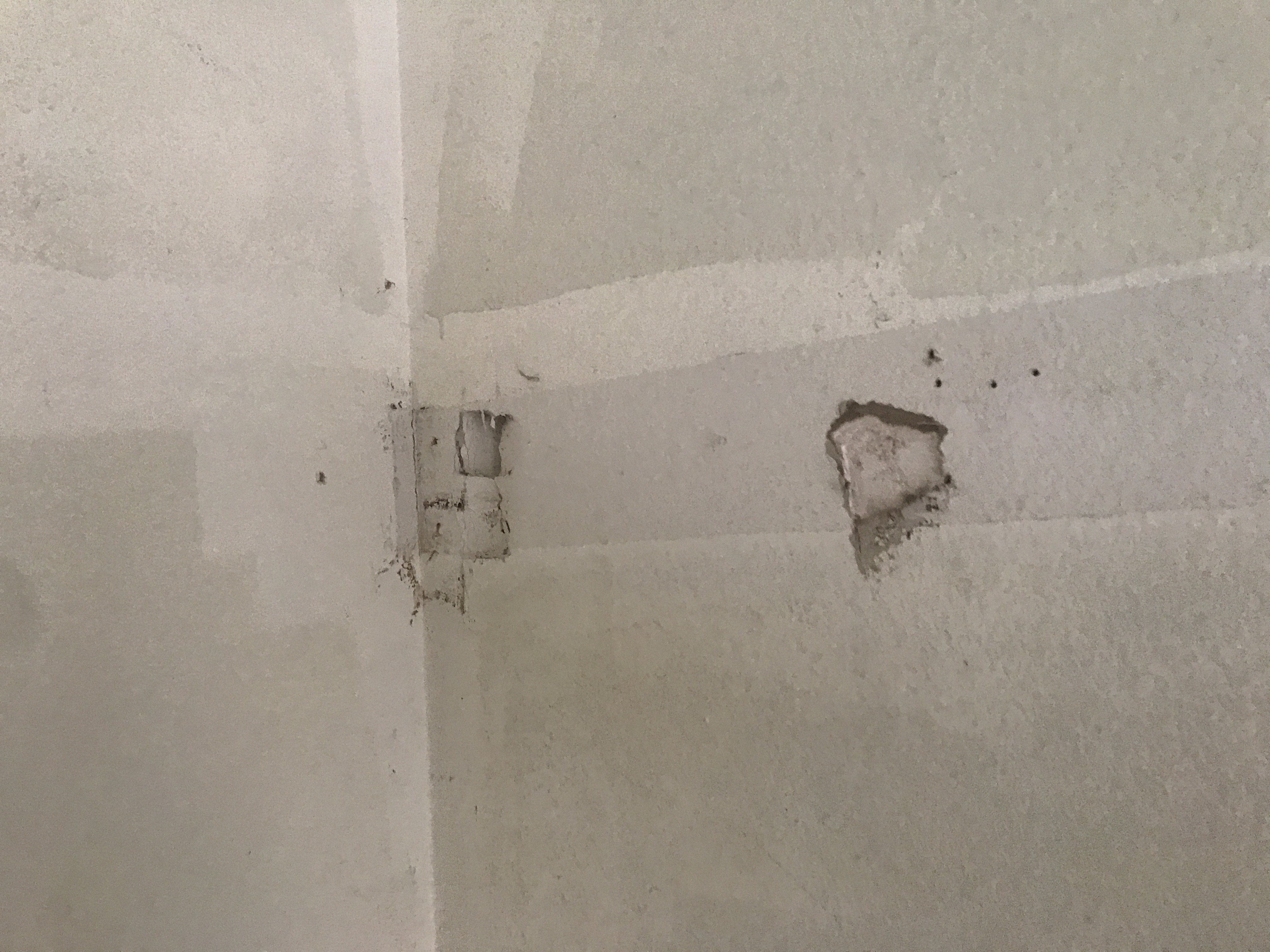 Master bathroom patch - wall is painted wallpaper left on wall - doing our best to match texture on the wall