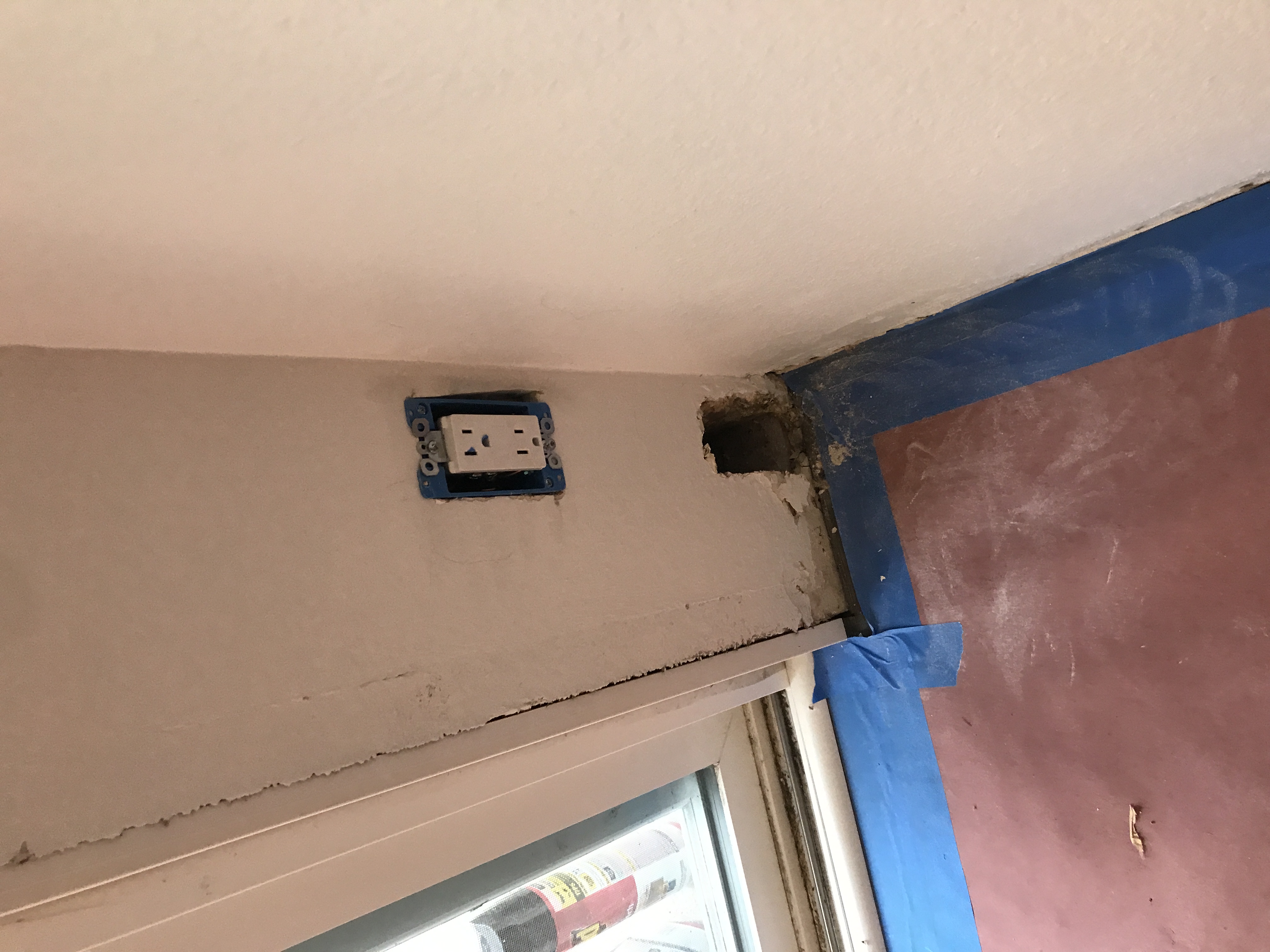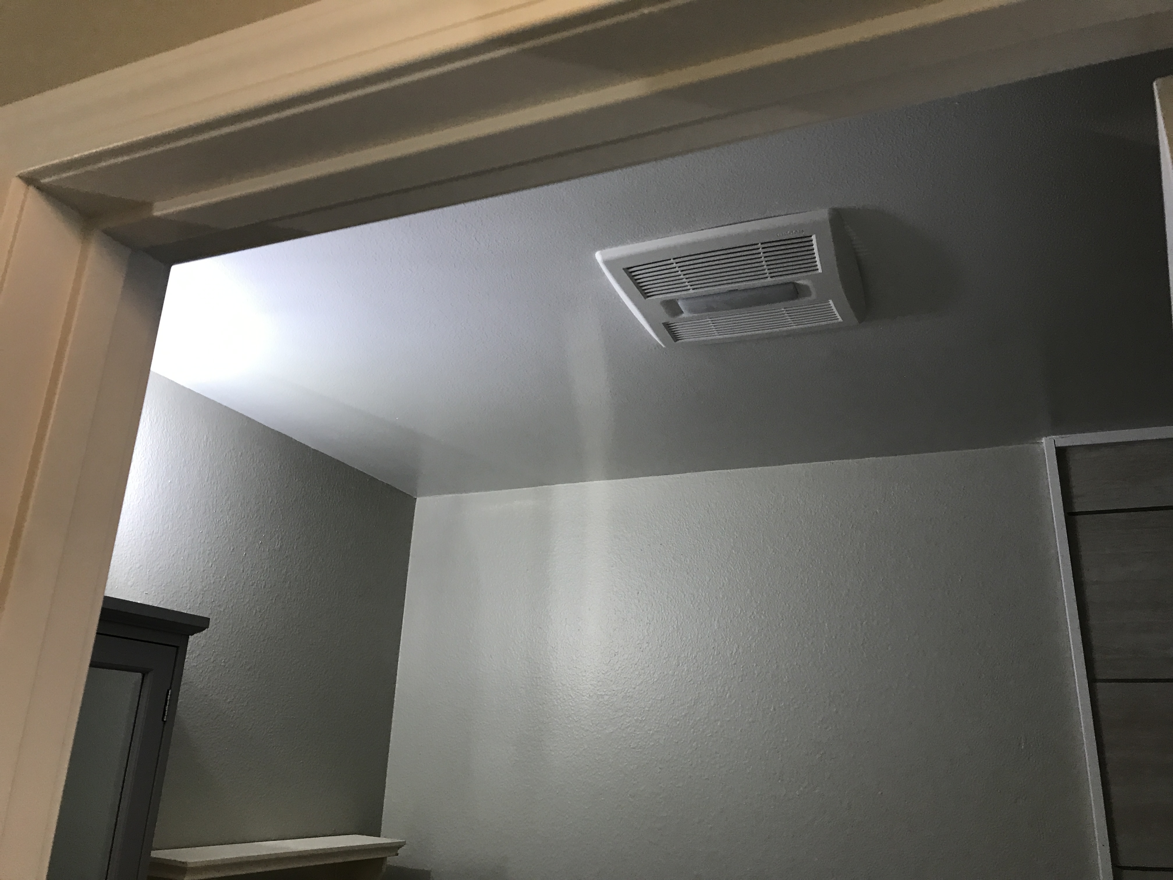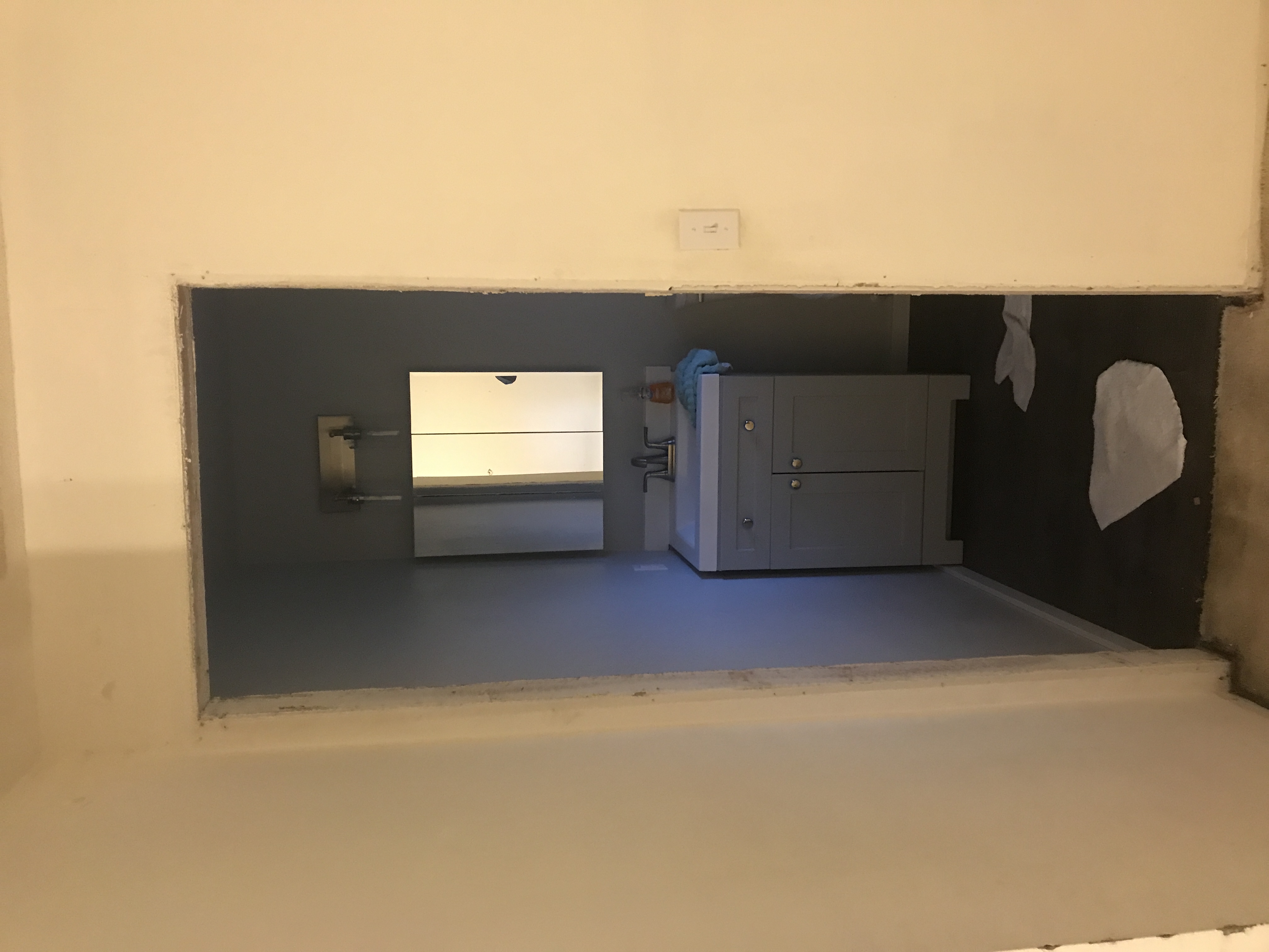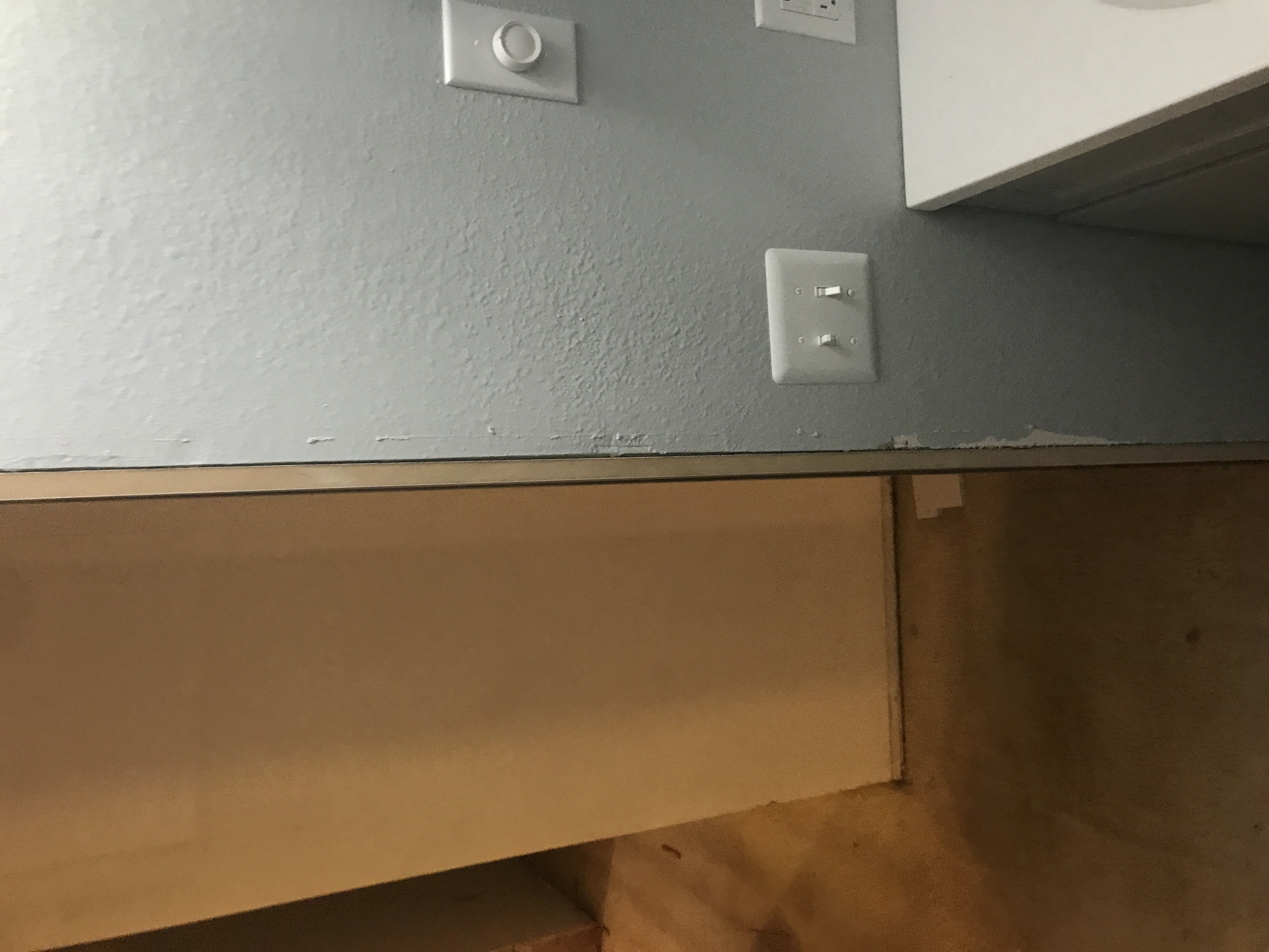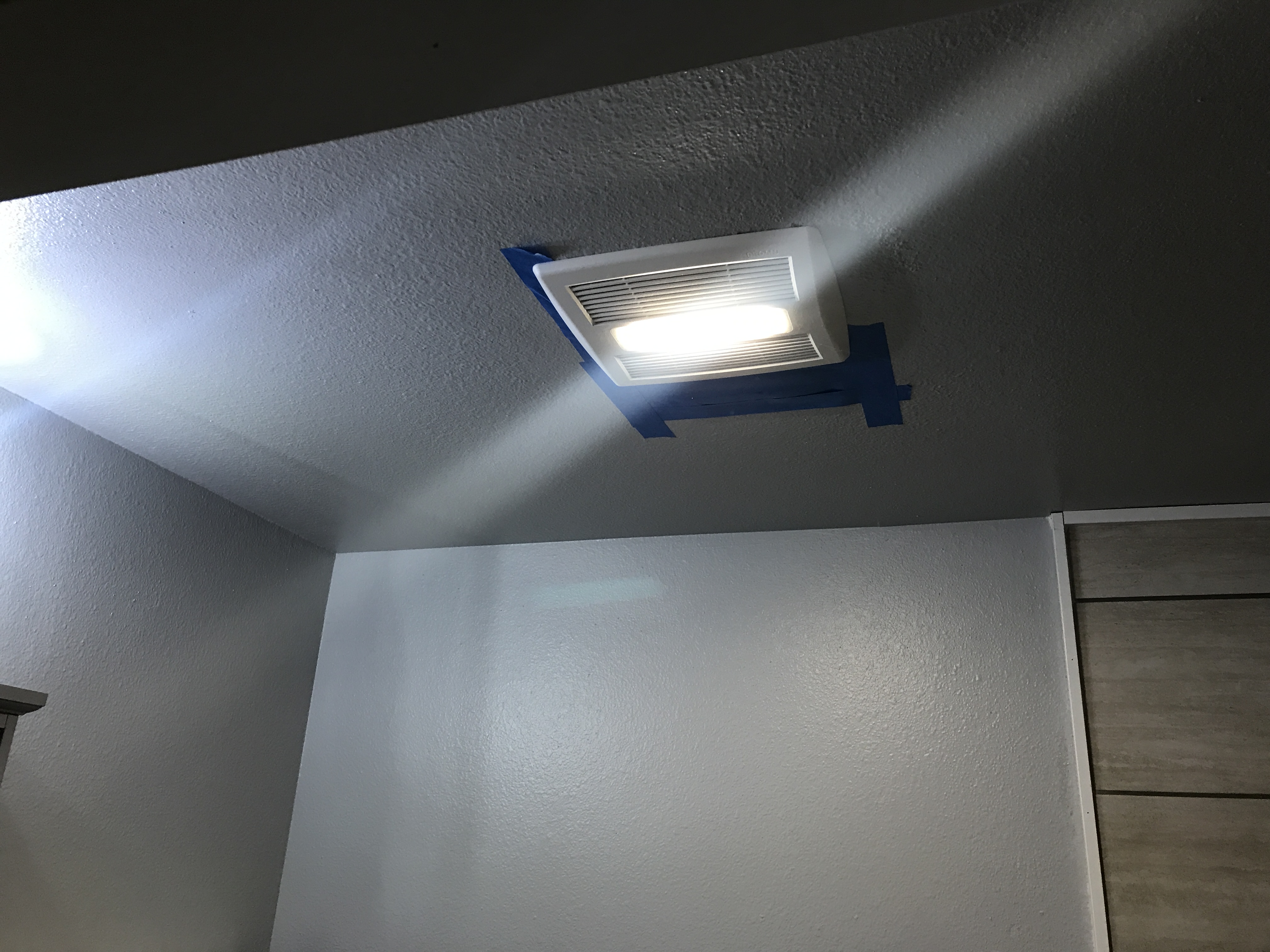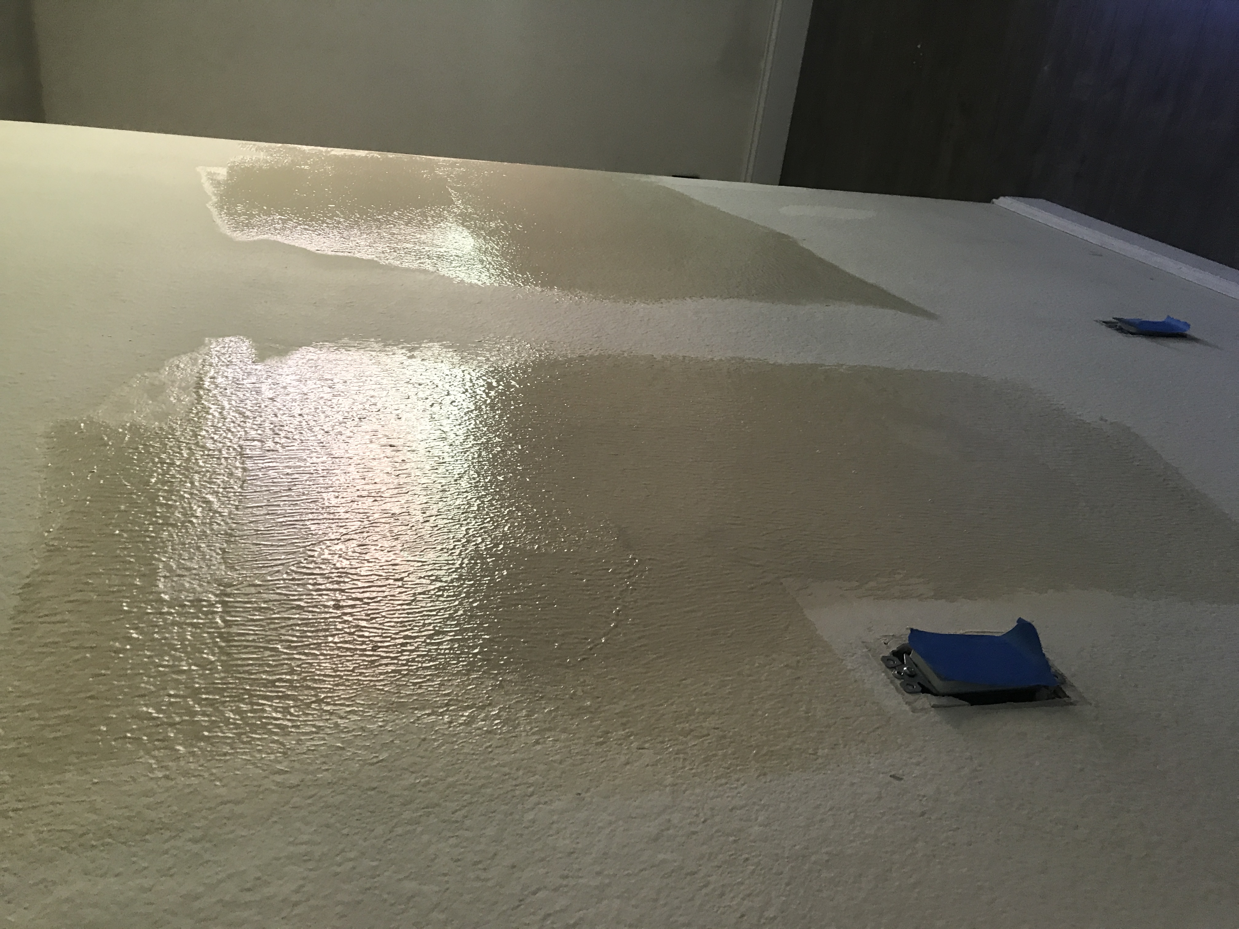 Master bathroom patch - wall is painted wallpaper left on wall - doing our best to match texture on the wall