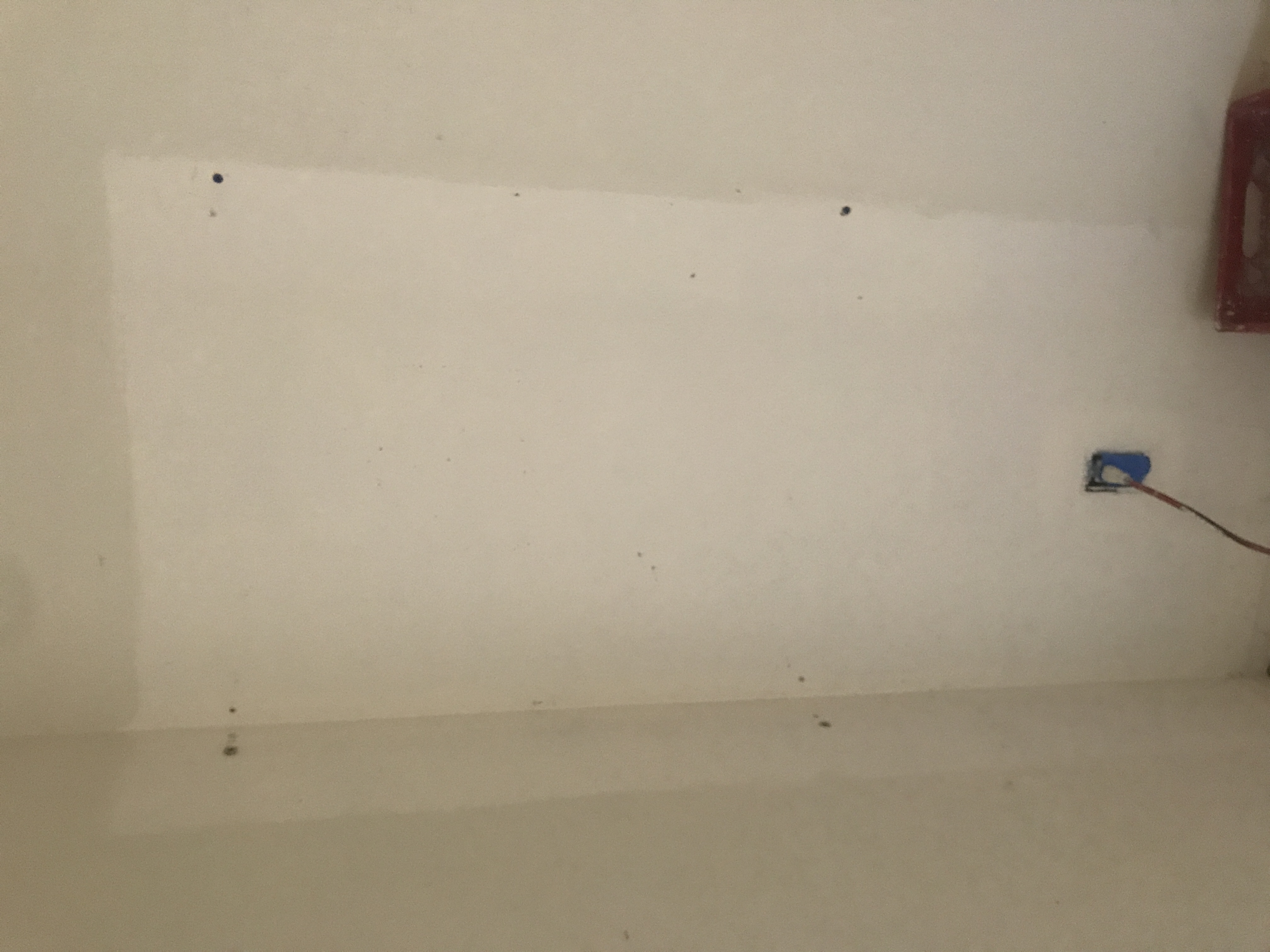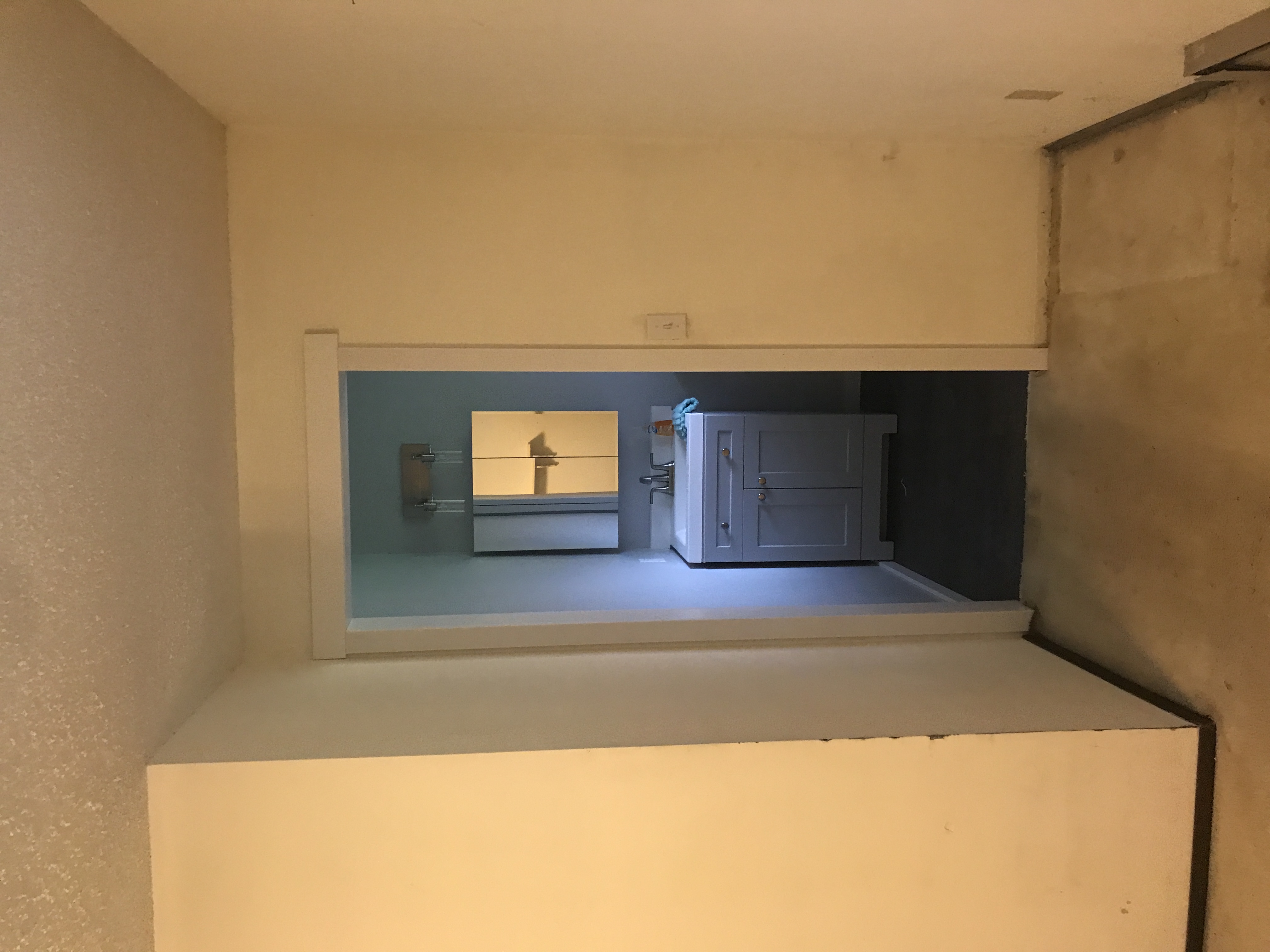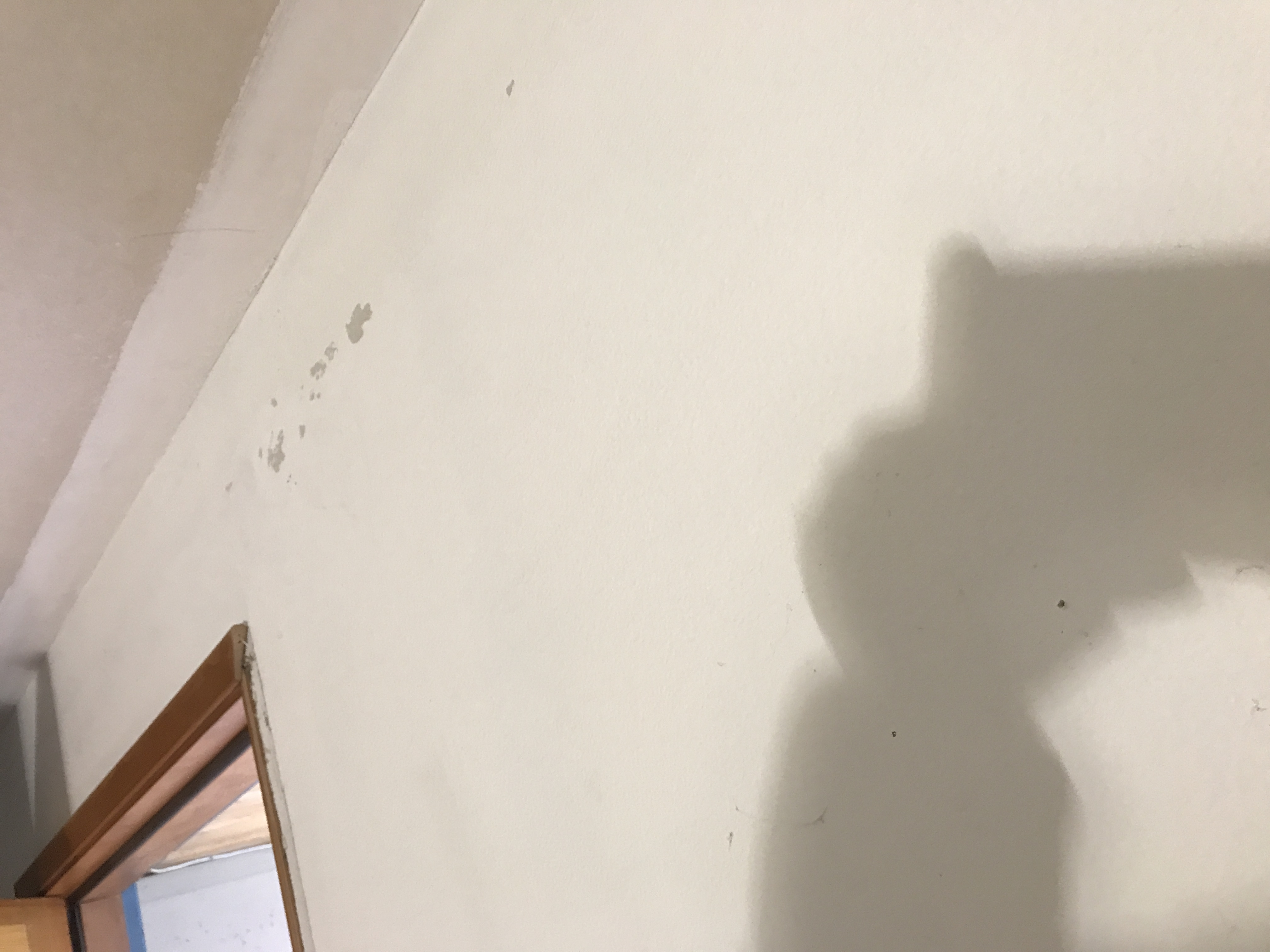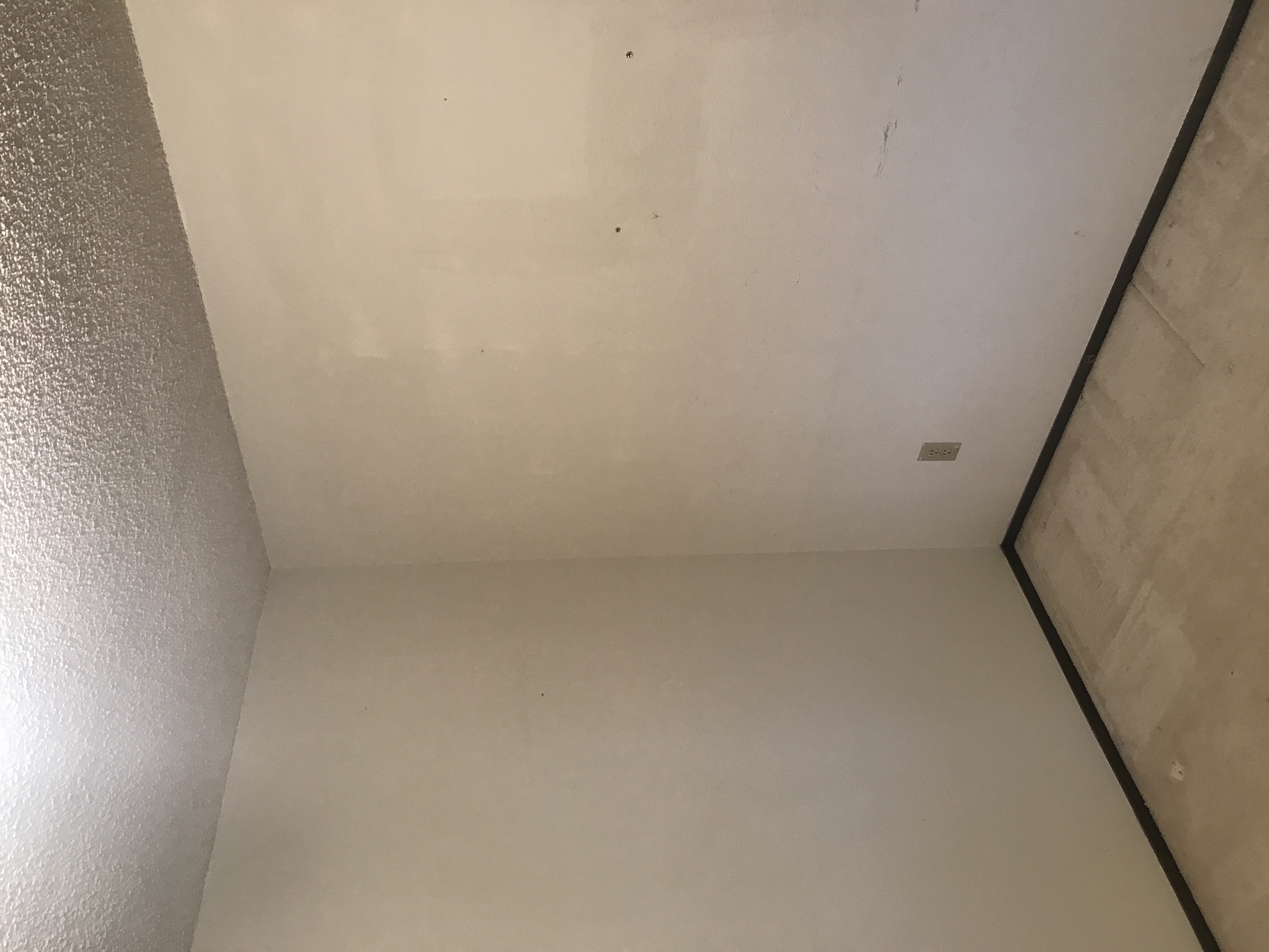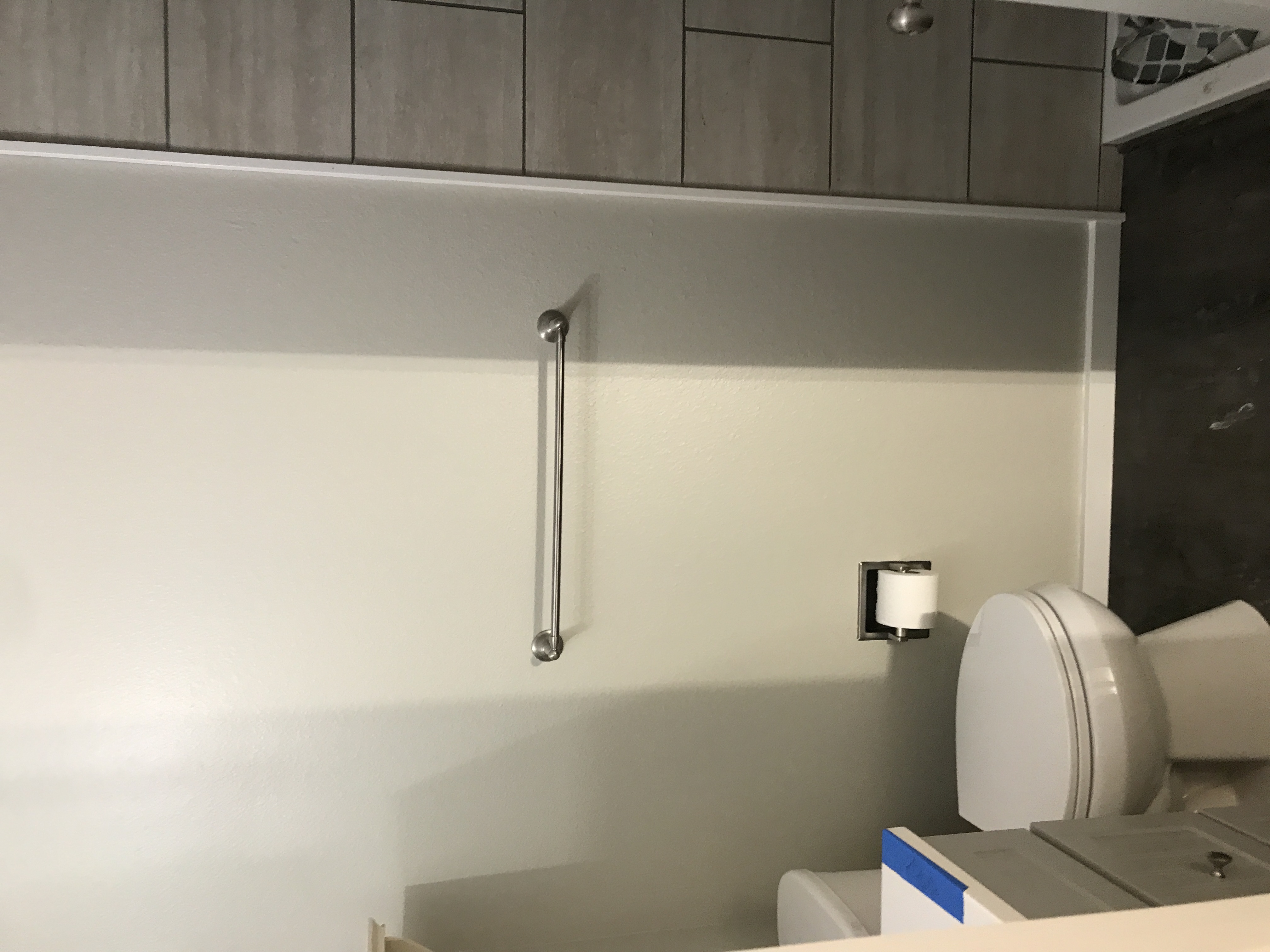 Master bathroom patch - wall is painted wallpaper left on wall - doing our best to match texture on the wall