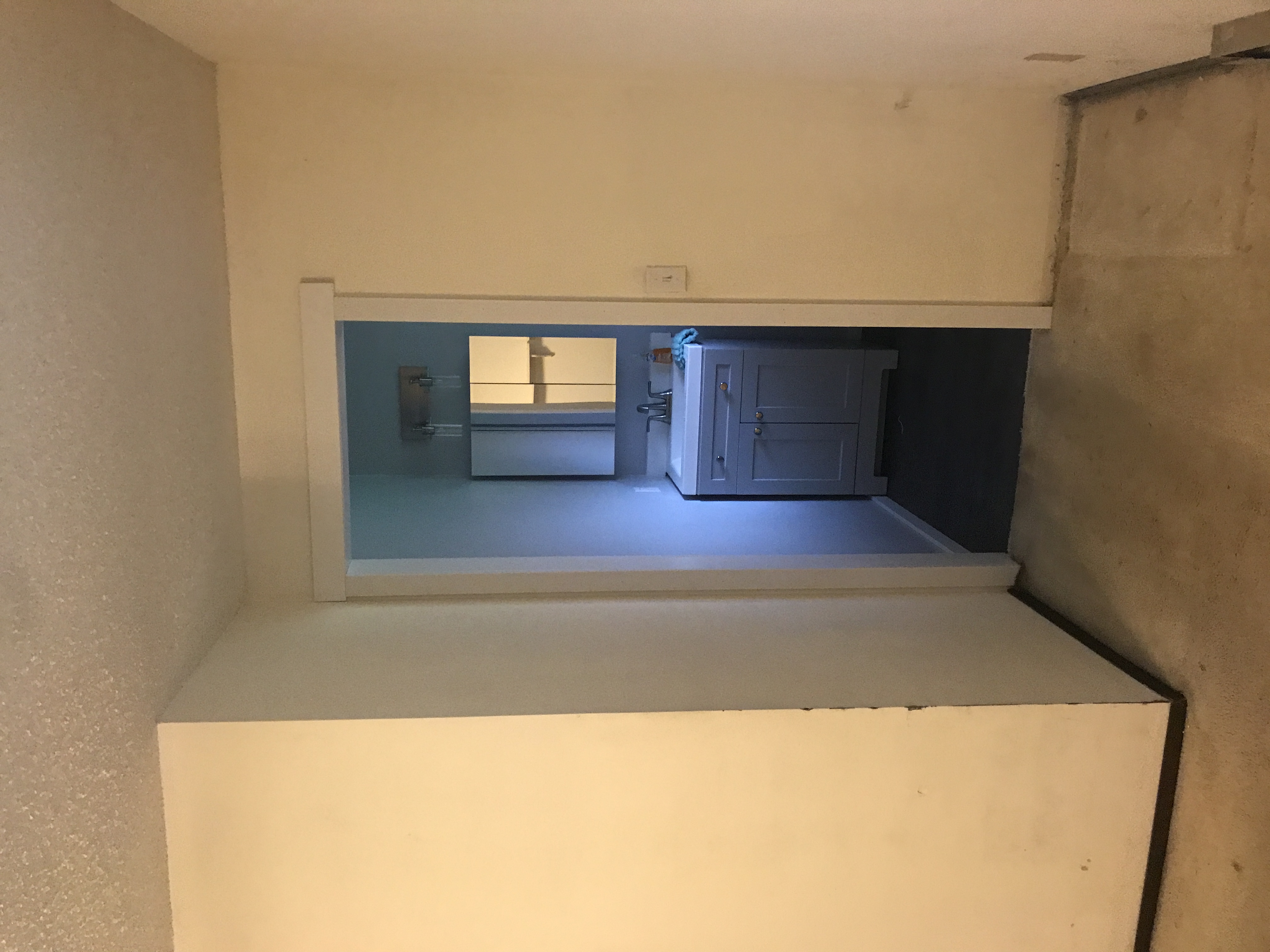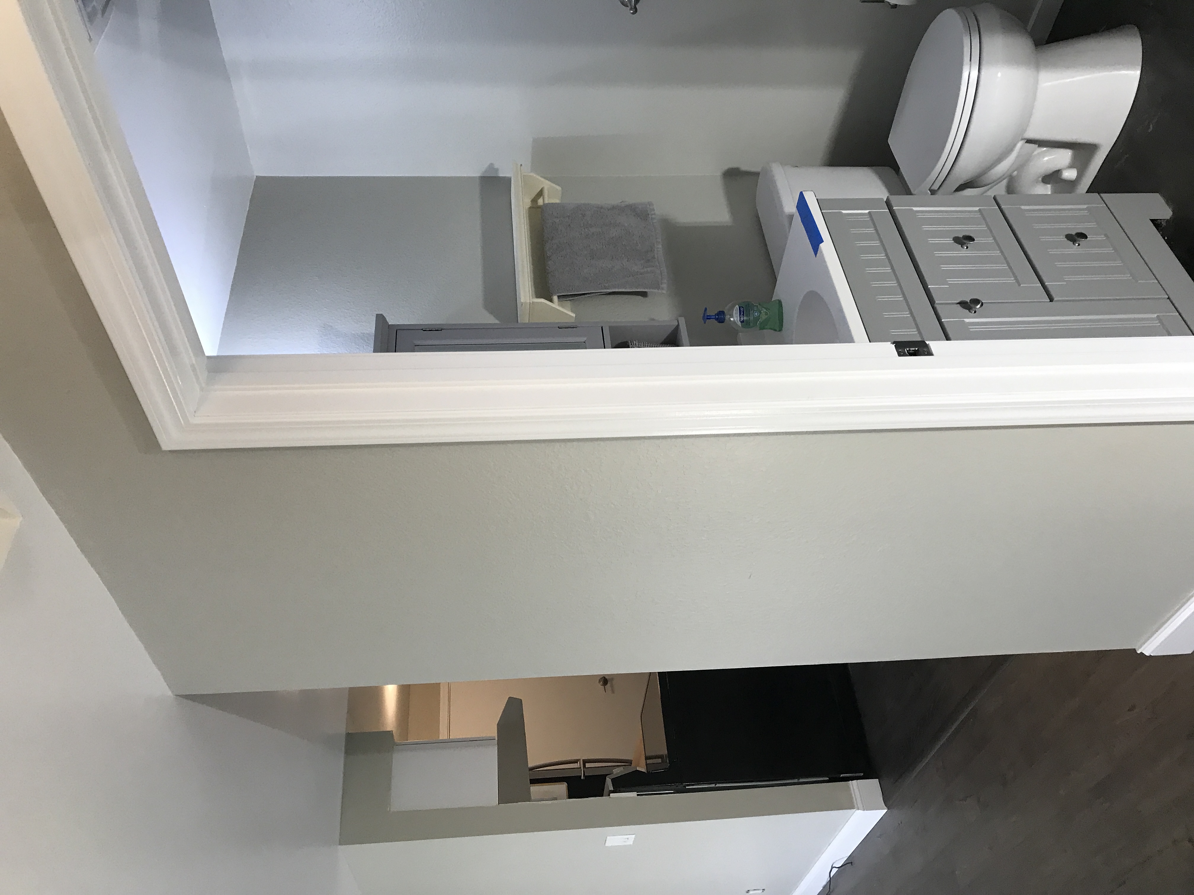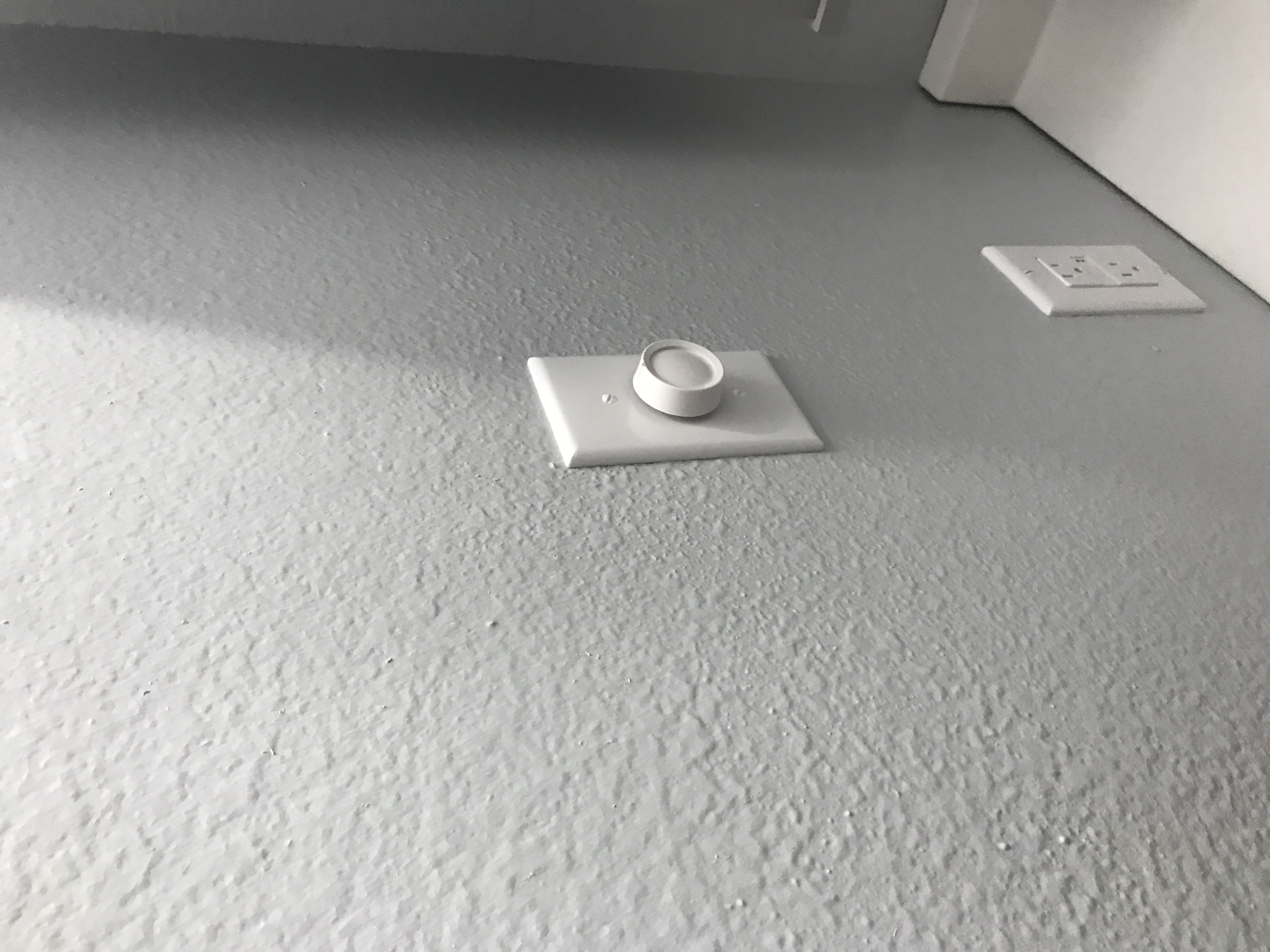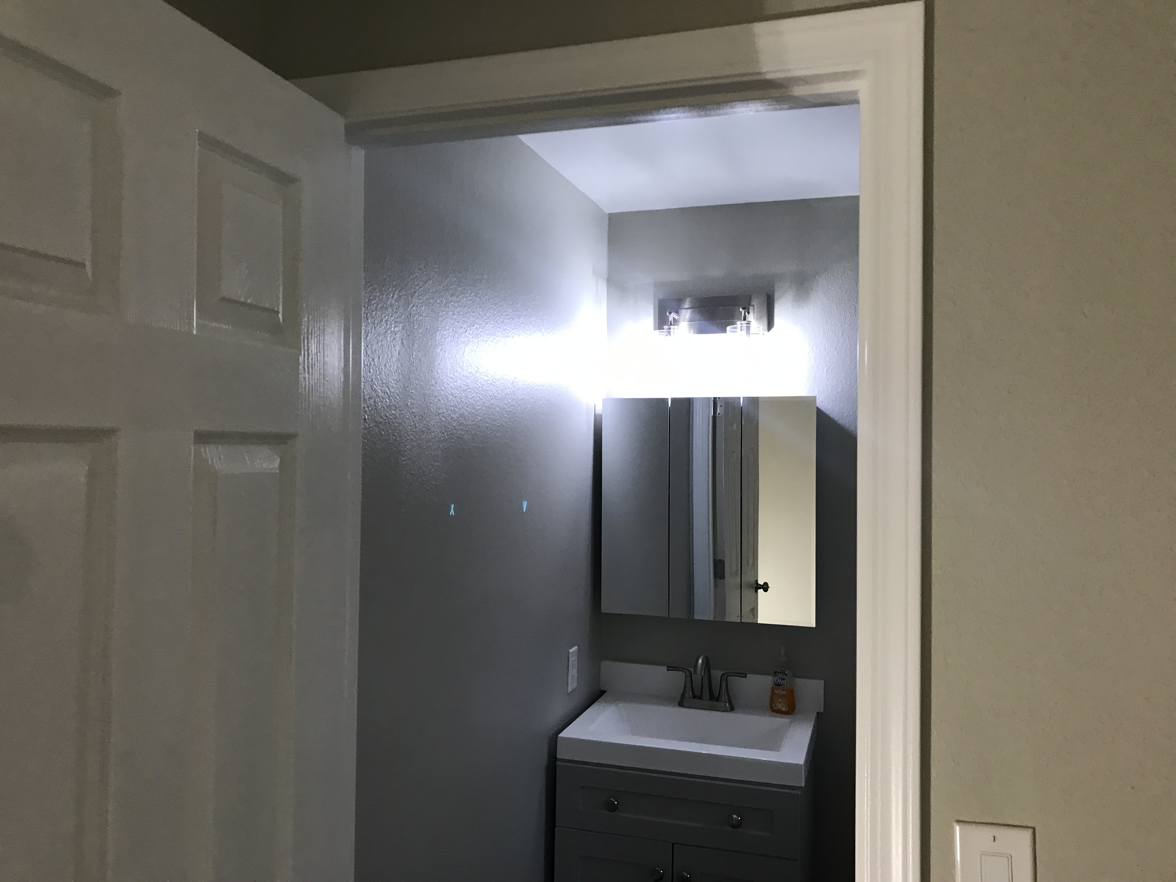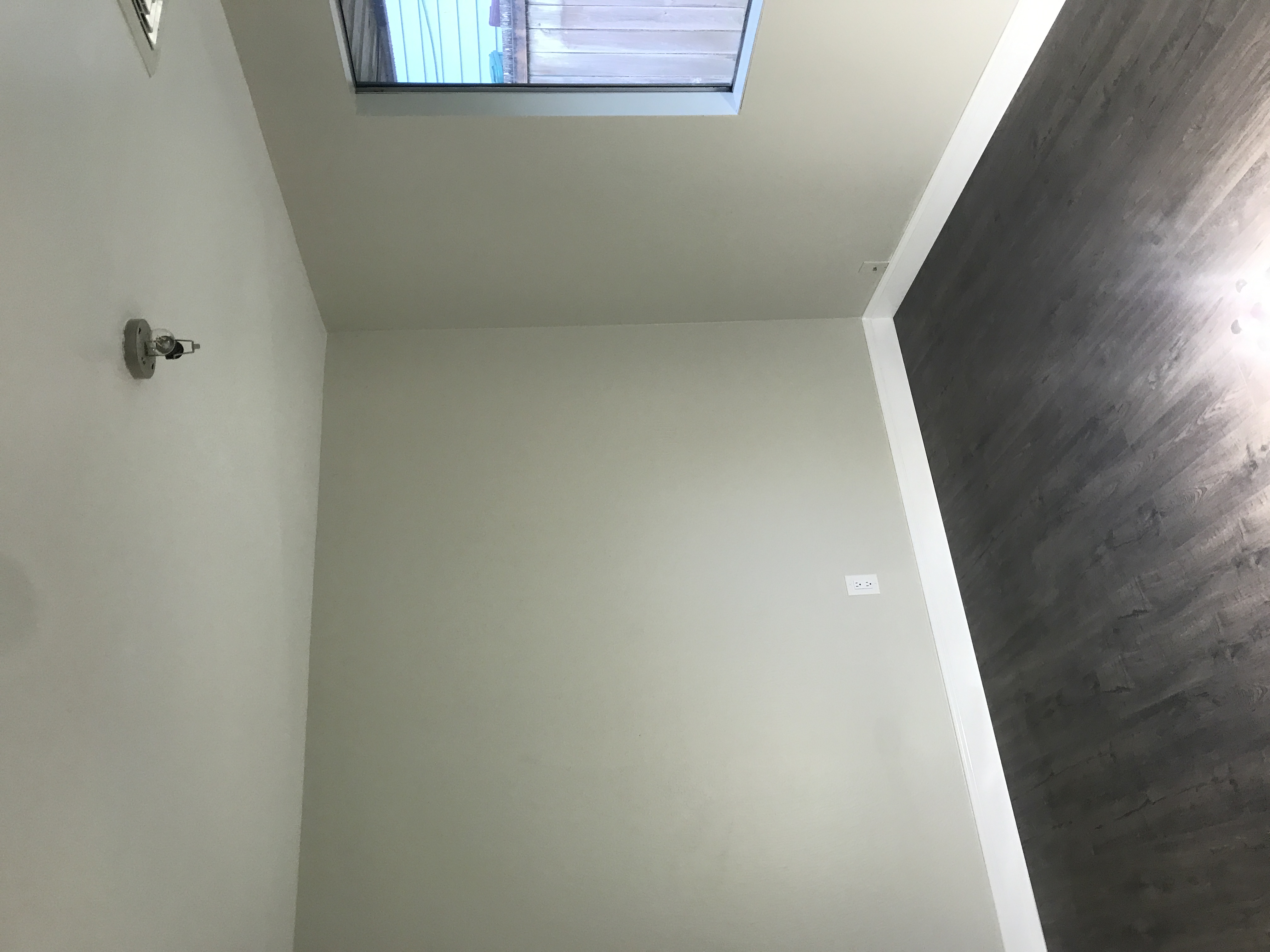 Master bathroom patch - wall is painted wallpaper left on wall - doing our best to match texture on the wall
