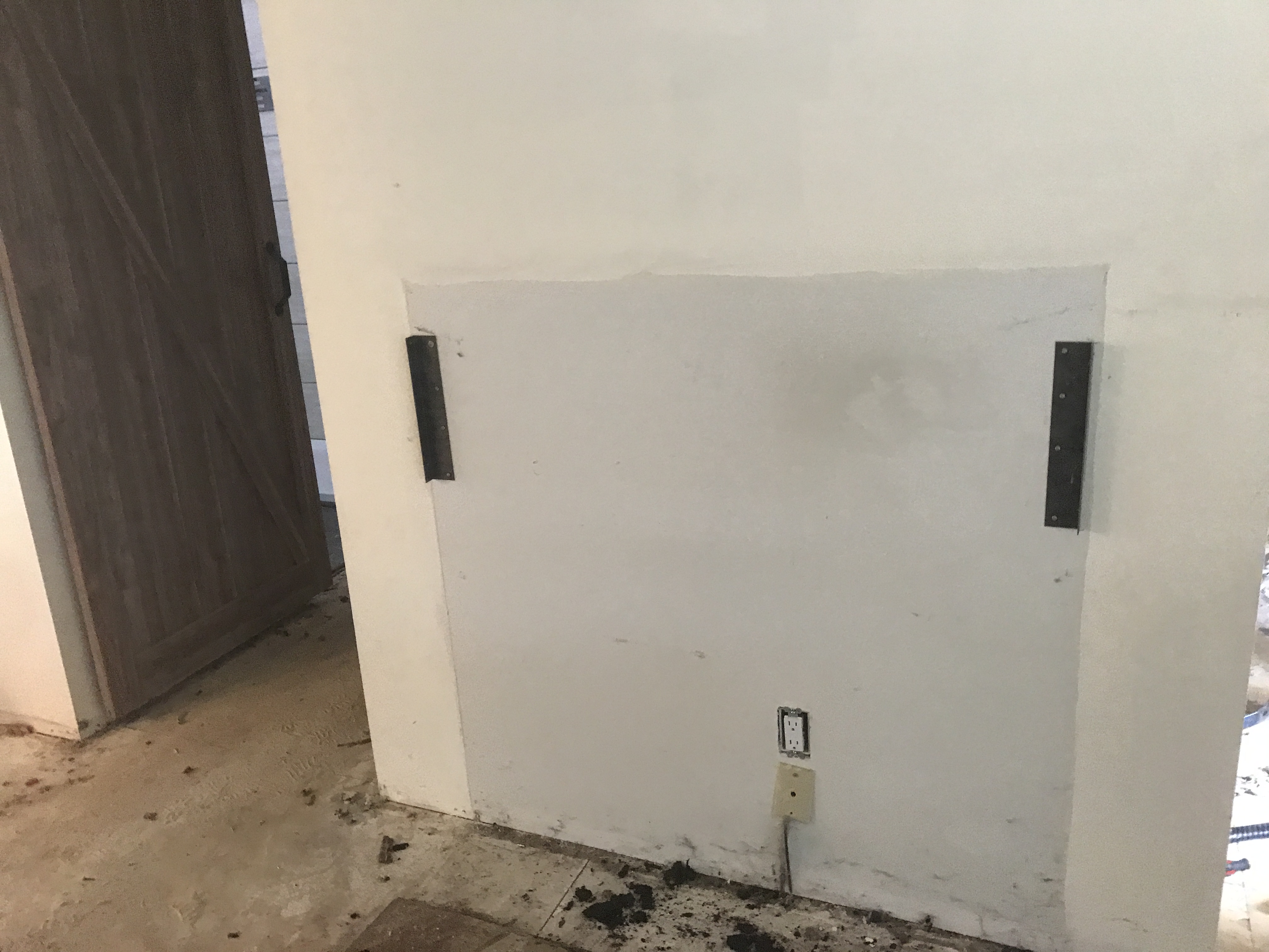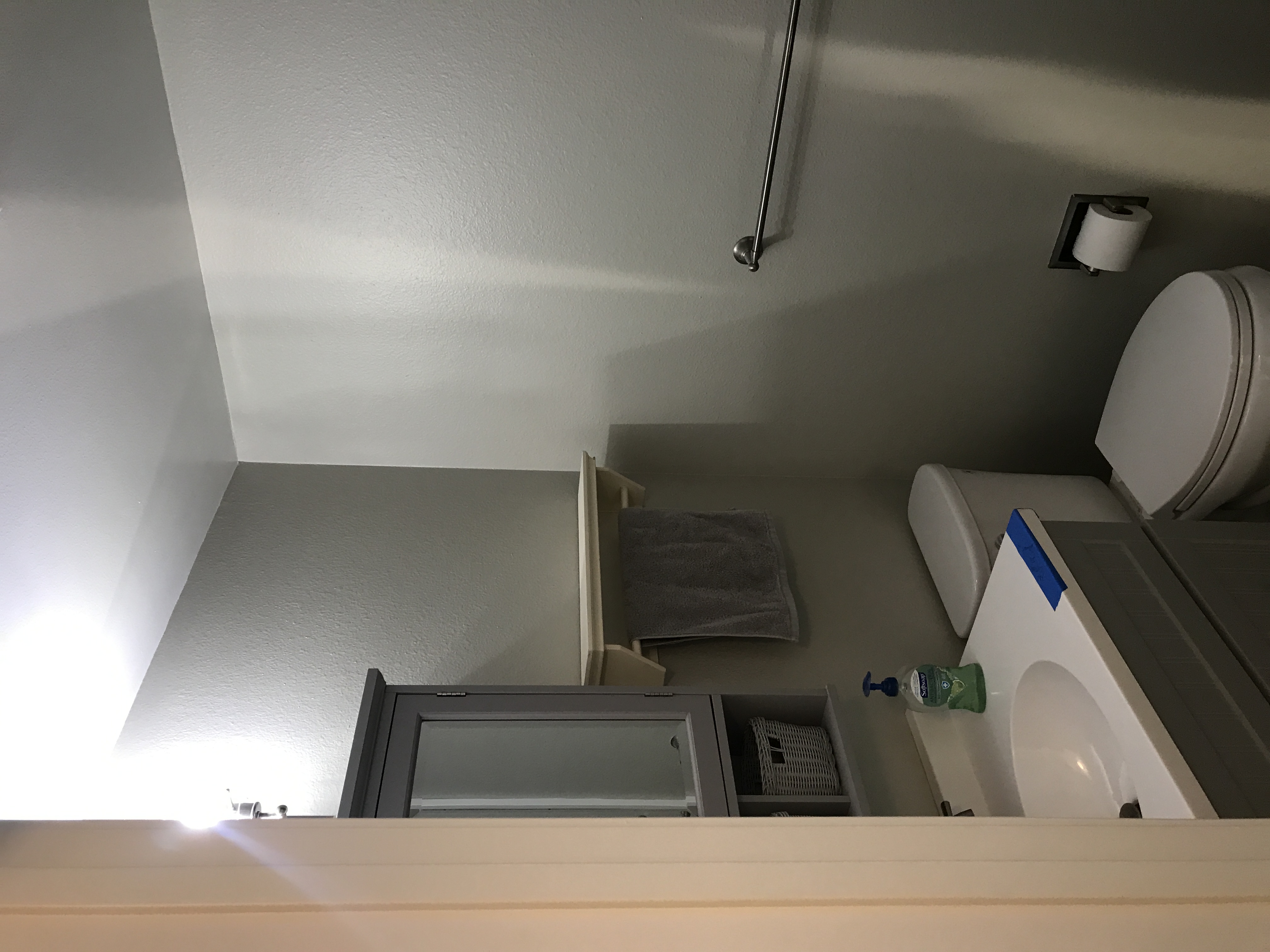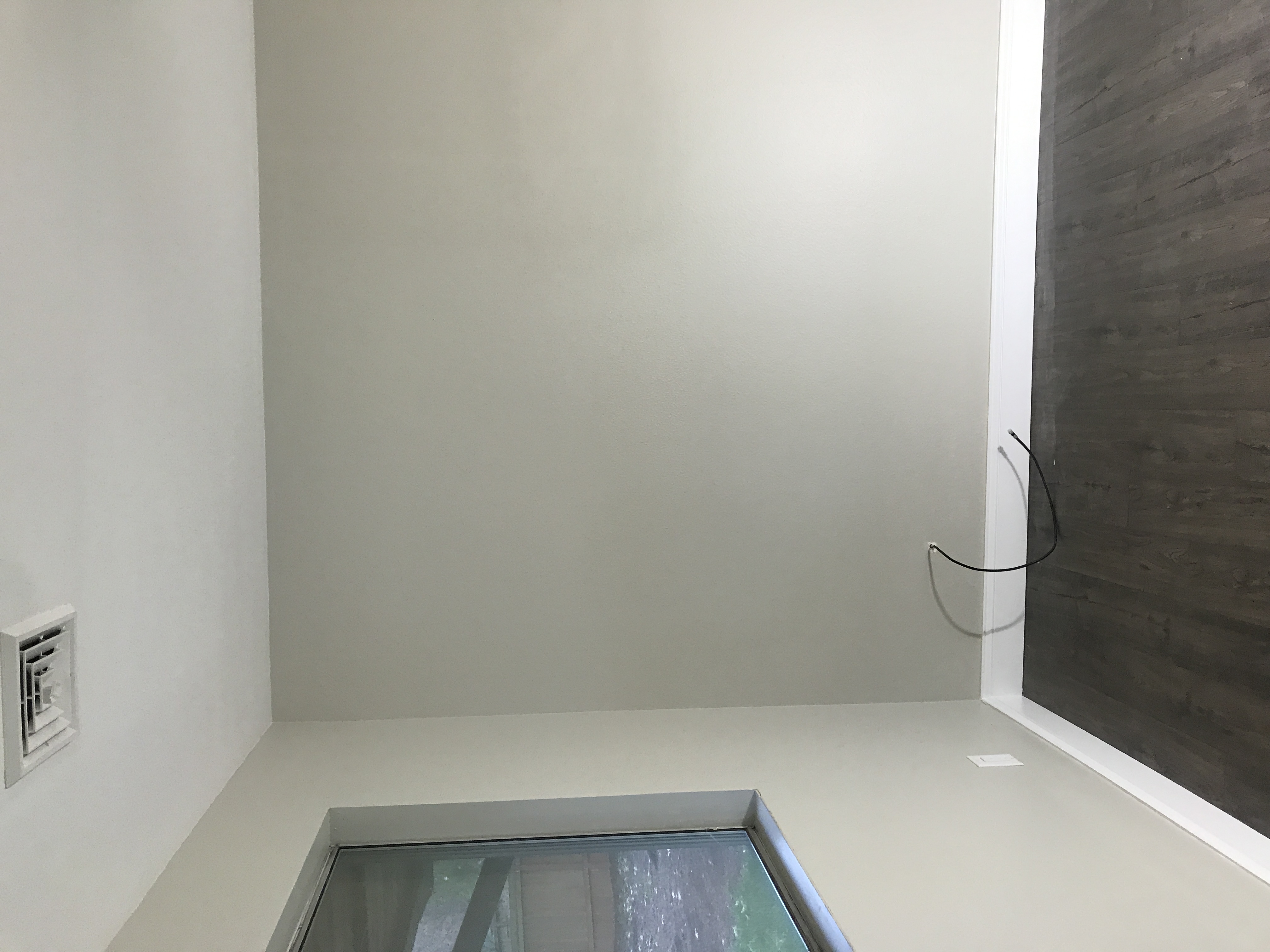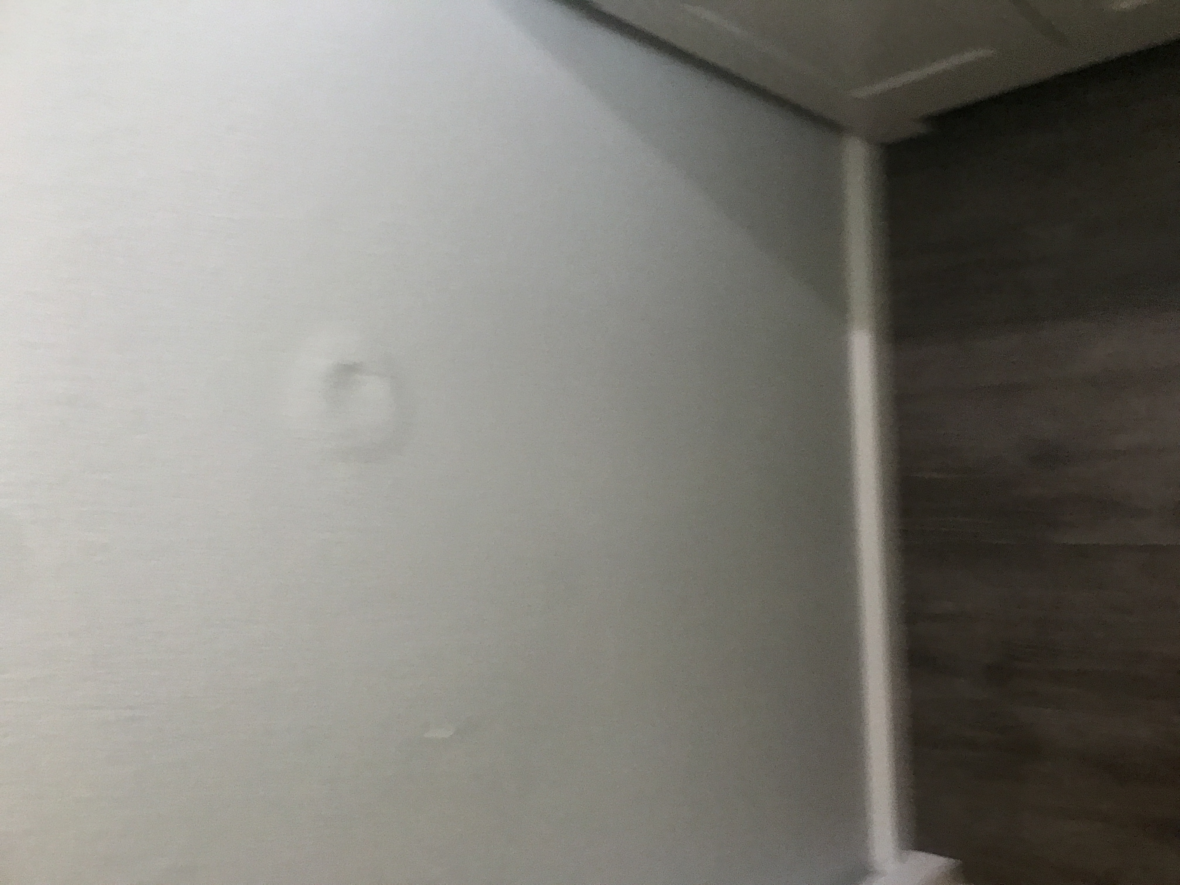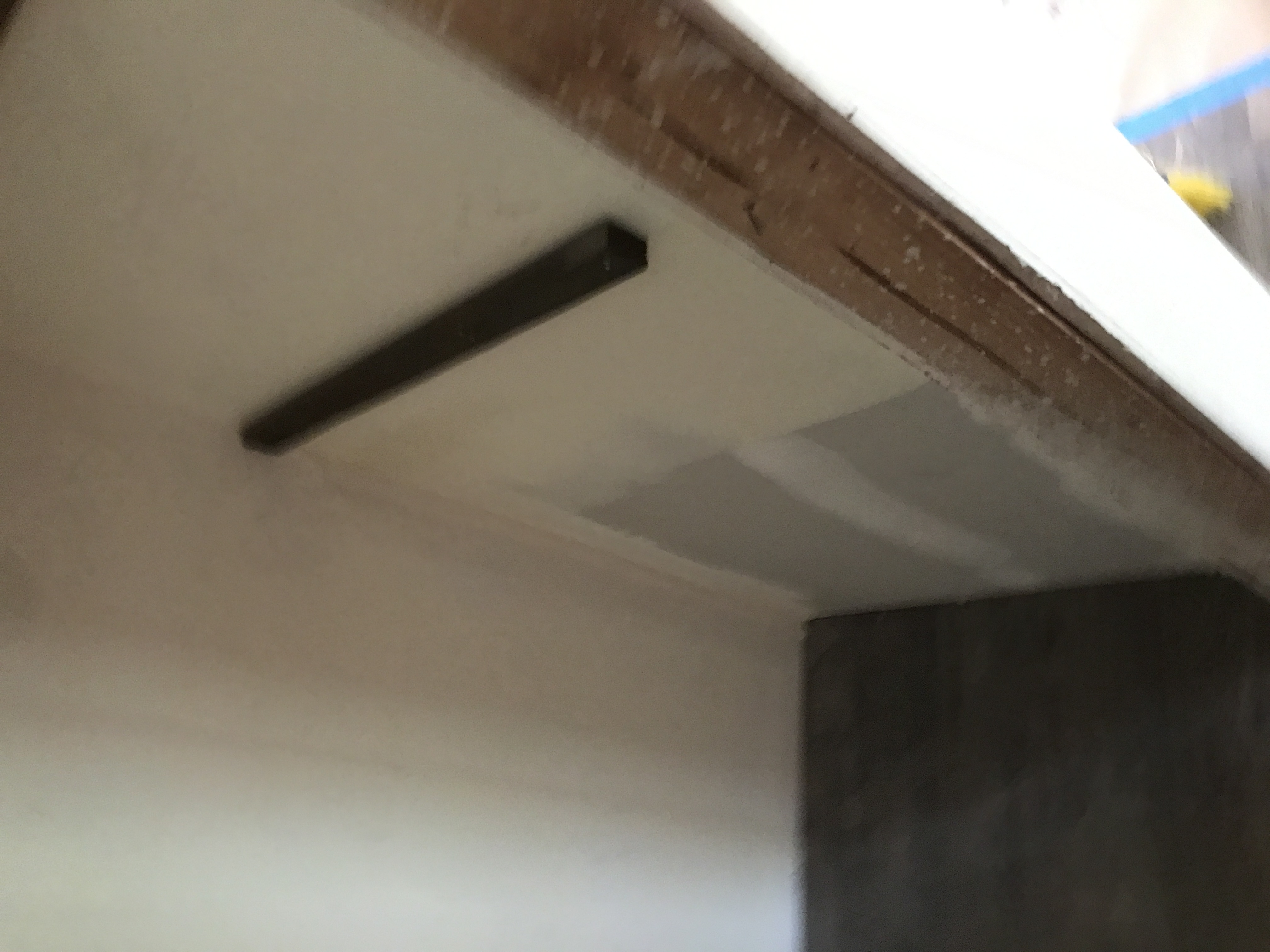 Master bathroom patch - wall is painted wallpaper left on wall - doing our best to match texture on the wall
