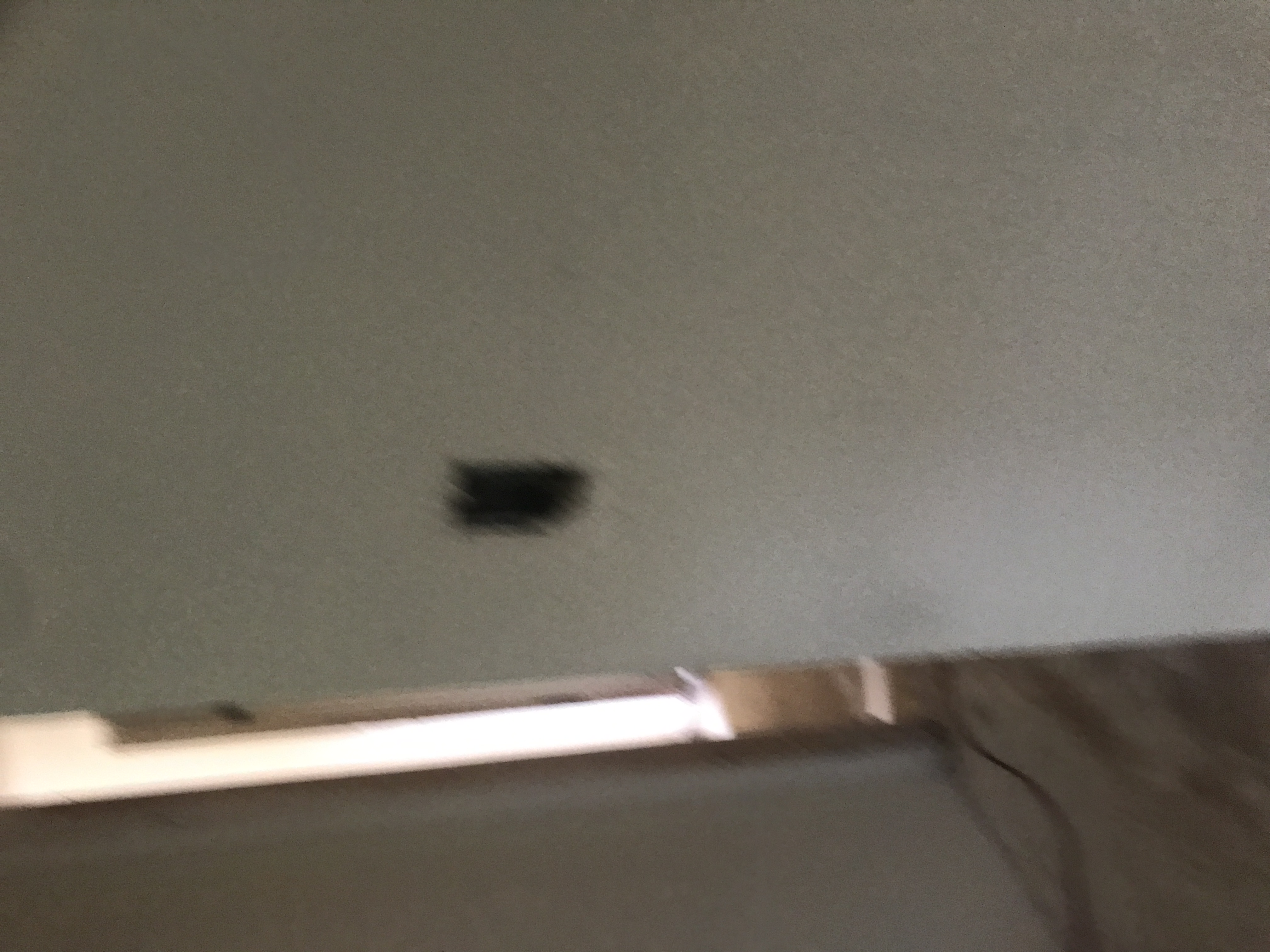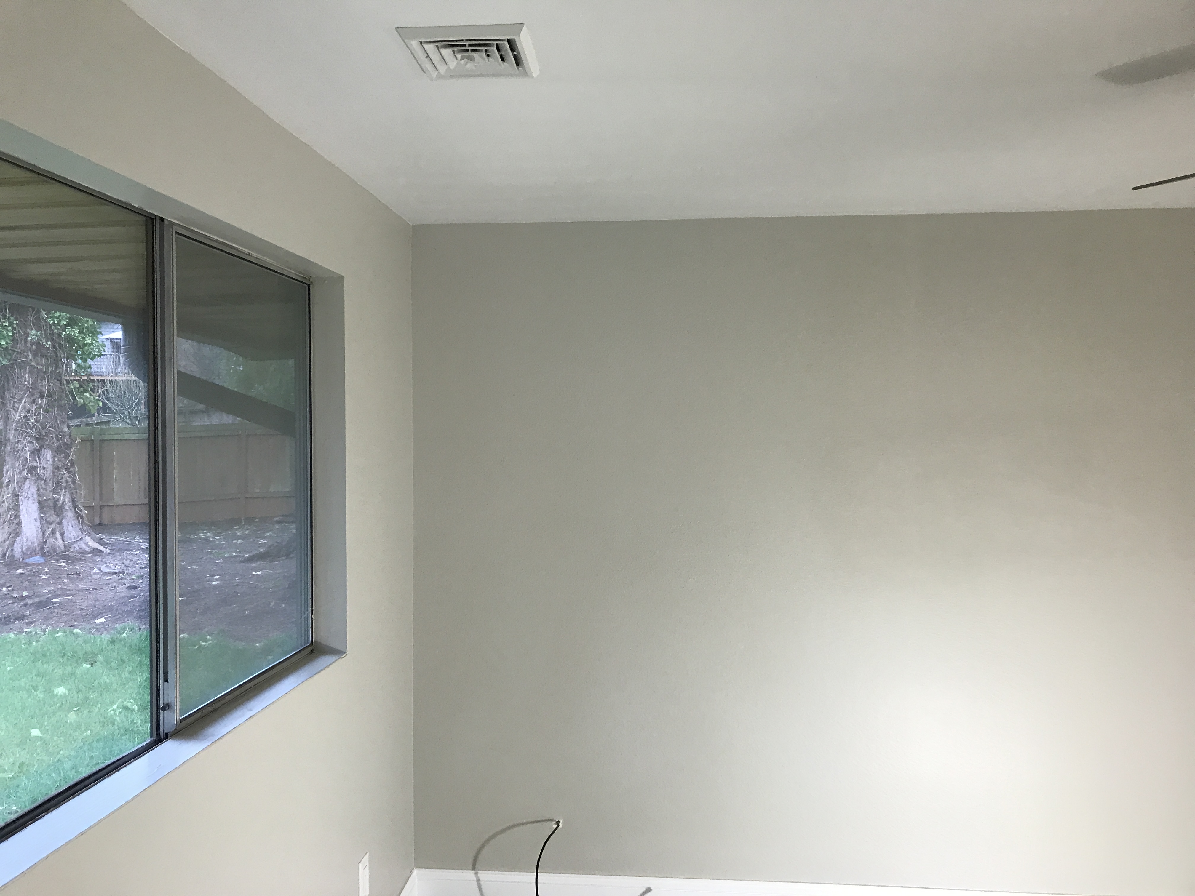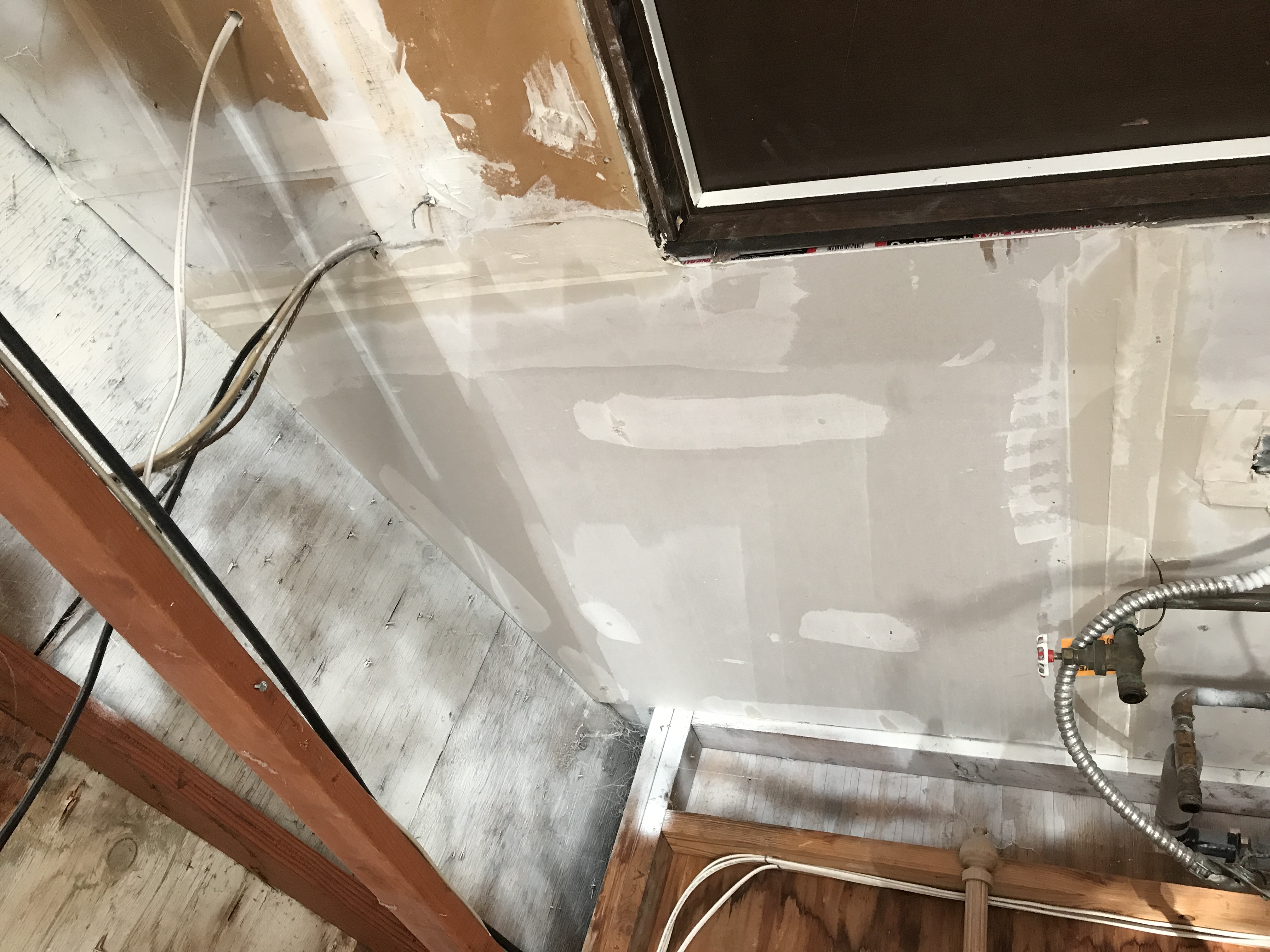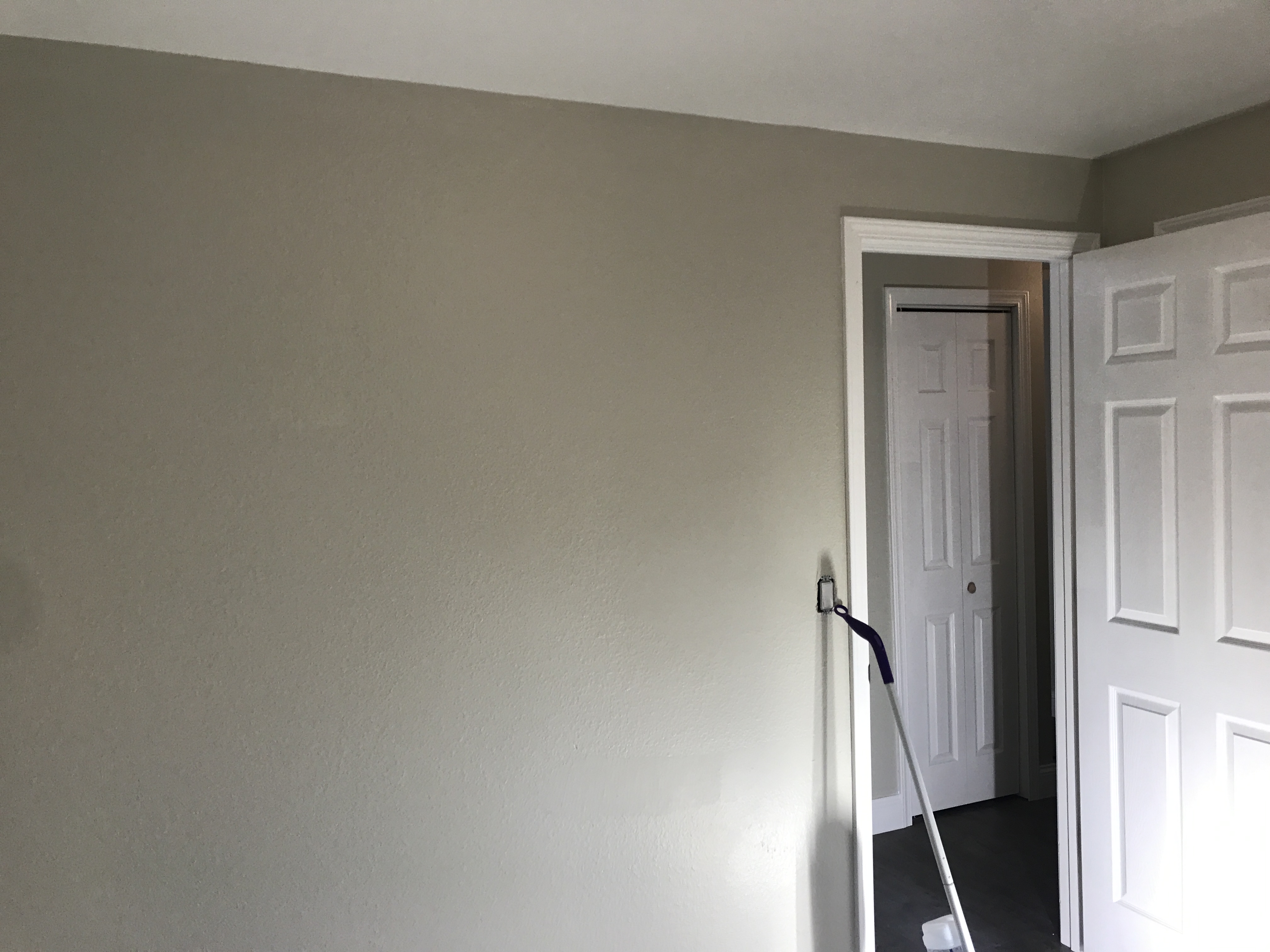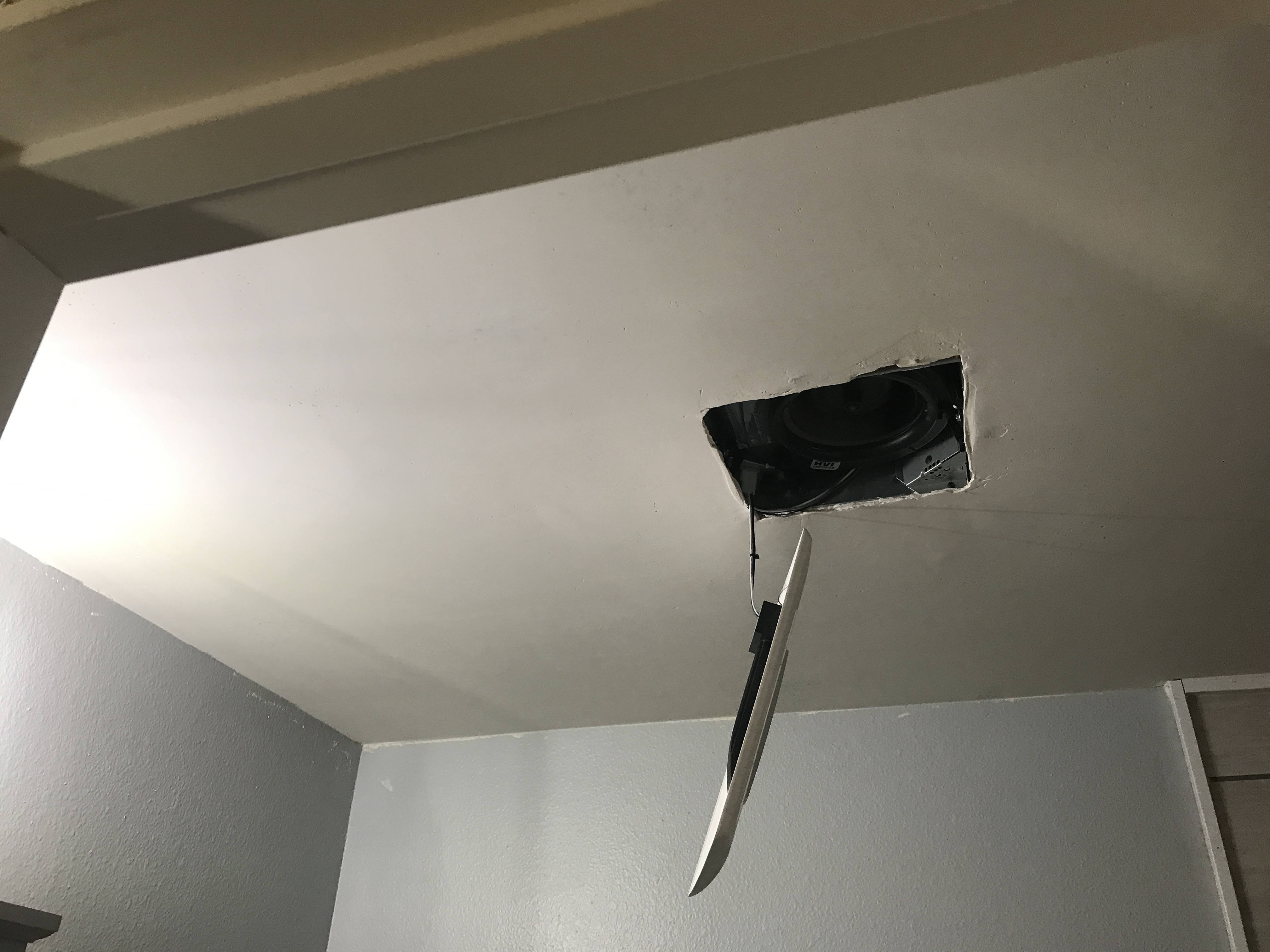 Master bathroom patch - wall is painted wallpaper left on wall - doing our best to match texture on the wall