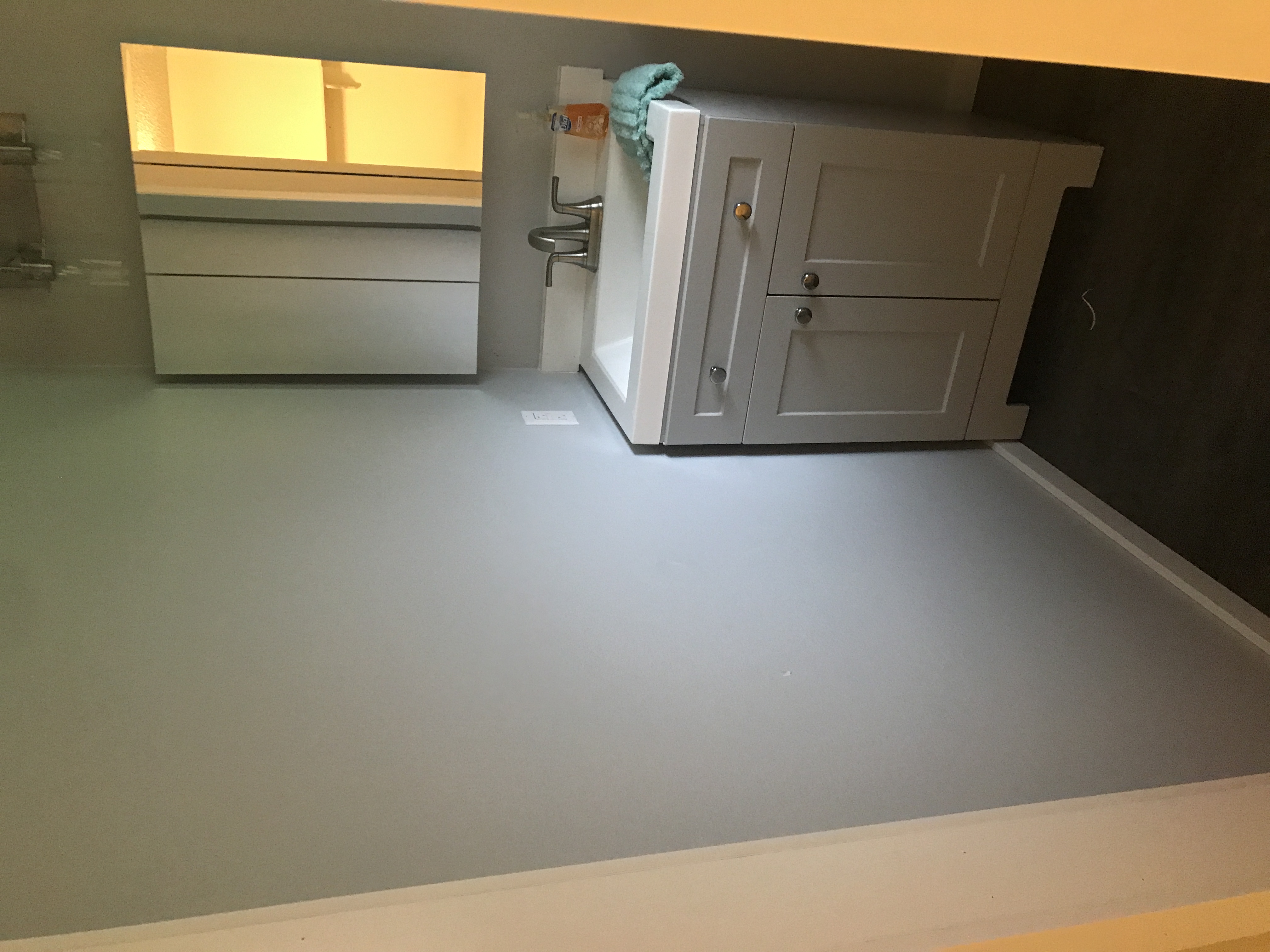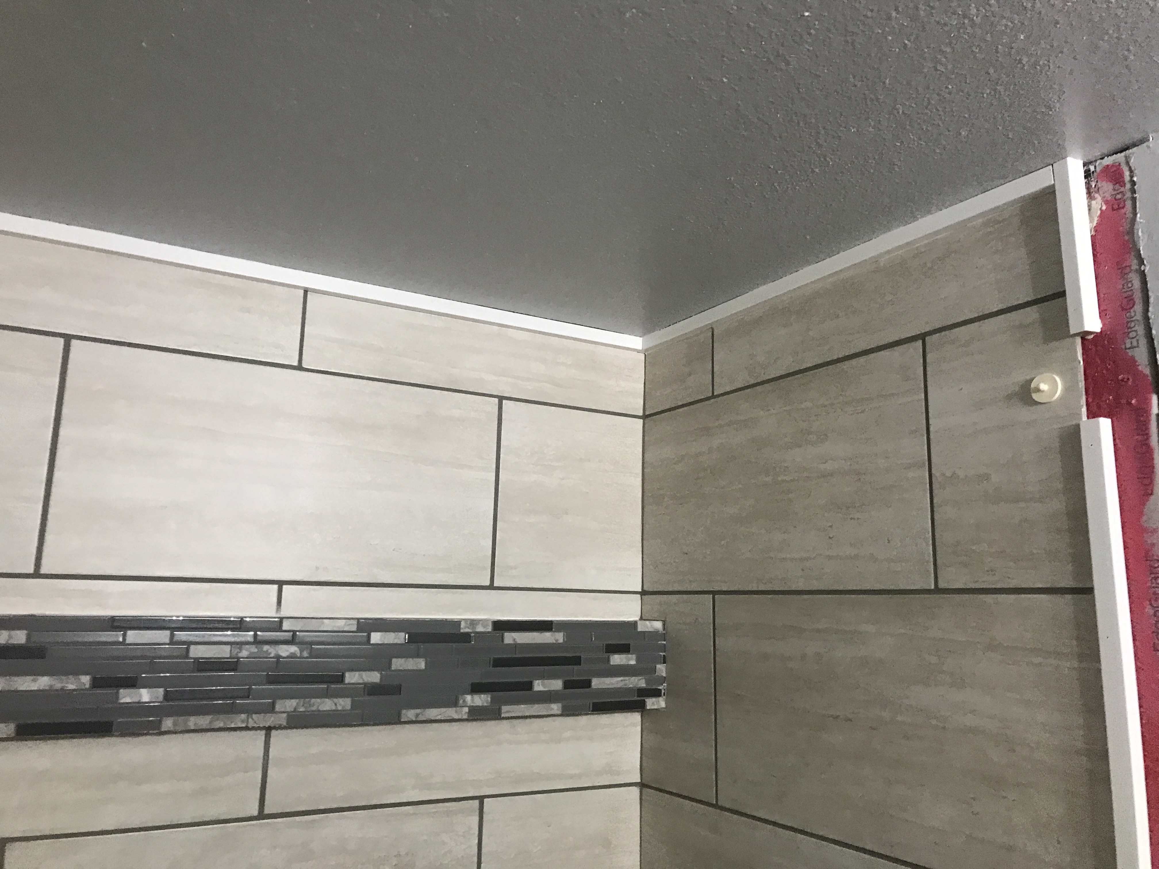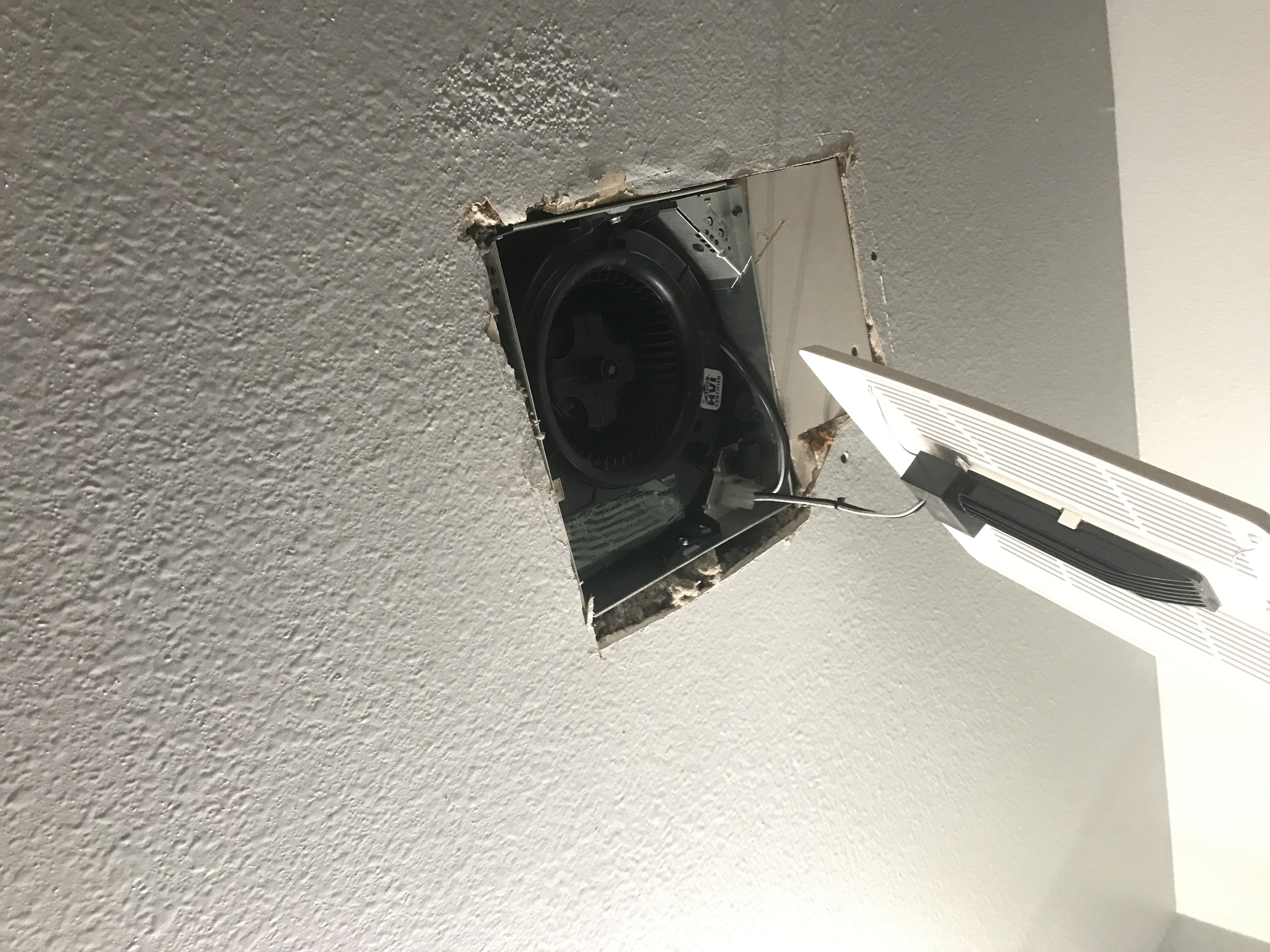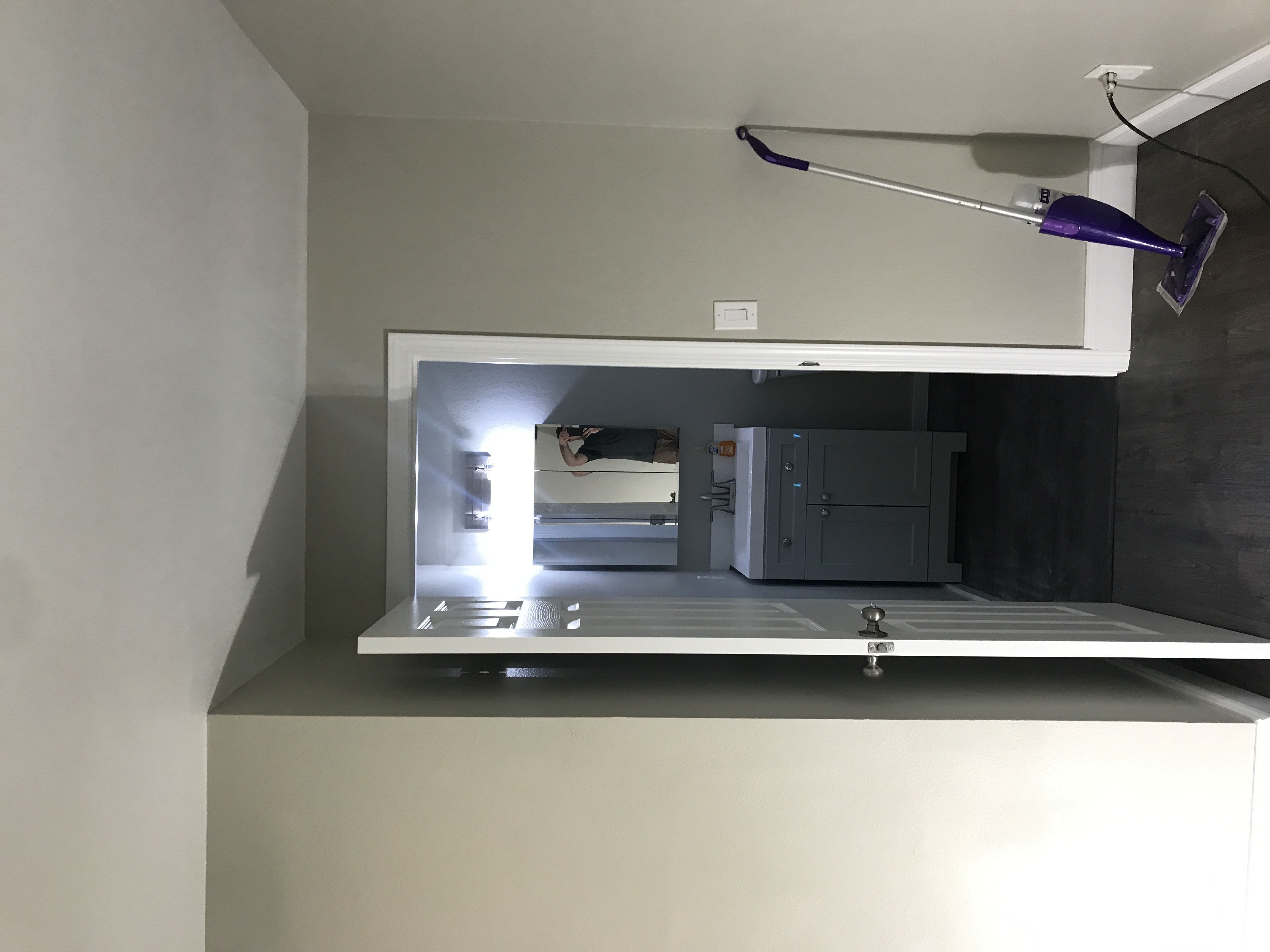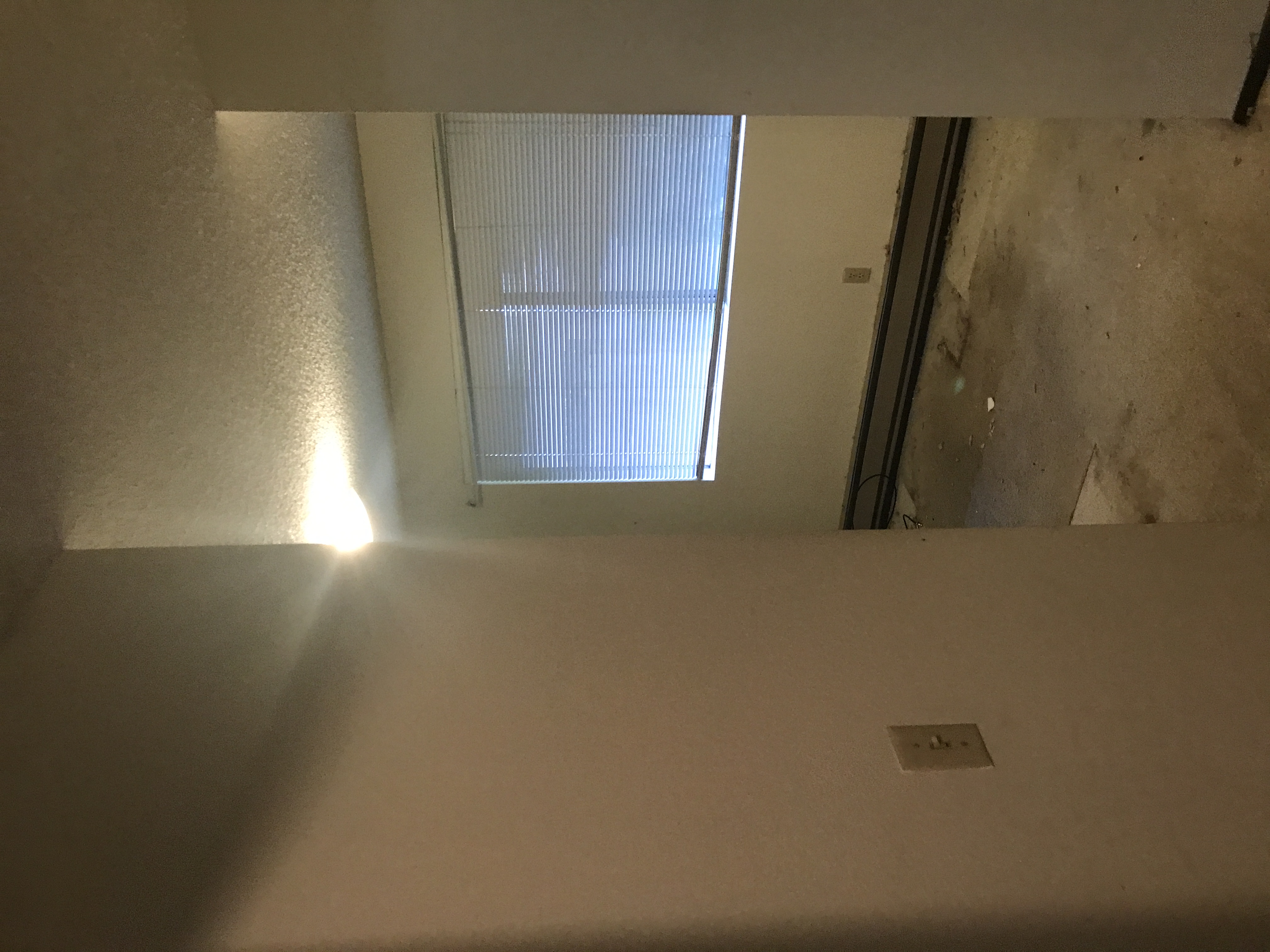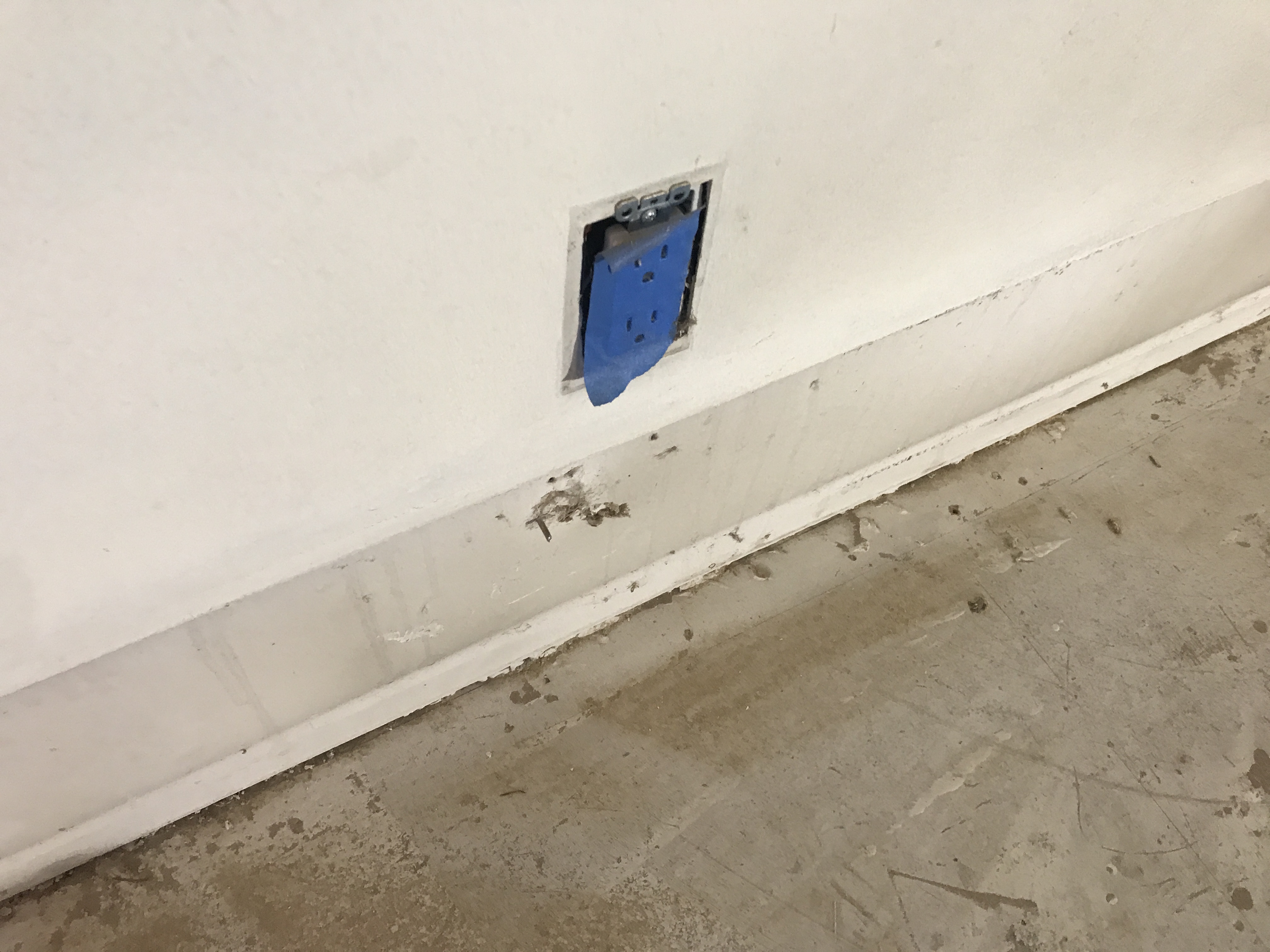 Master bathroom patch - wall is painted wallpaper left on wall - doing our best to match texture on the wall