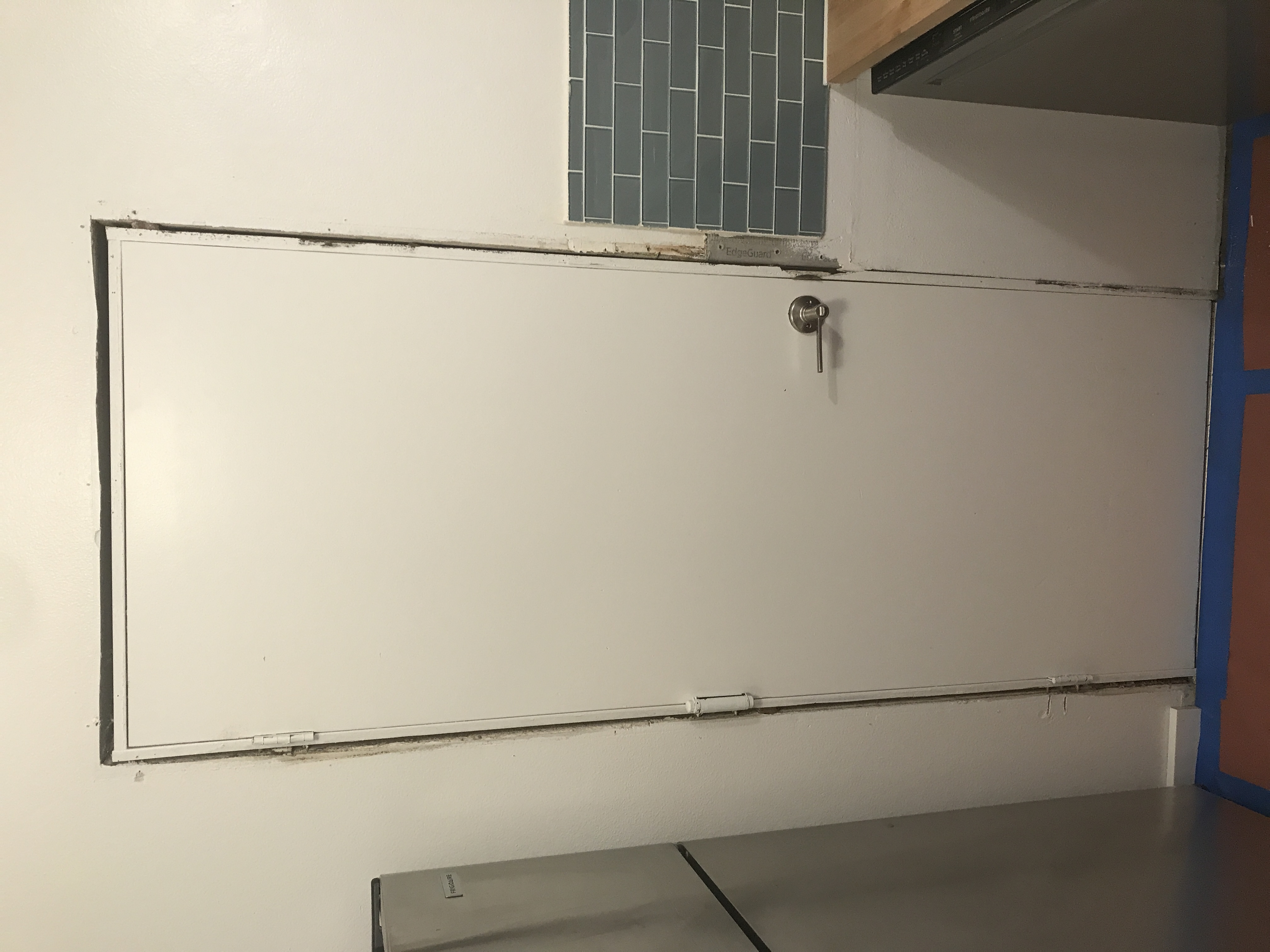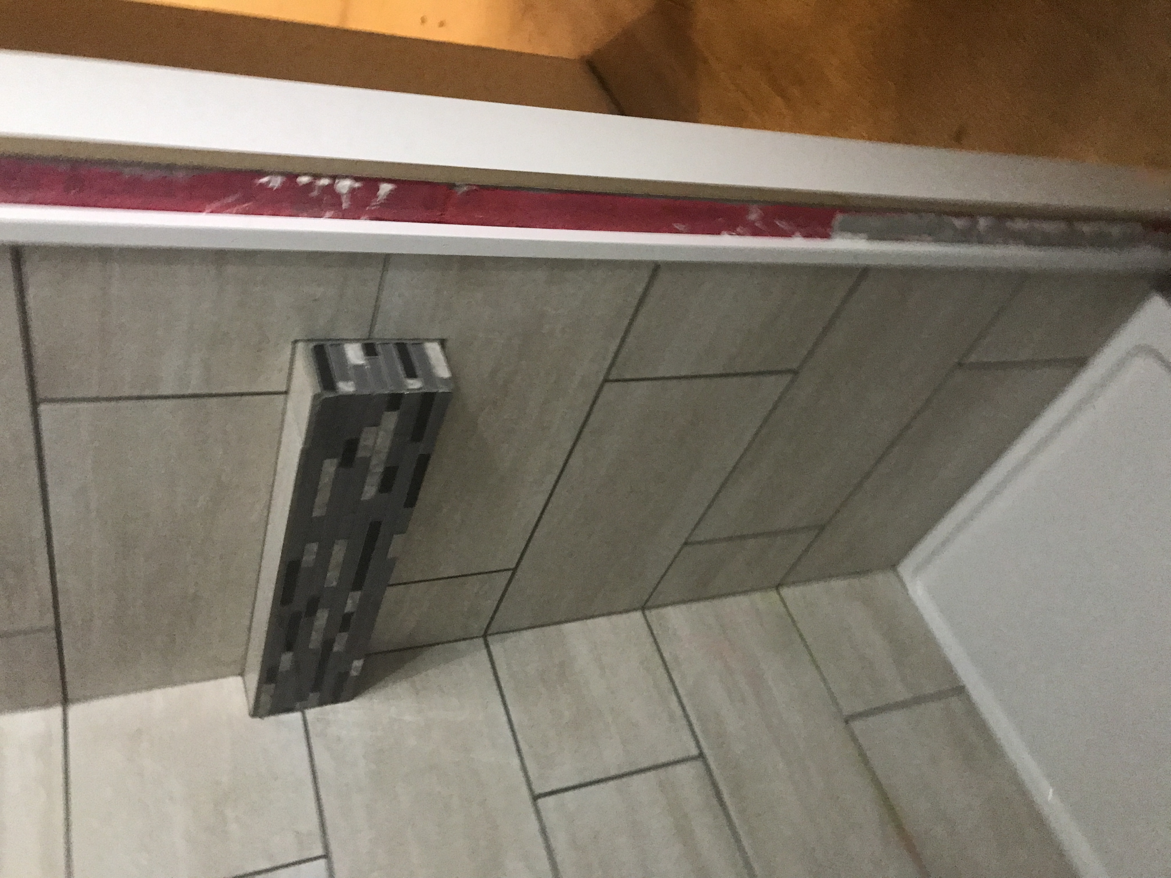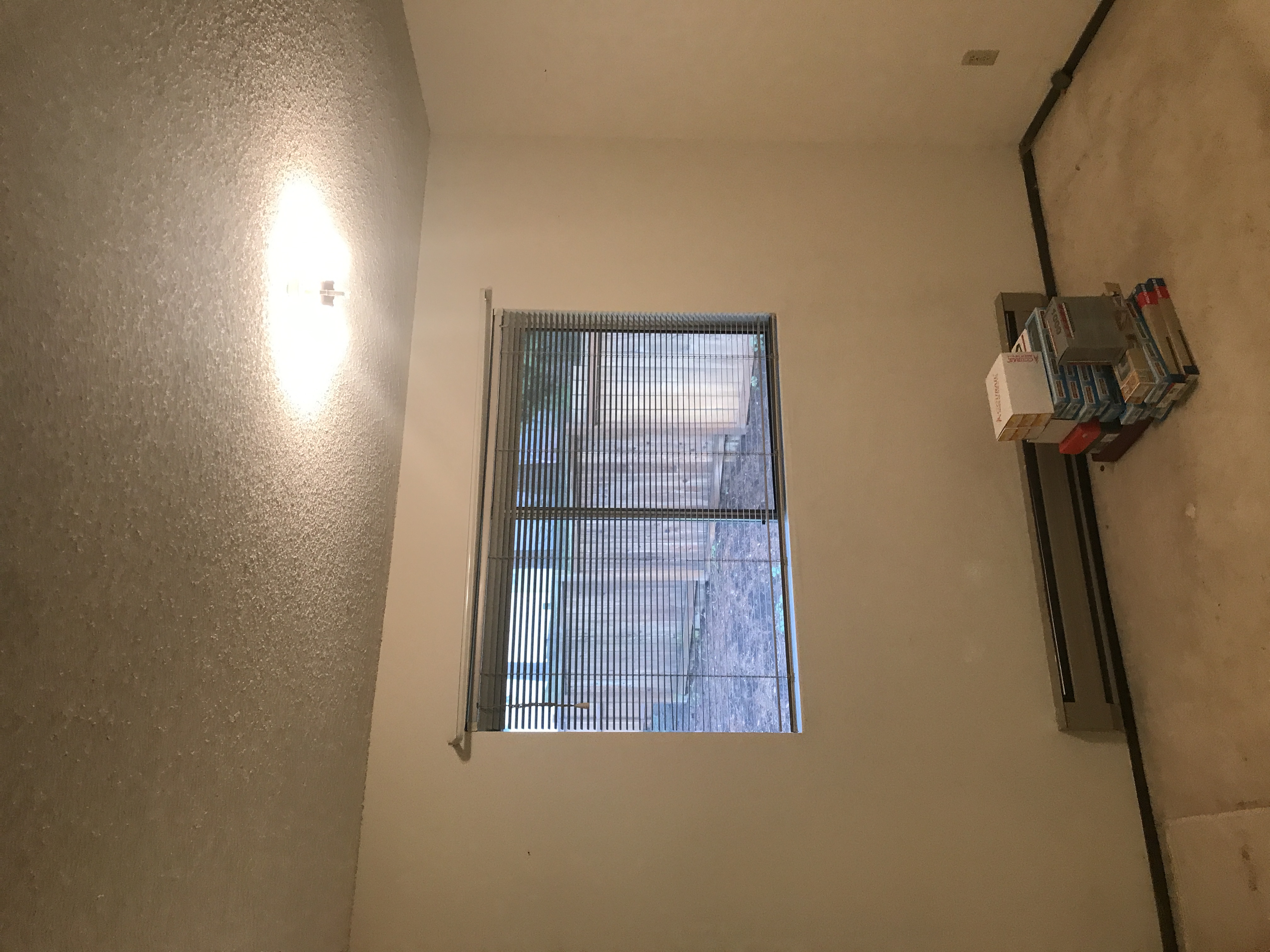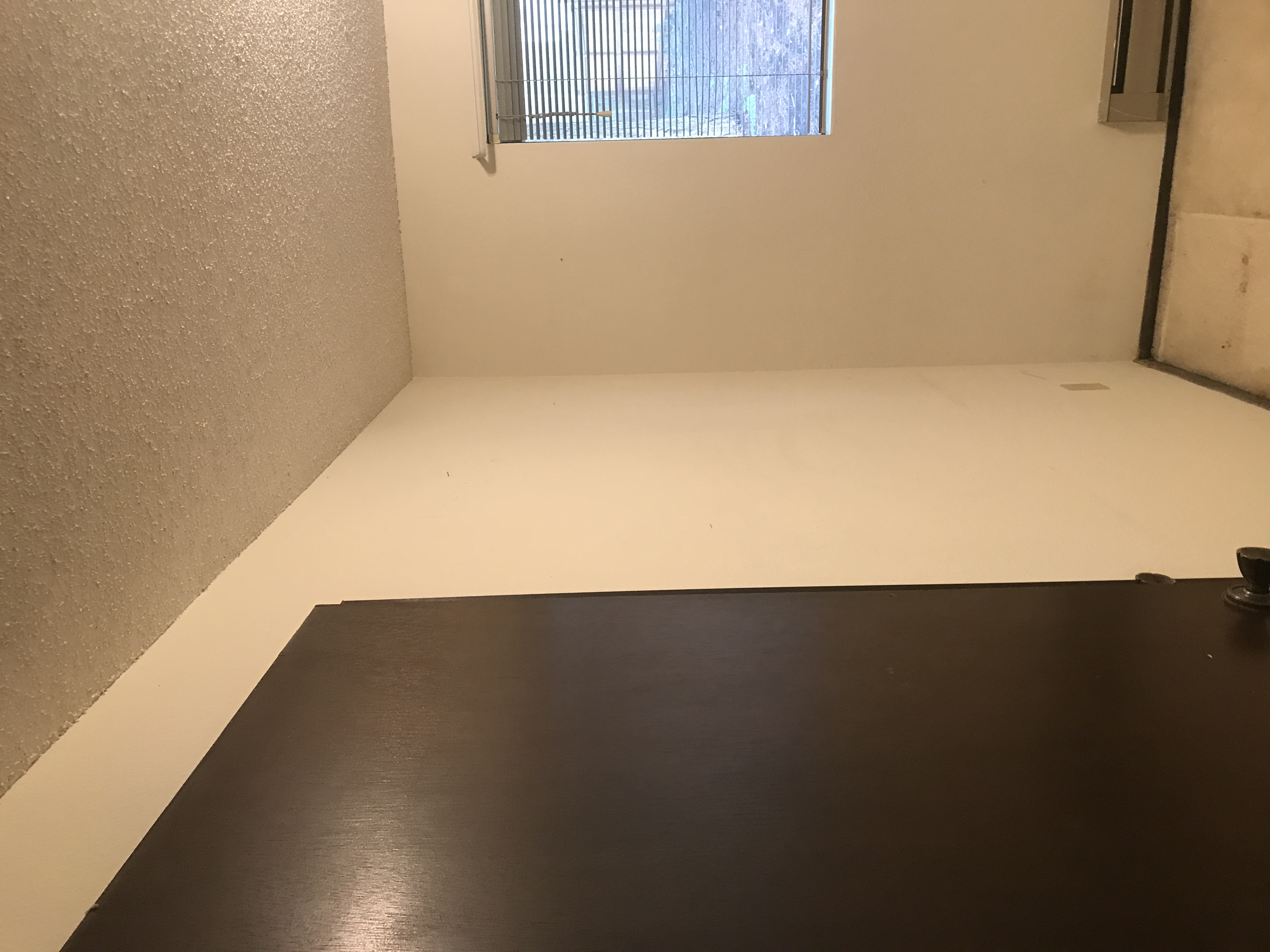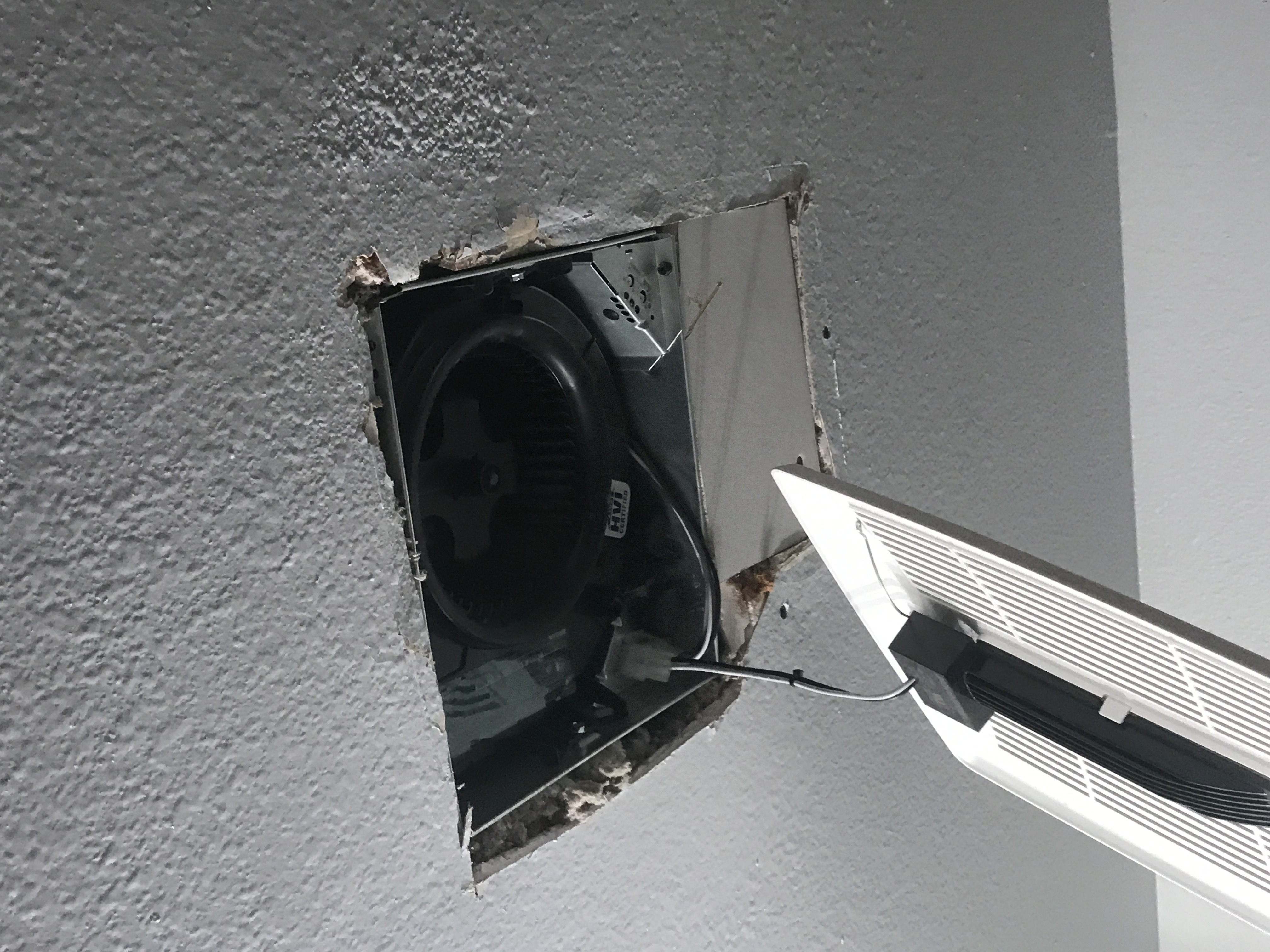 Master bathroom patch - wall is painted wallpaper left on wall - doing our best to match texture on the wall