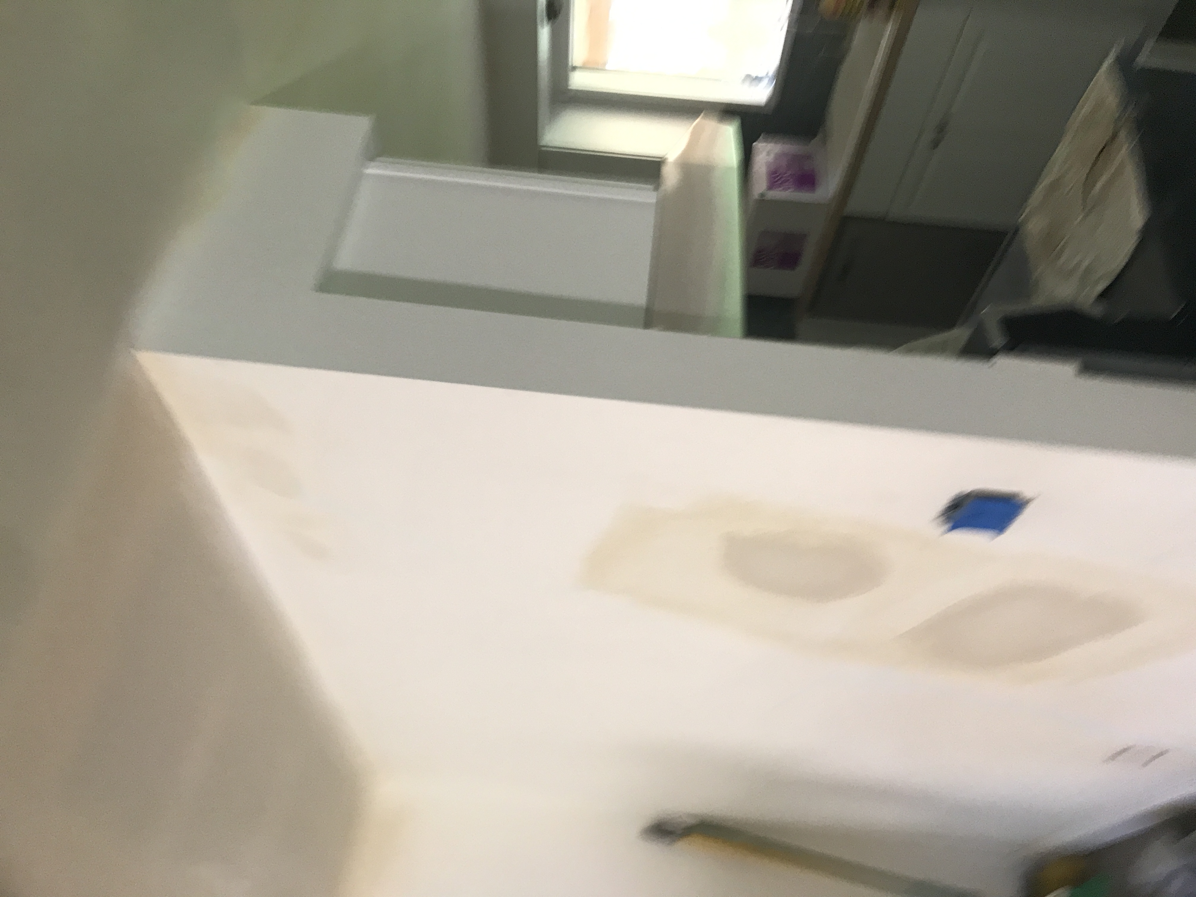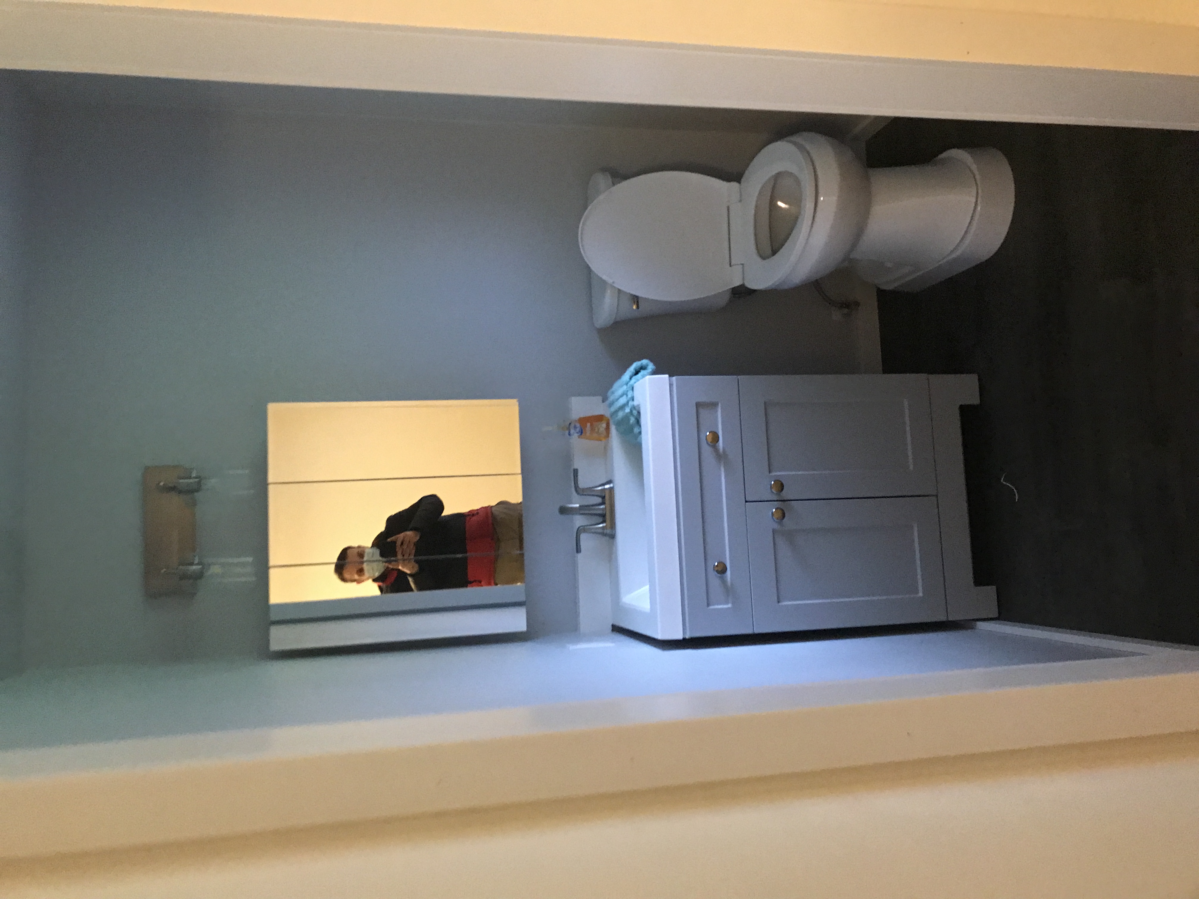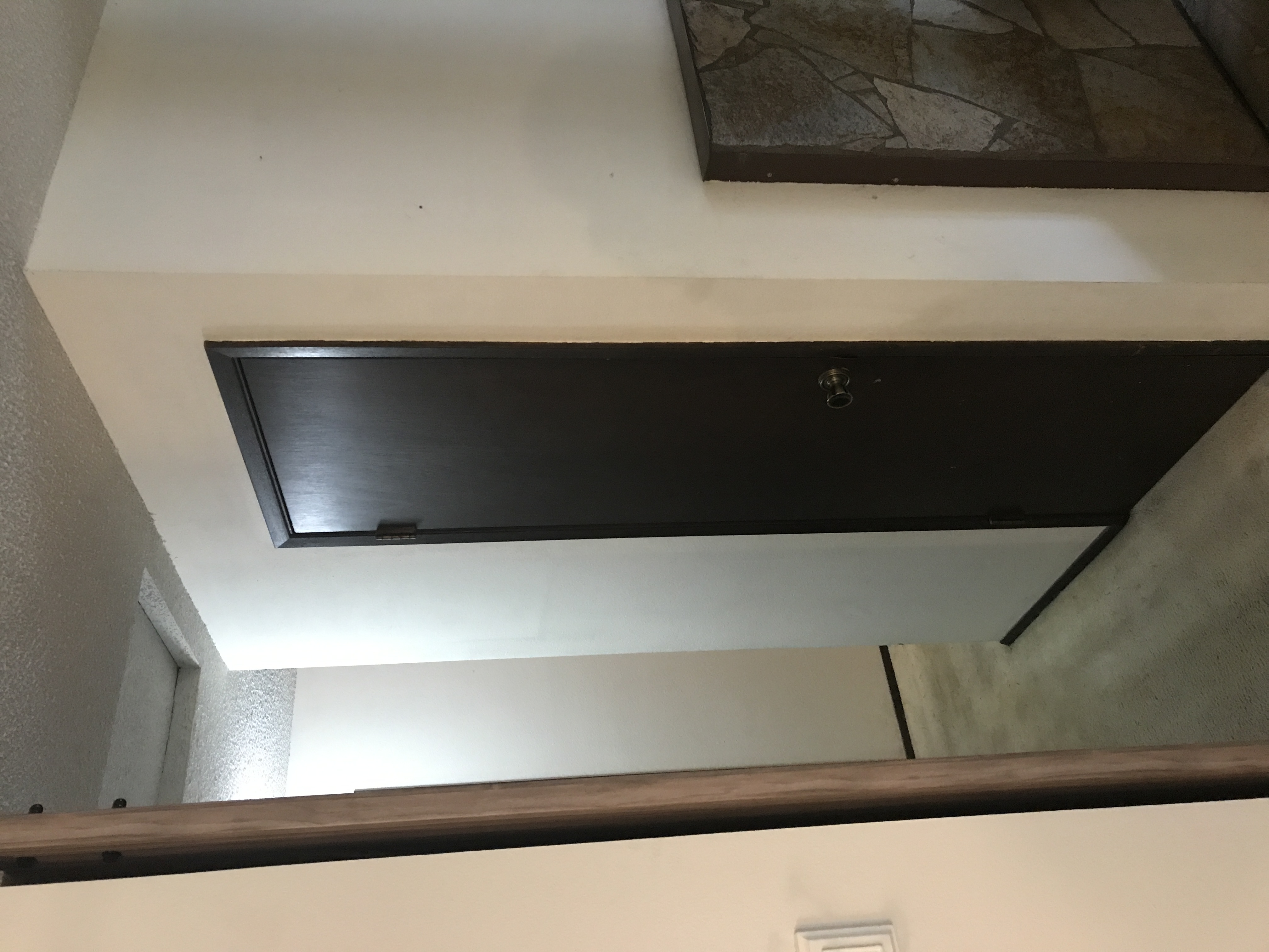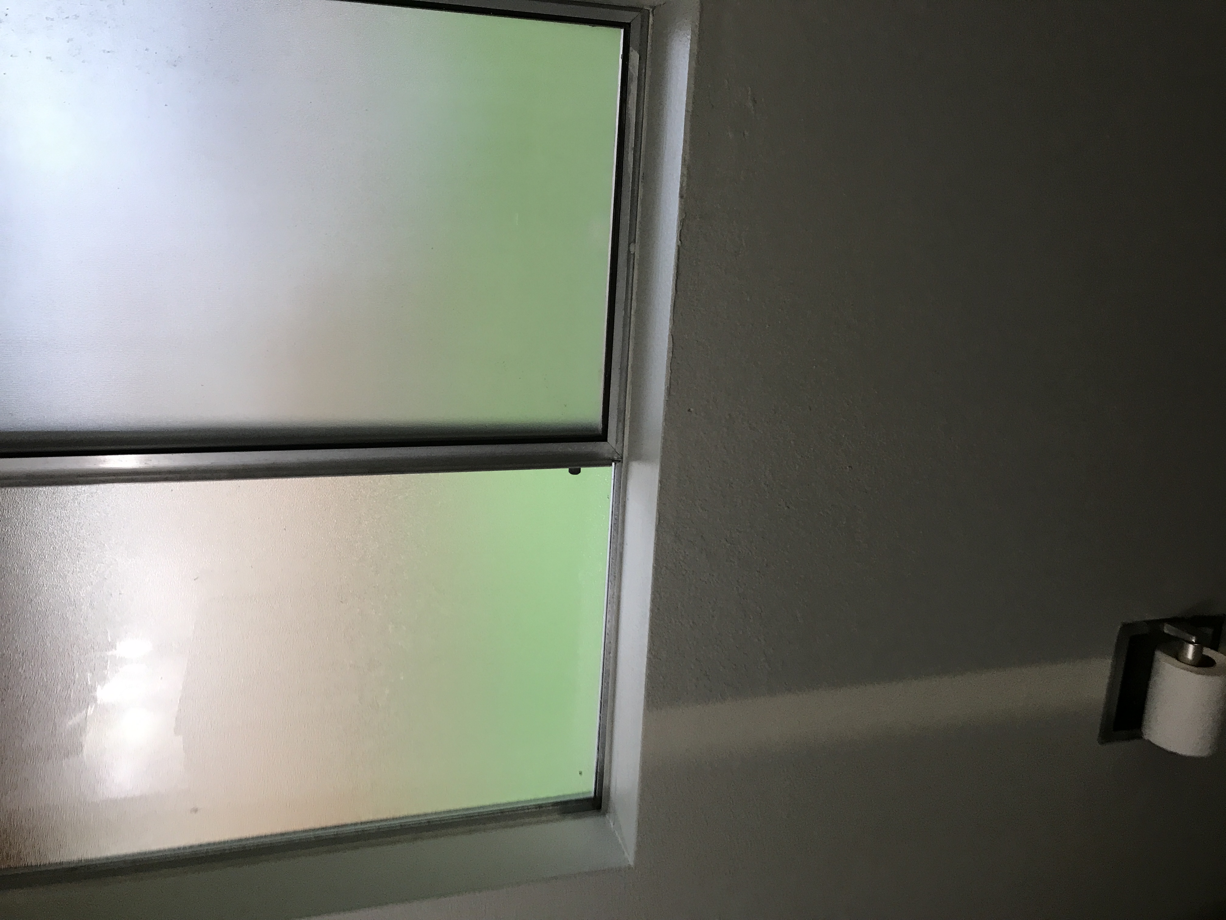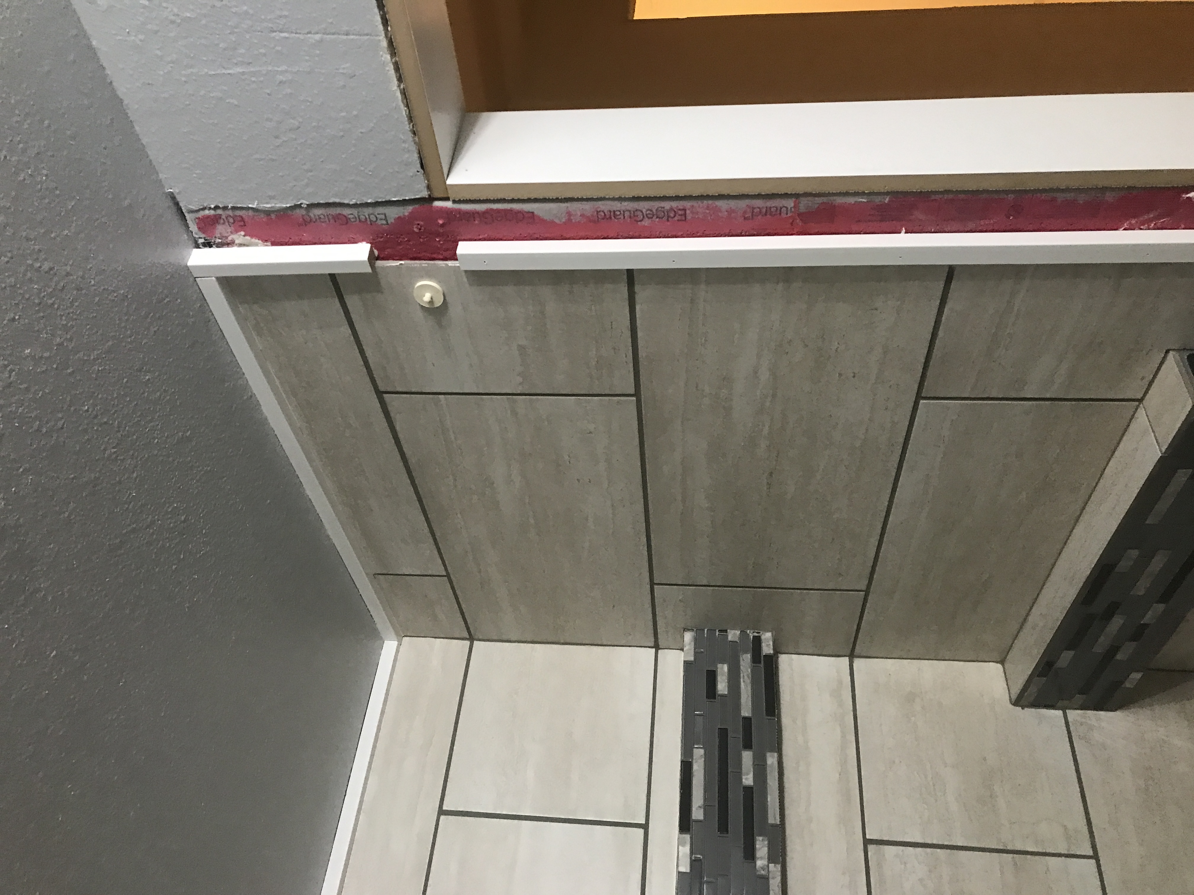 Master bathroom patch - wall is painted wallpaper left on wall - doing our best to match texture on the wall