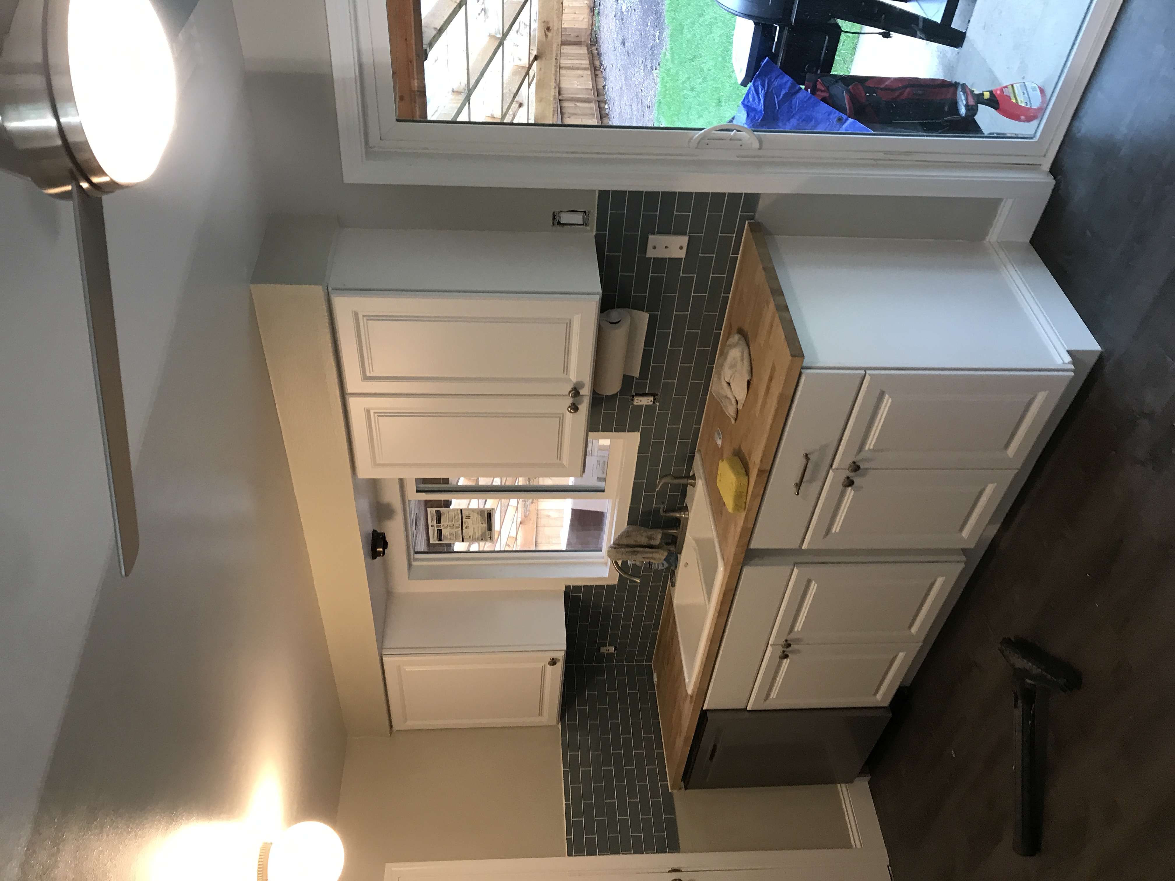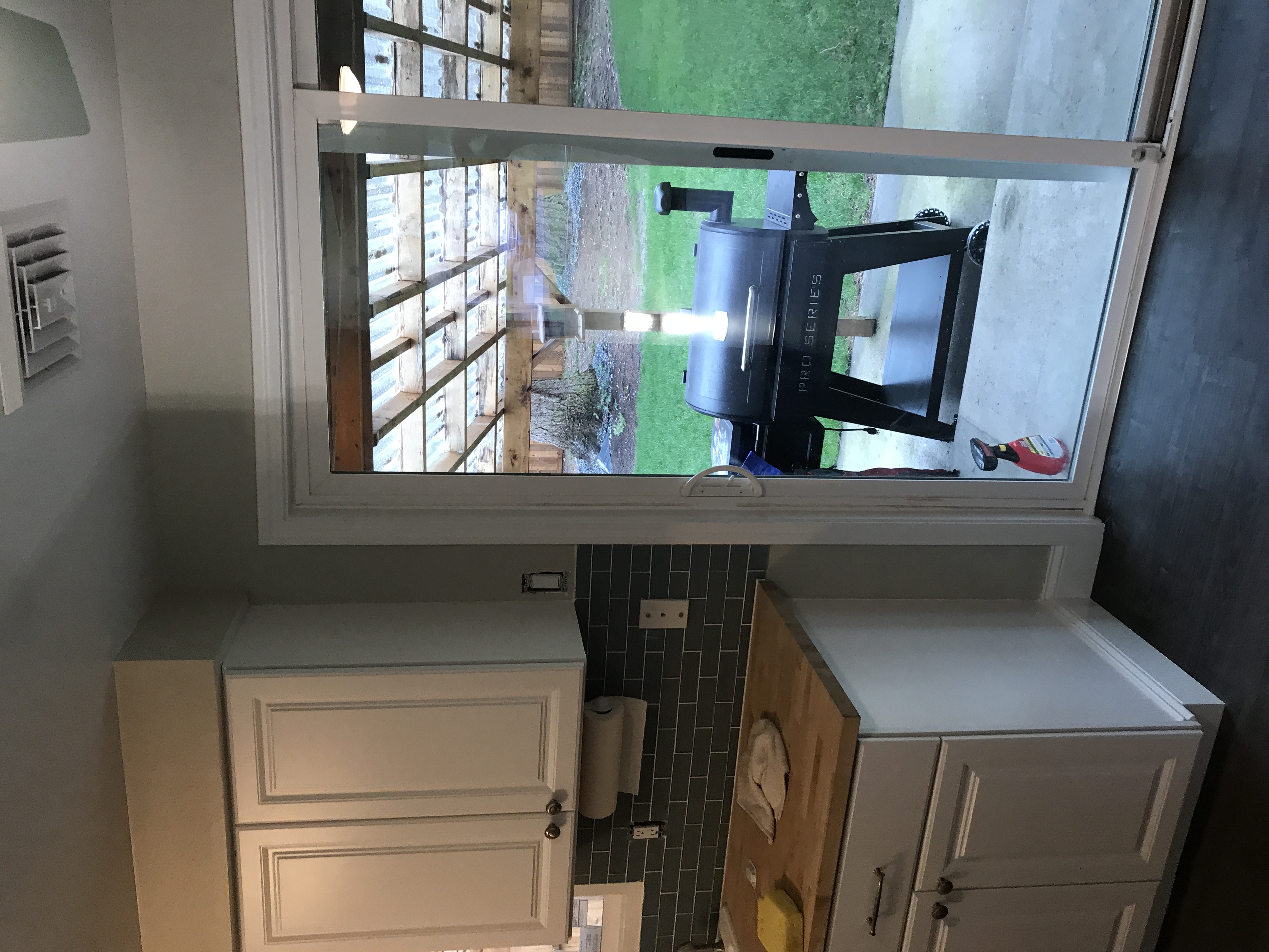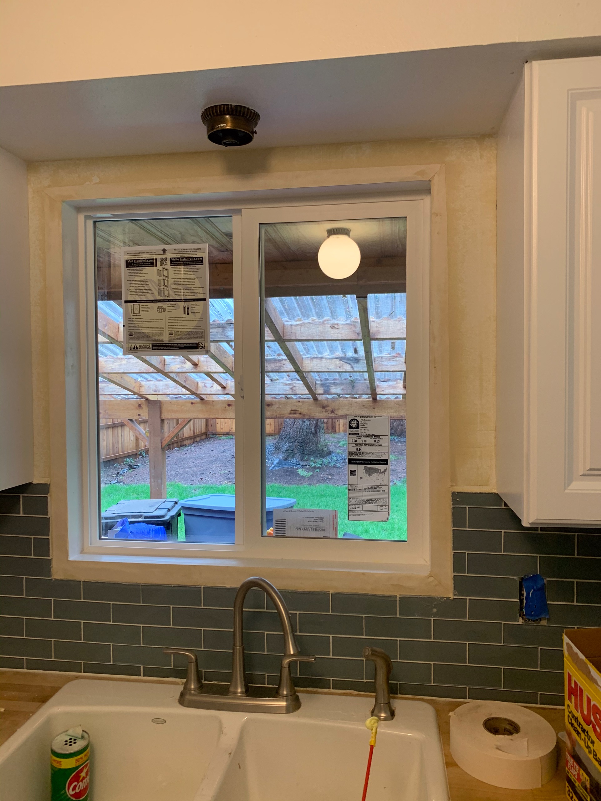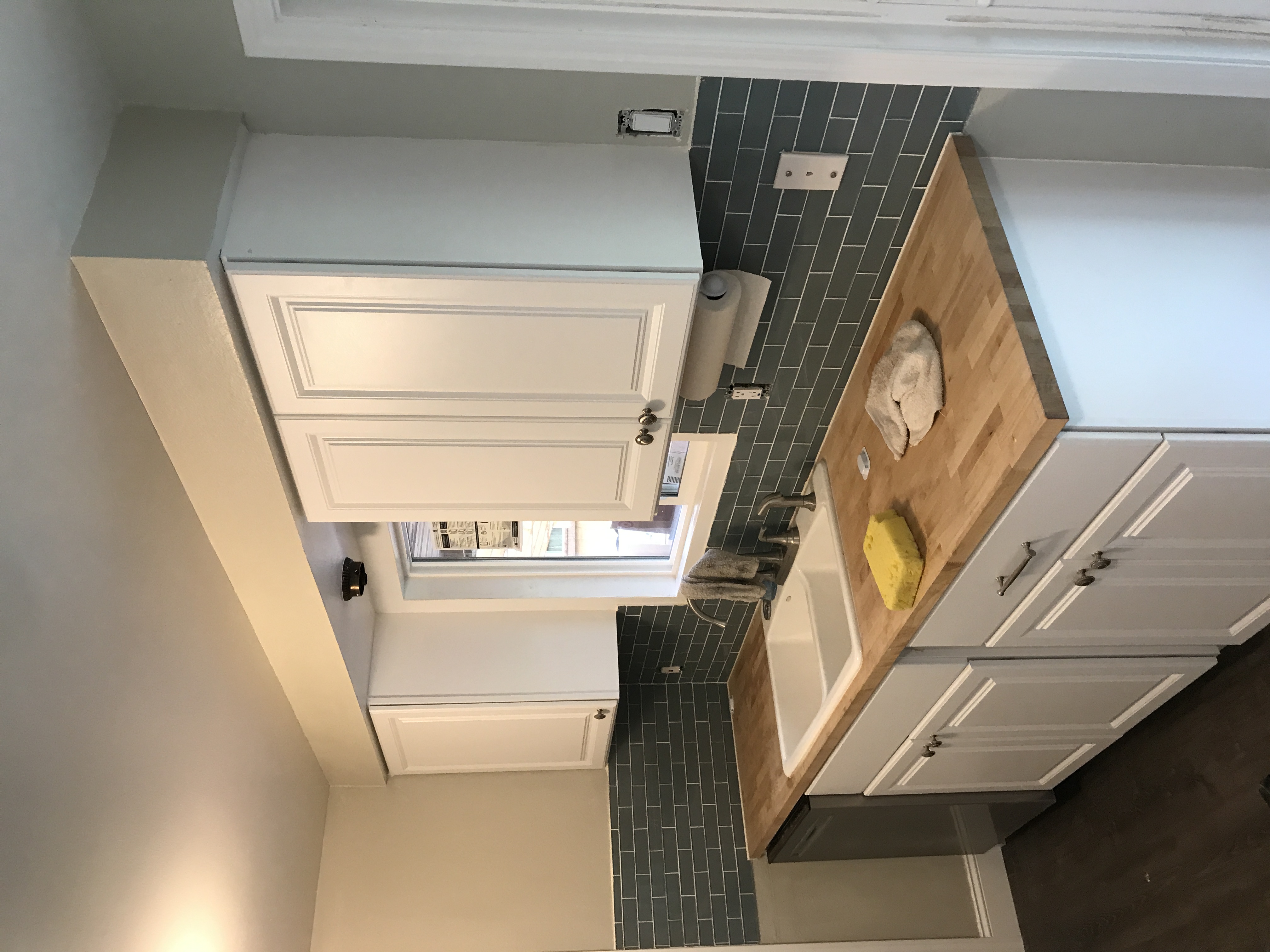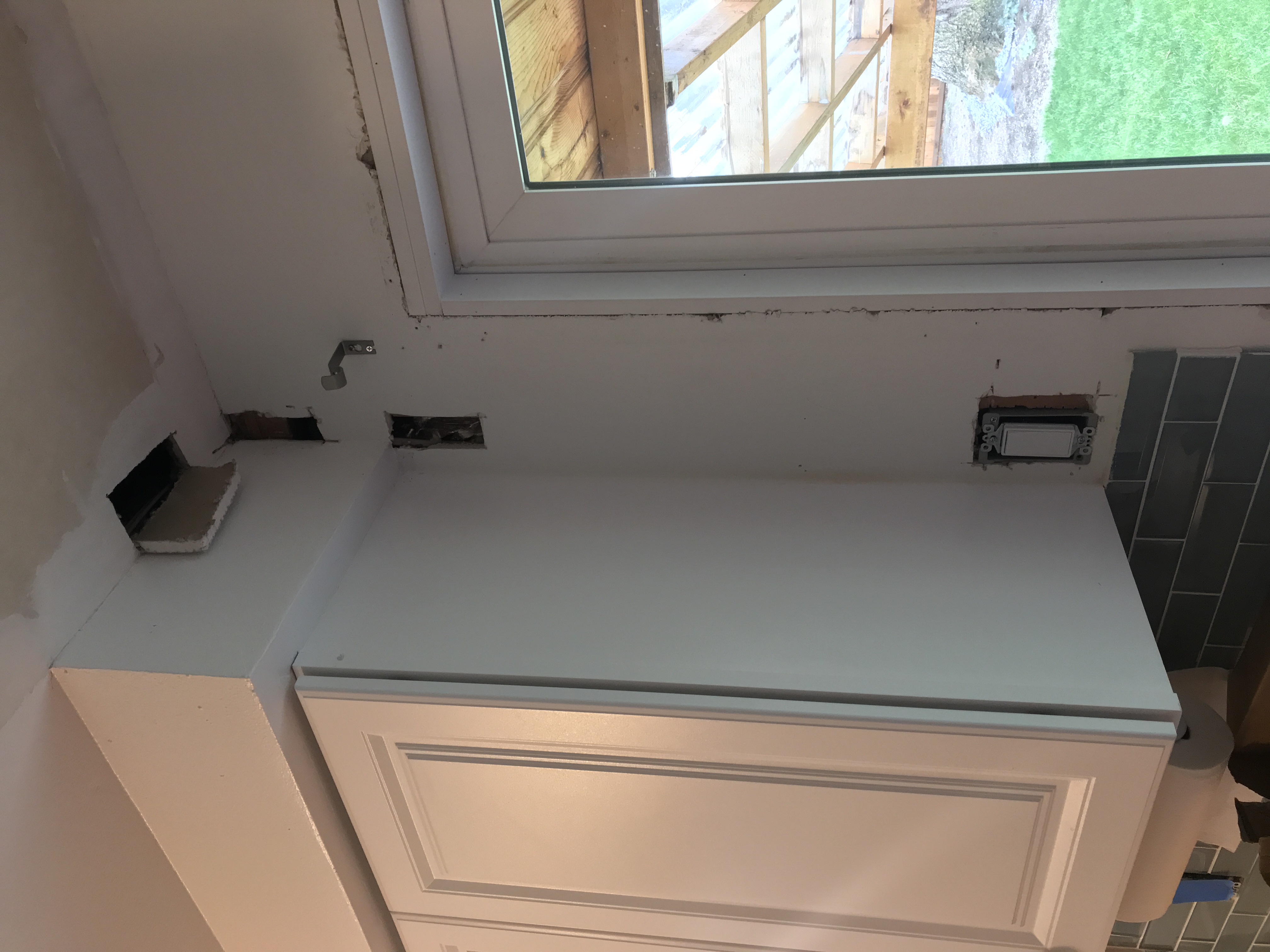 New kitchen Window Installed with inside sill trimmed out and drywall taped and drywall mud finished tight to the window