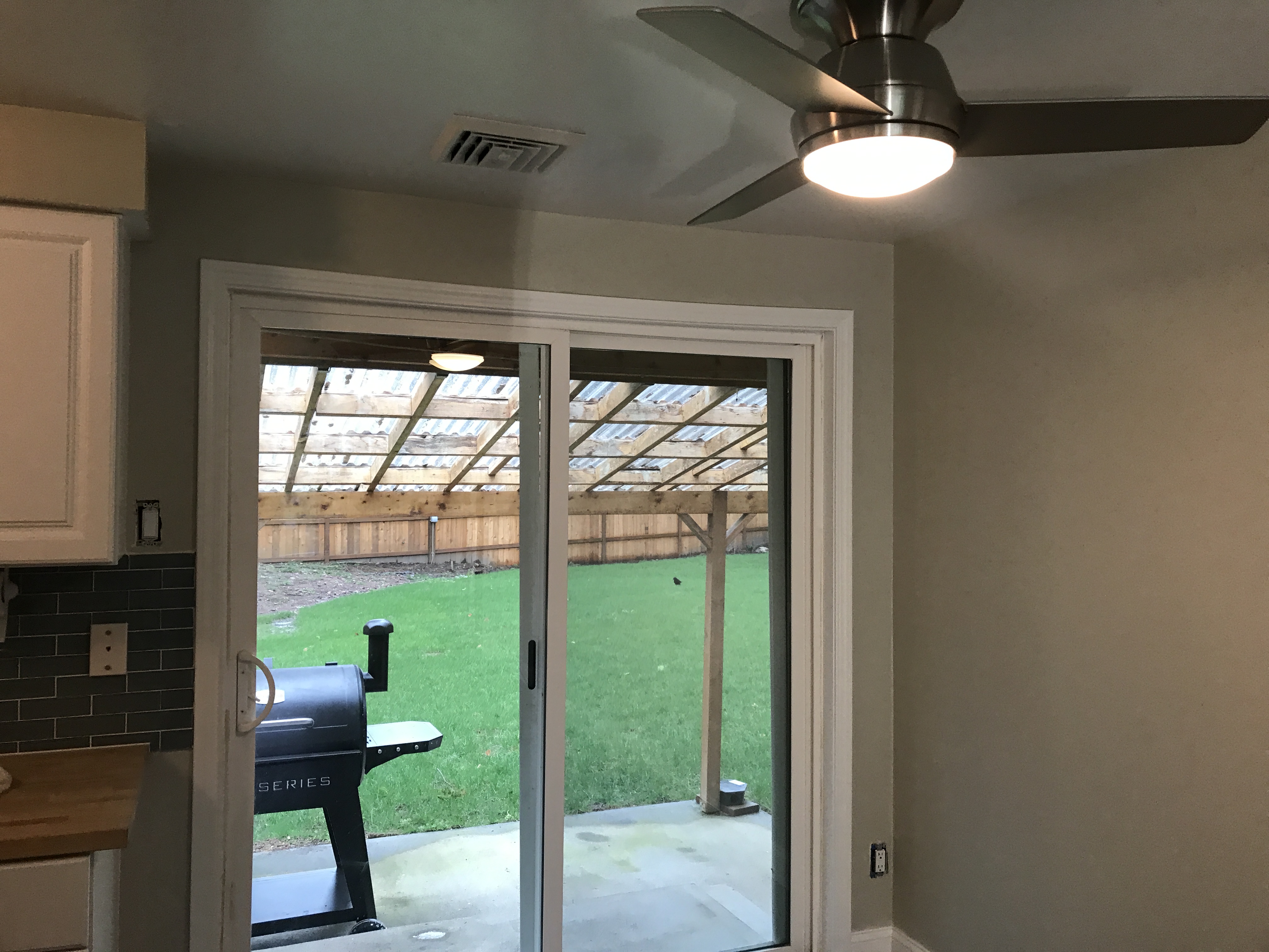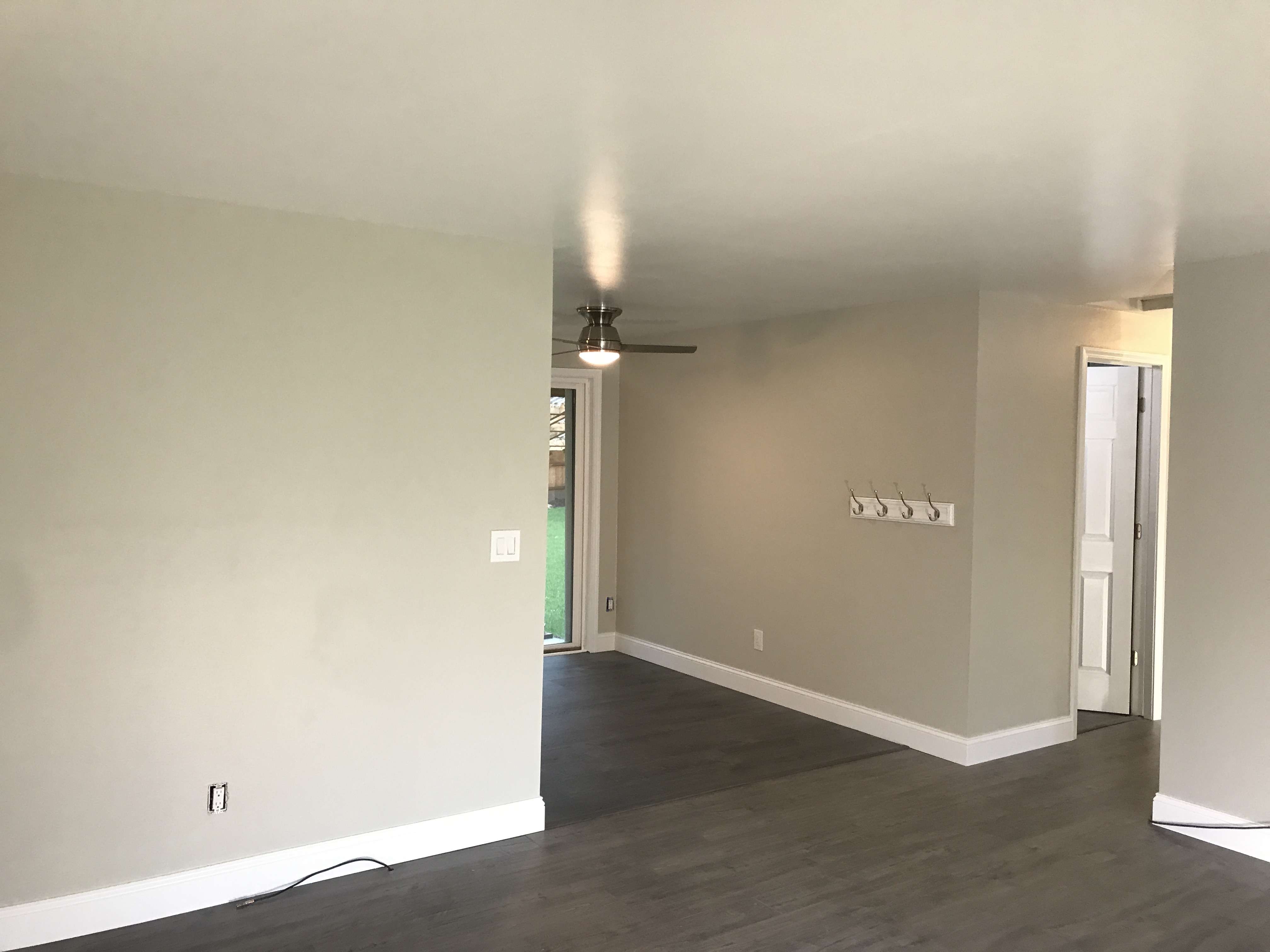 Installed new ceiling fans and replaced in living room and kitchen with the old light switches & outlets in entire home updated