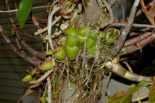 In this rainforest there are small ferns that grow on the slopes. They surround the hillsides with there bright green texture. When walking on a trail through the rainforest, there lies many rattan vines along with small yellow orchid. Along the trees going upwards are small epiphytes. Many animals including orangutans depend upon these figs for food. There are over 12,000 species of orchids all around the rainforest.