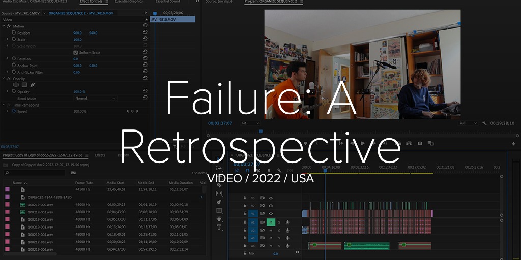 Overall this is a contemplation of what it means to fail. What is failure as artist and when do we truly fail? It was such a great experience to be able to collect this unique perspectives and I felt such legitimate joy in finding overlap across our three distinct perspectives and experiences.