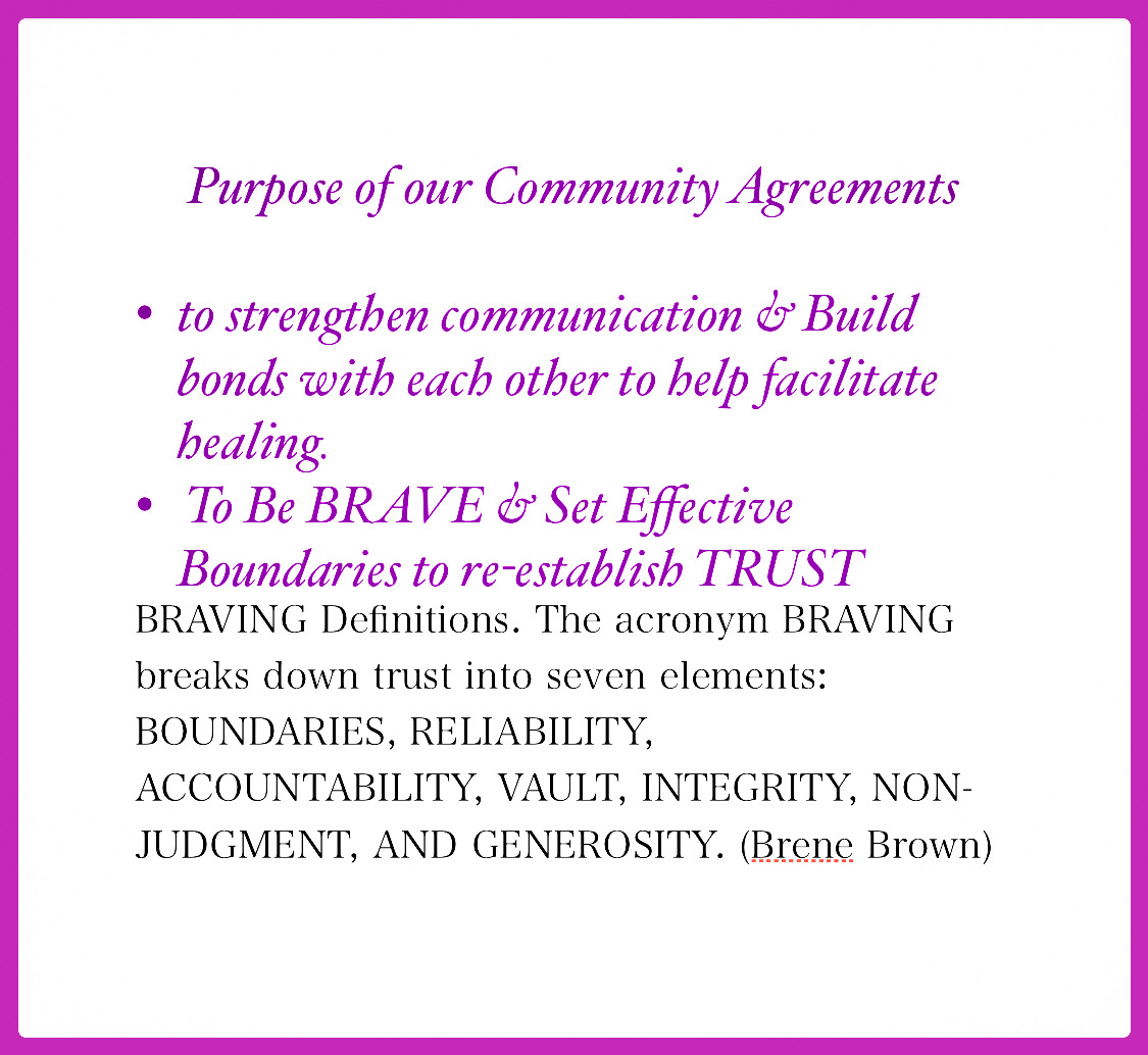 If you would like to add to our Community Agreements please email Tracey at