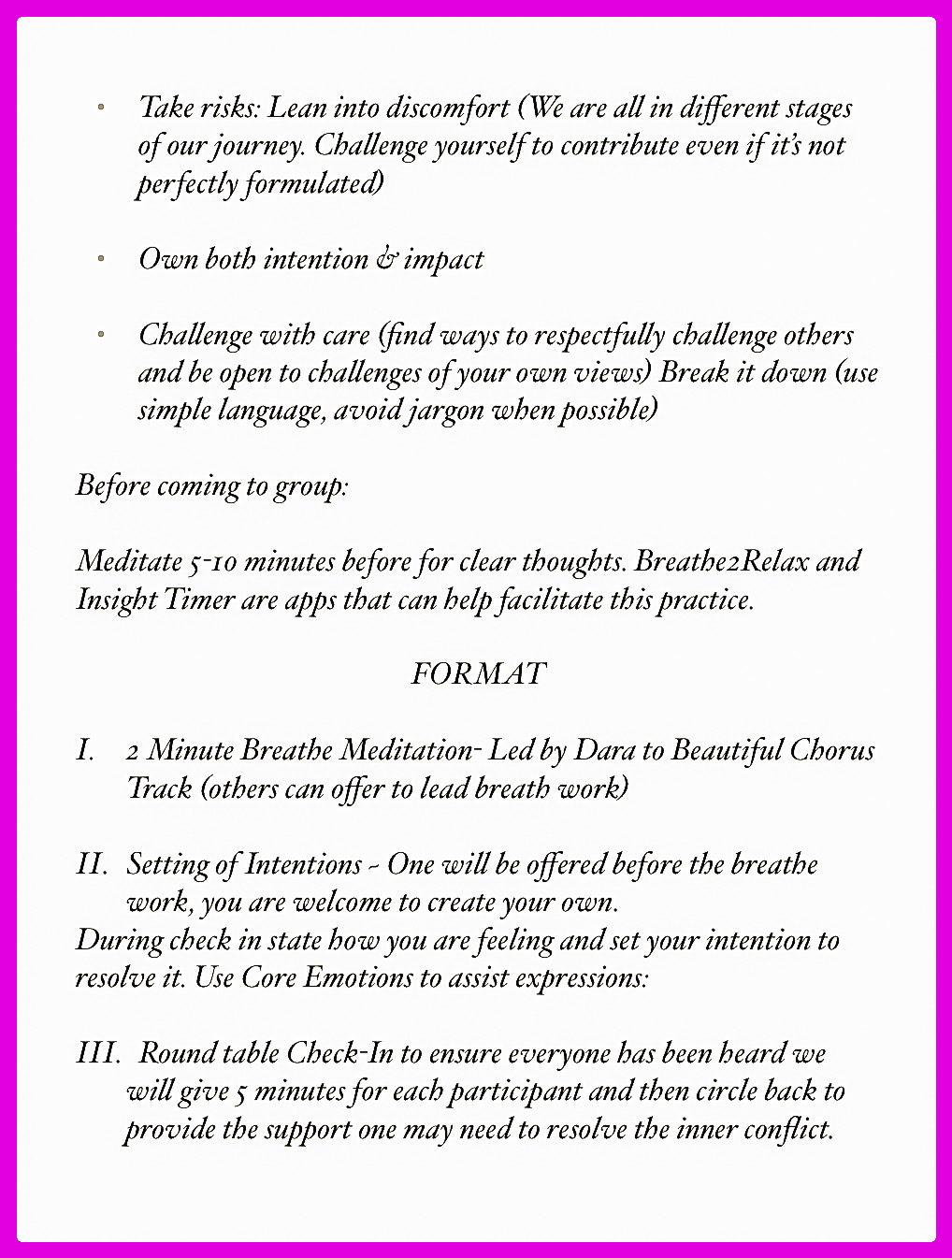 Setting of Intentions ~ One will be offered before the breathe work, you are welcome to create your own.