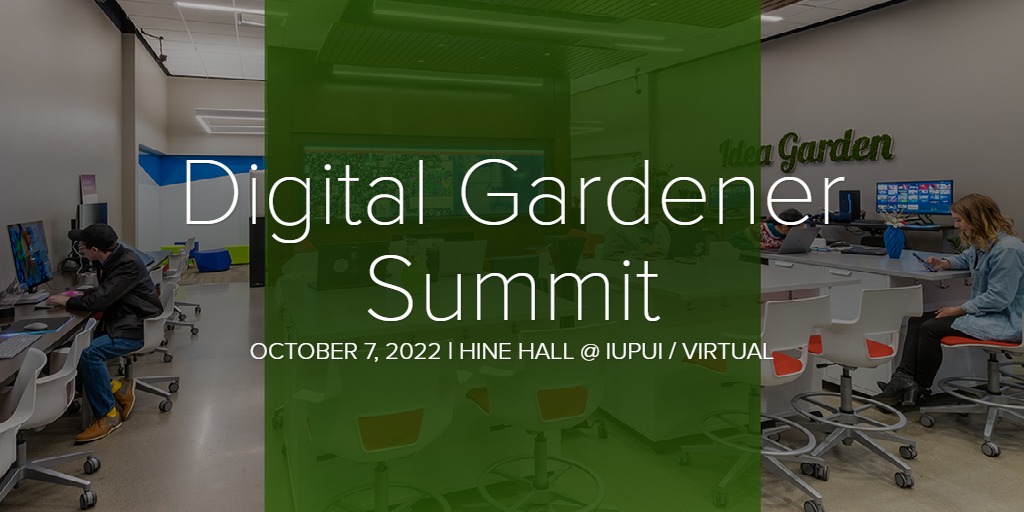 The 2nd annual Digital Gardener Summit brought together individuals from across IU and beyond to engage in conversations around supporting student success through digital literacy, creativity, and the formation of essential 21st century skills. The event took place from 10 a.m. - 4 p.m. on Friday, October 7, 2022 at IUPUI's Hine Hall and virtually.
