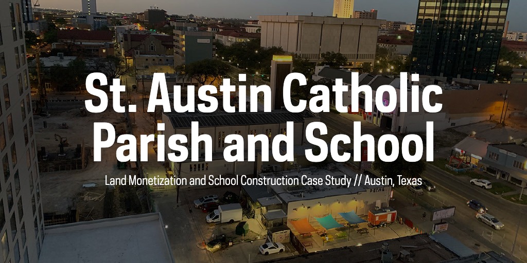 Engaged in a $5 million capital campaign to fund building renovations in early 2016, the community of St. Austin parish began to question the long-term sustainability of conducting periodic capital campaigns to fund maintenance projects for aging buildings that may actually need to be replaced. In June, the parish received approval from the Diocese of Austin to issue a request for proposals (RFP) for a commercial broker to represent the parish in exploring redevelopment opportunities on its land as a revenue source to fund new facilities.