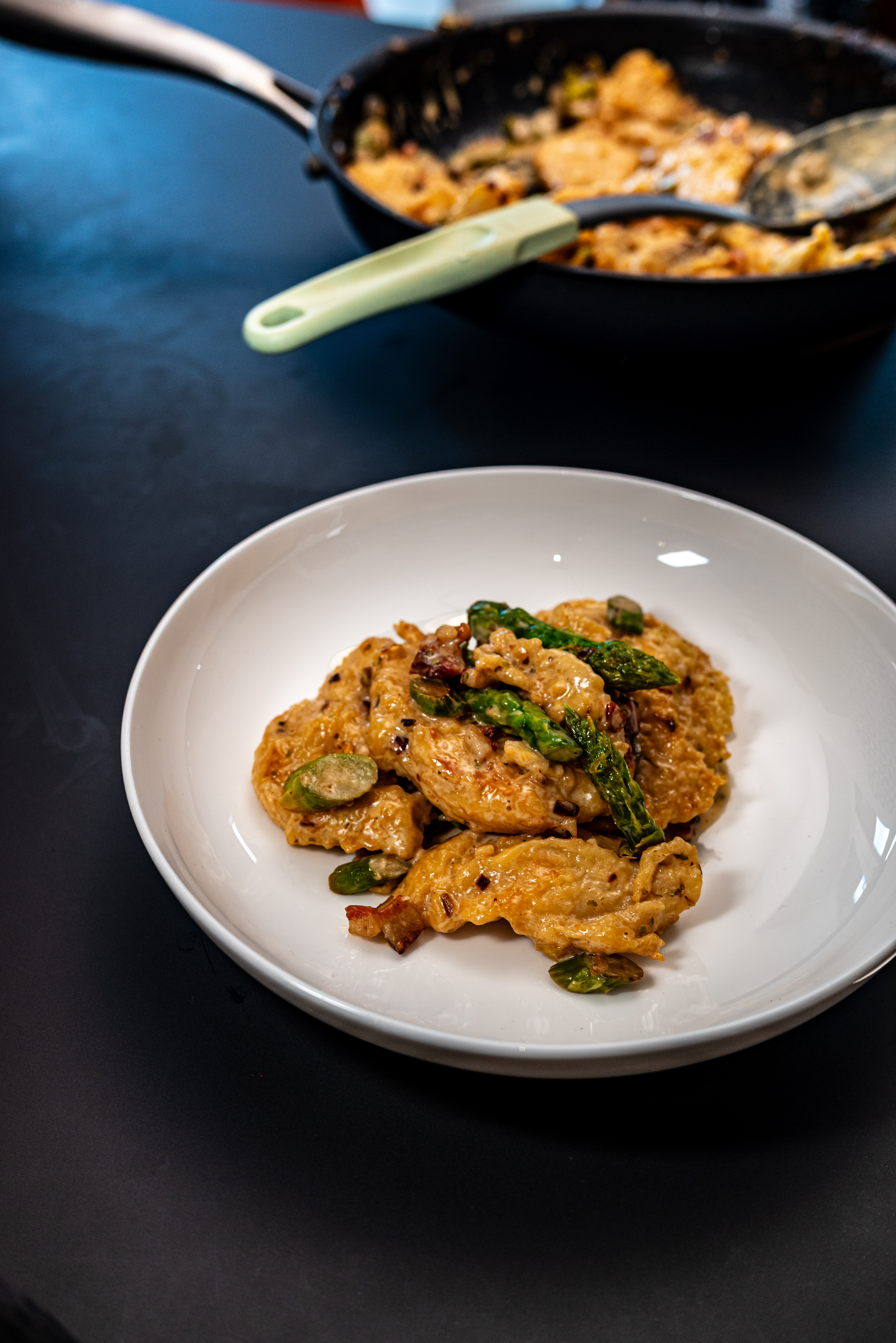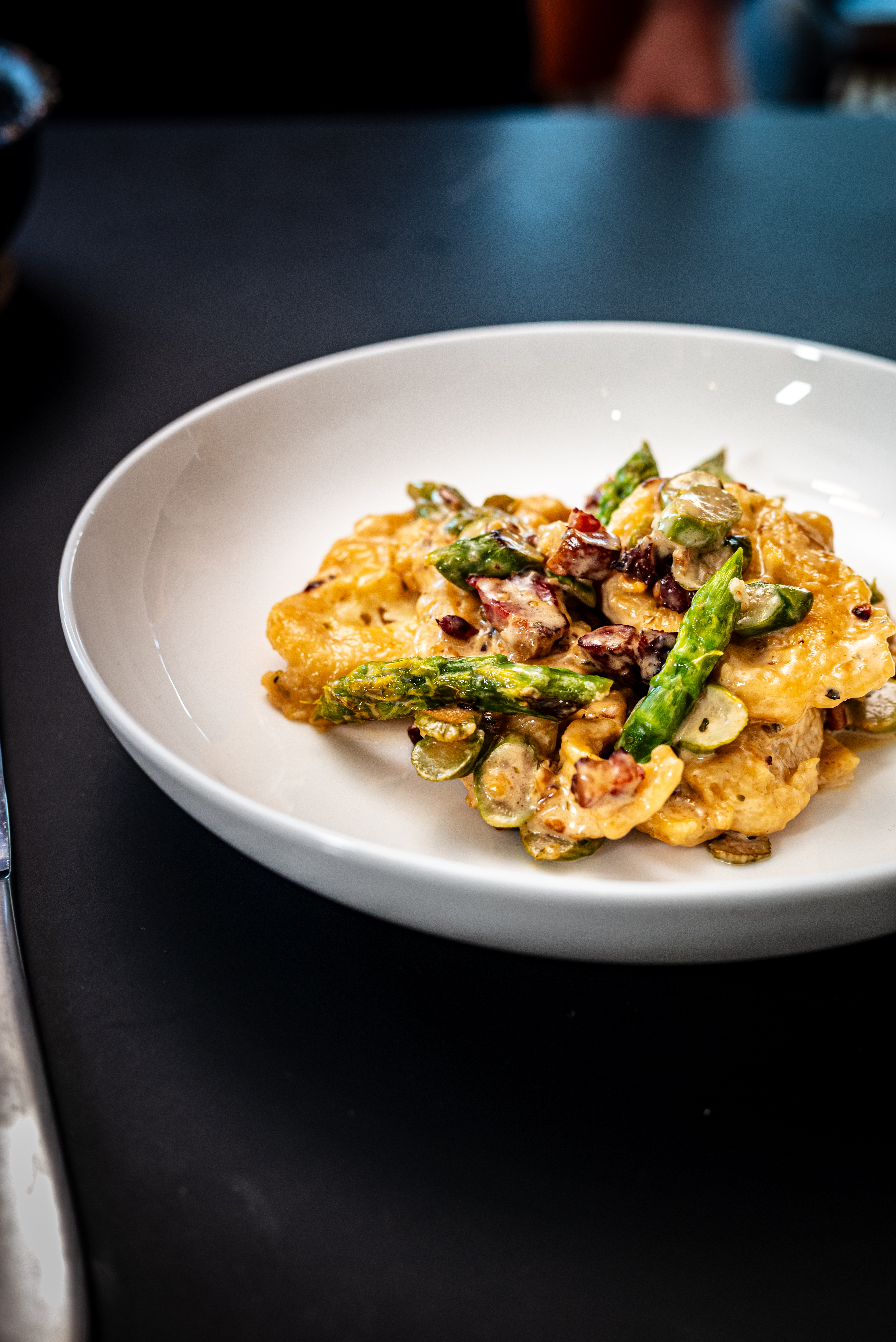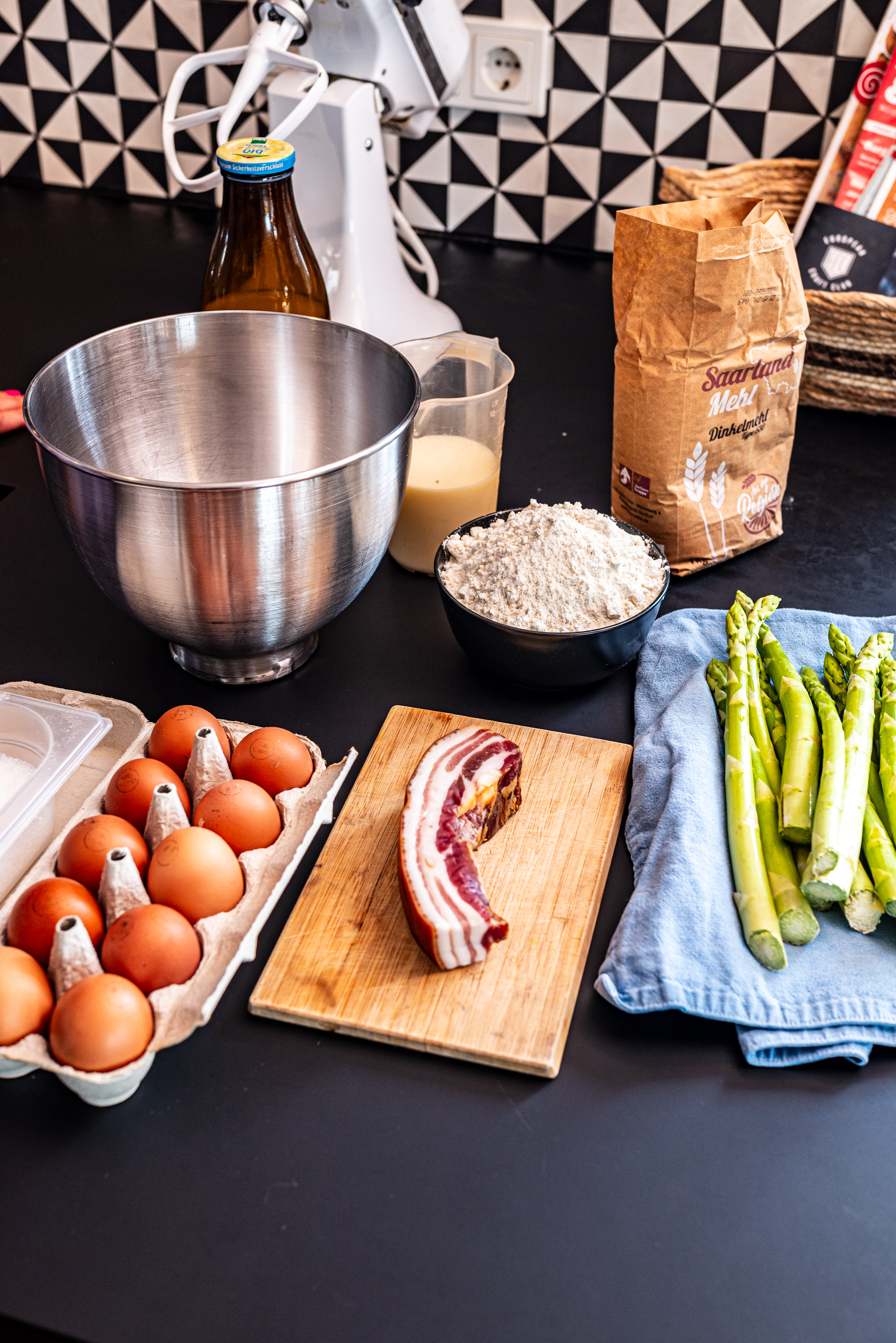 Mehlknepp sind echte saarländische Klassiker, die vielseitig in jeder Saison eine gute Figur machen können. Diesmal gibt es sie mit Spargel und Speck, perfekt für die schönen Frühlingstage.