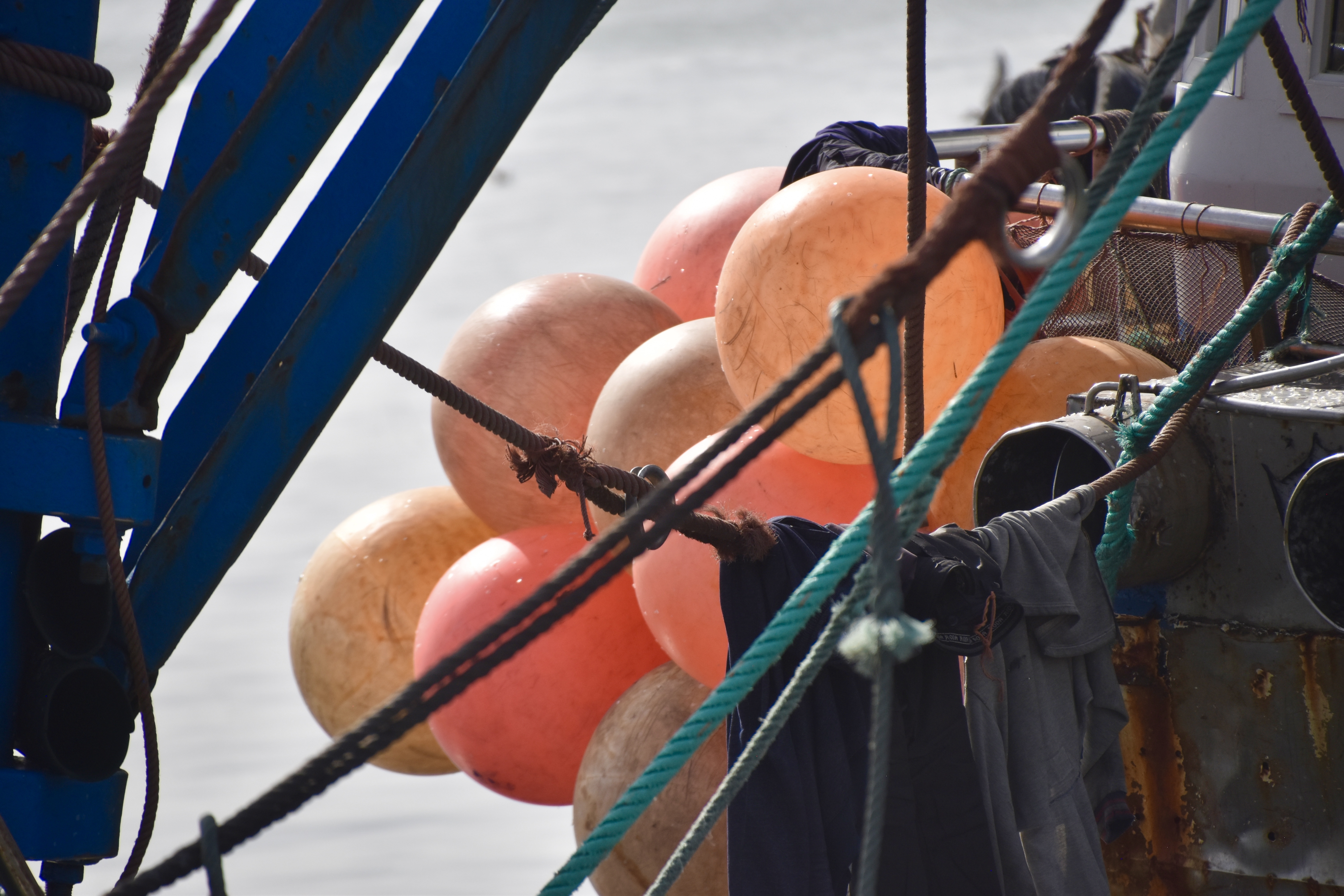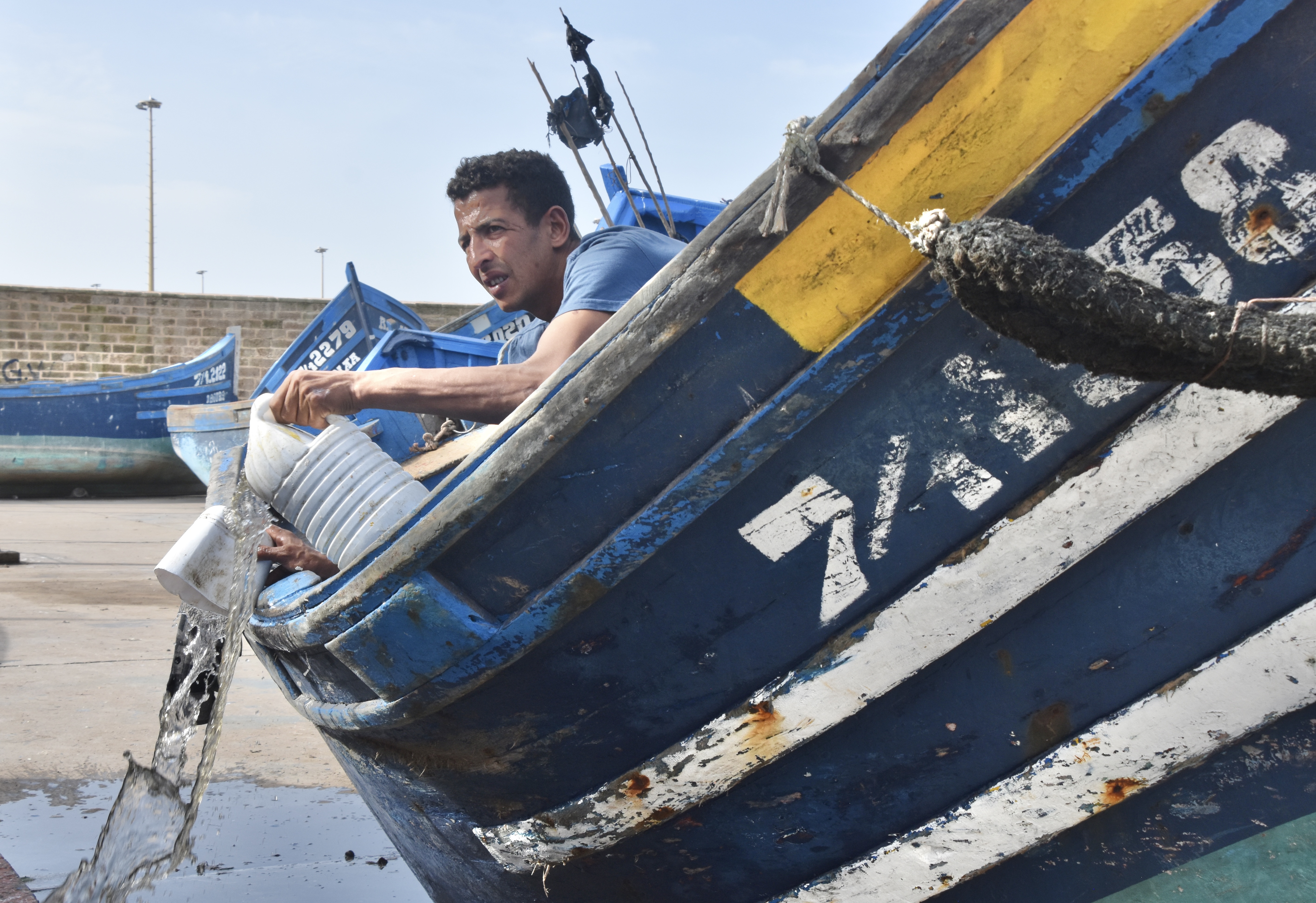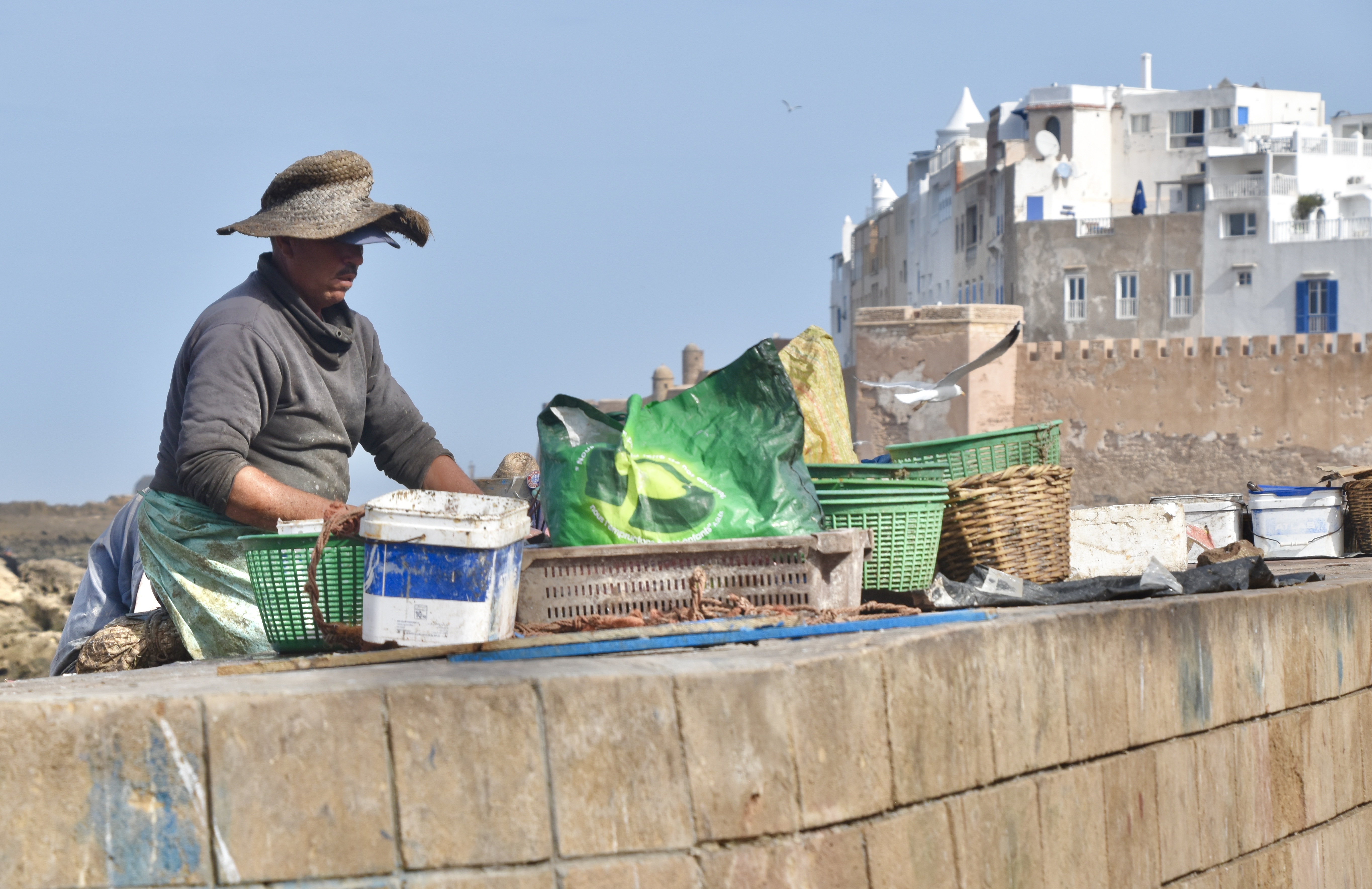 Promenade matinale dans le port et ses travaux divers : vider les poissons pour le plus grand bonheur des goélands et des chats, vider les bateaux pour le malheur de peintres amateurs obligés de fuir. Mais aussi préparer les filets pour la pêche suivante.