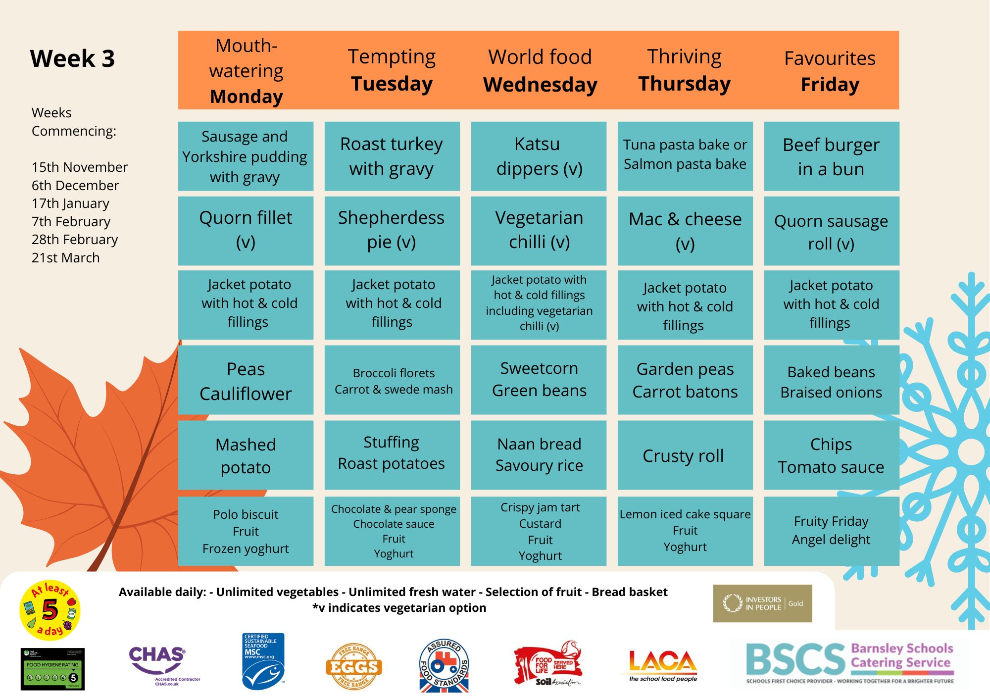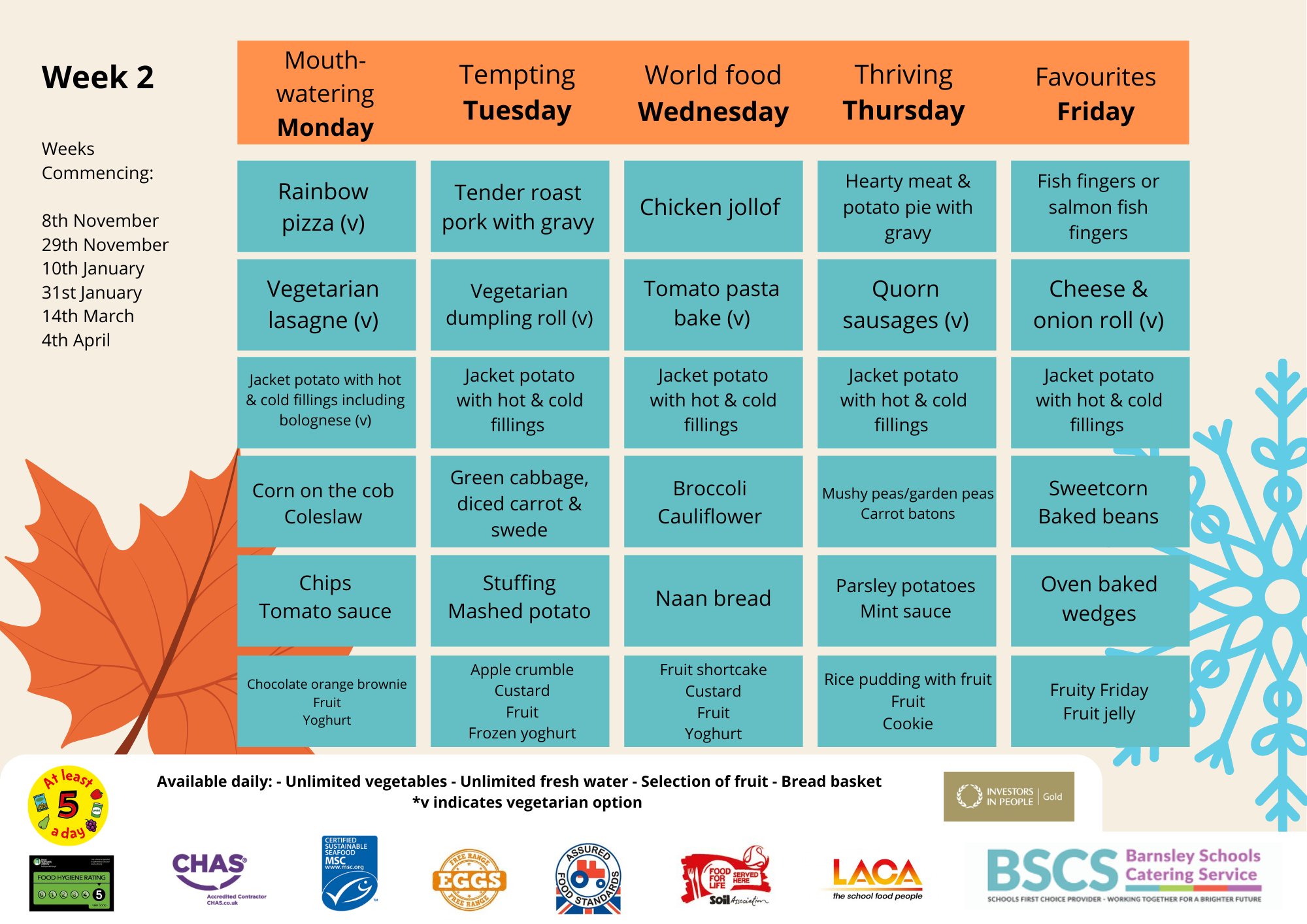 New school meals menu