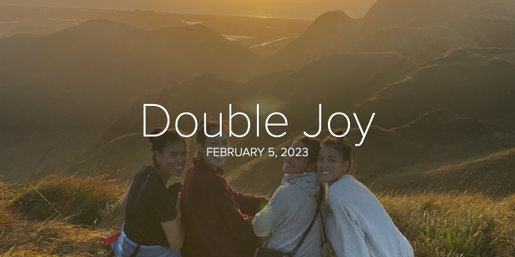 We saw it, we heard it, and now we’re telling you so you can experience it along with us, this experience of communion with the Father and his Son, Jesus Christ. Our motive for writing is simply this: We want you to enjoy this, too. Your joy will double our joy! -1 John 1:3 (MSG)