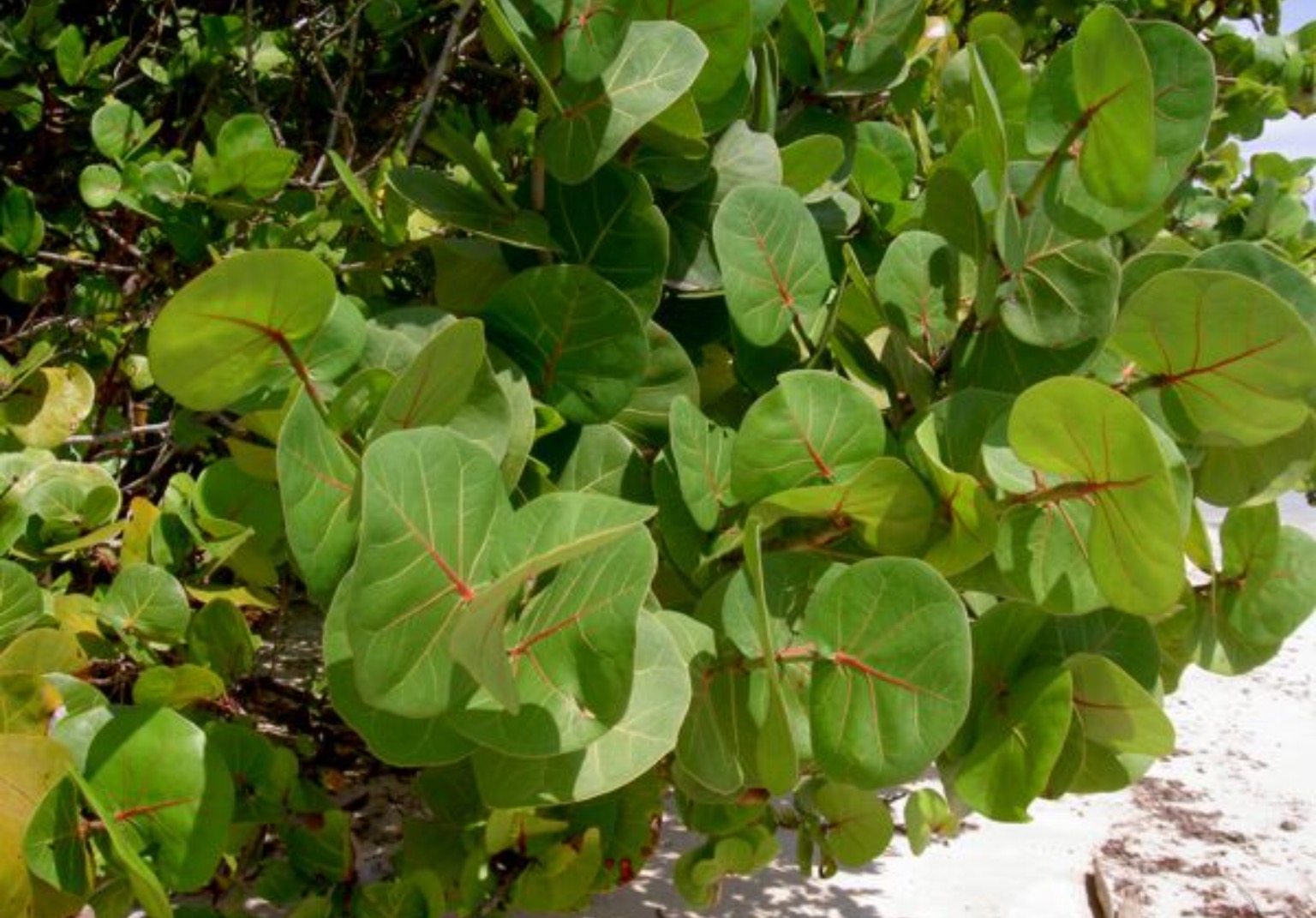 La uva de playa es originario de América. Es una de las plantas sobresalientes en las playas arenosas y rocosas de la América tropical. Este arbol crece muy alto. Tiene el tronco torcido con muchas ramas de color rojiza.