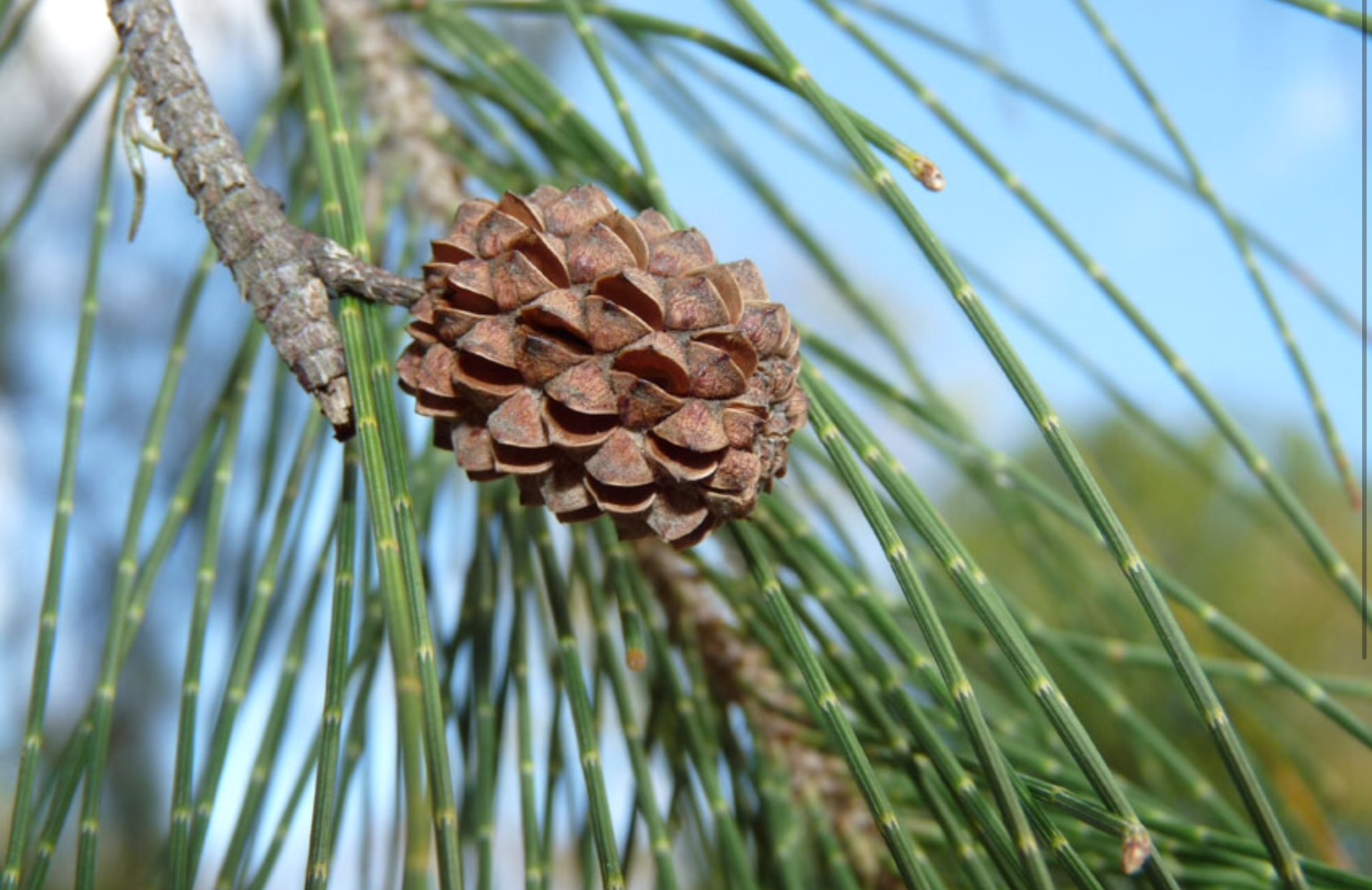 La casuarina conocido comunmente como Pino en Puerto Rico, no tiene ningun tipo de relacion con los pinos verdaderos. Le llamamos pino describiendo las ramitas verdes como alambres y su fruto en forma de bola o cono verrugoso semejante a los de los verdaderos pinos.