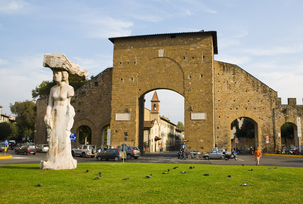 У подножья холма, крохотный клочок города до сих пор окружен средневековой стеной с крепостными воротами Святого Миниата на юге, и Святого Николая - на востоке. И если от первых ворот остался лишь образ, то ворота Святого Николая — это тридцатиметровая сторожевая башня, когда-то охранявшая подступы к городу со стороны гор. От нее начинается улочка Сан Николò — излюбленное место тусовки бомонда Флоренции. Всю ночь, за крохотными столиками, на табуретках и просто на бордюрах сидят, с неизменным бокалом вина в руке, артисты всех возрастов, направлений и специализаций. Студенты Академии Искусства, Консерватории, Школы Моды приходят сюда ощутить свою причастность к этому особому миру, пока состоявшиеся мастера, в неформальной обстановке, «ярко» (по итальянски) обсуждают с антикварами, фотографами и арт-галеристами свои новые озарения.