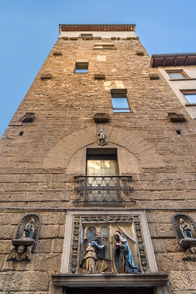 Сразу направо от Понте Веккио начинается улица Борго Сан Джакопо, названная как и стоящая на ней церковь Святого Якова над Арно. Сегодня это одна из трех православных церквей во Флоренции. Улочка знаменита антикварными лавками, где запросто можно приобрести какое-нибудь фамильное кольцо с «бородатой» историей. А можно и отужинать в мишленовском ресторане «Сан Джакопо», глядя на огни Старого Моста. Это место также известно своими уникальными средневековыми башнями, в которых, пренебрегая неудобствами, продолжают жить фанаты Первого Миллениума. Самые живописные башни были построены здесь семьями Бельфределли, Барбадори, Рамальянти и Марсили еще в XII веке. Это была та самая эпоха, когда богачи опасались не столько внешнего врага, сколько своего соседа.