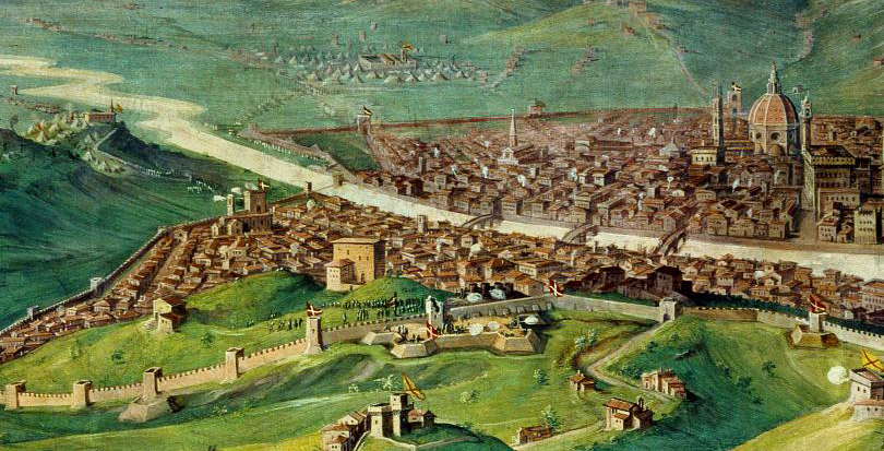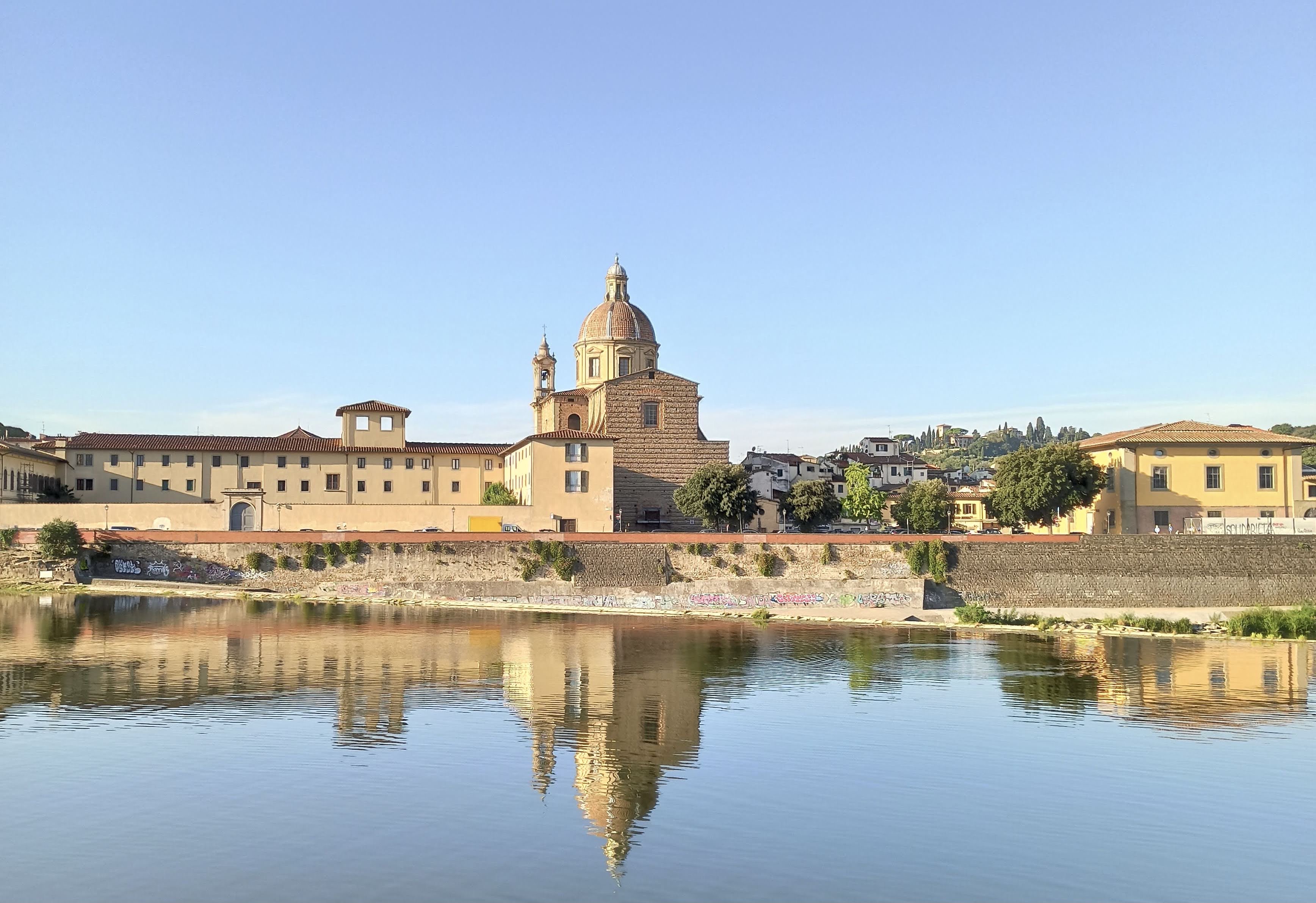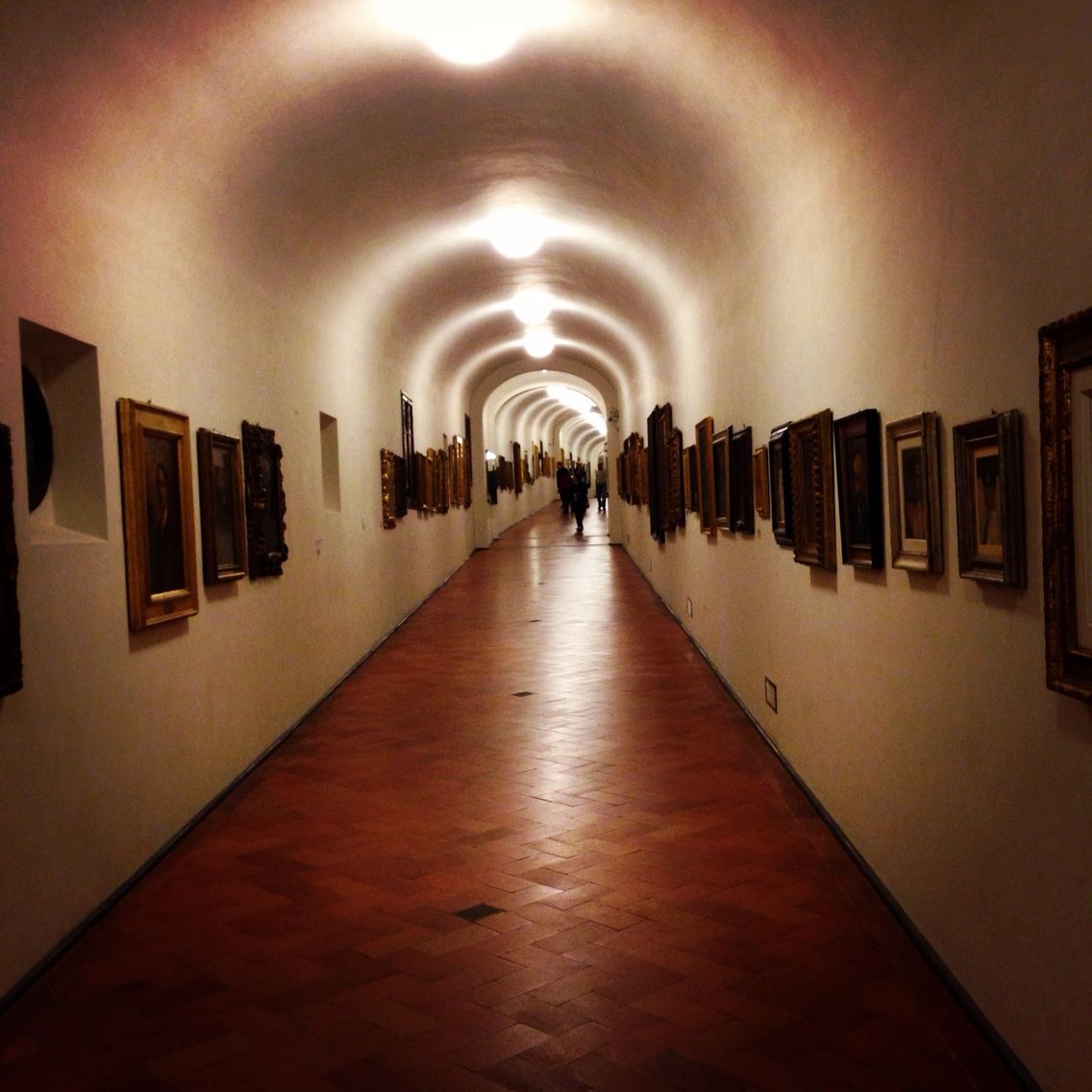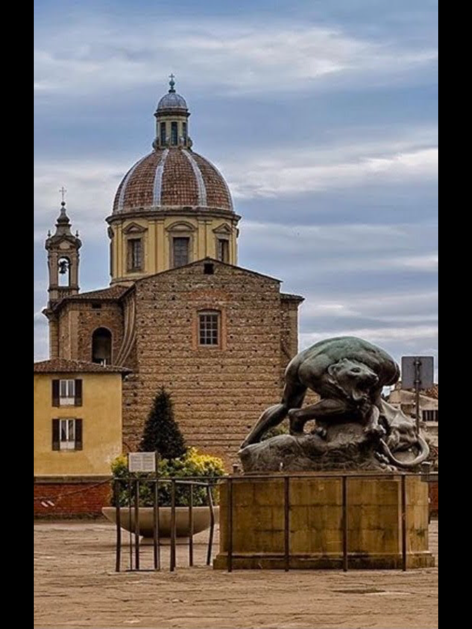 Перейдя по Старому Мосту на левый берег реки, мы сталкиваемся с выбором направления. Если решим идти прямо, сразу попадем на маленькую площадь Санта Феличита, с одноименной церковью на ней. Коридор Вазари примыкает к фасаду церкви поверх ее портиков. Разделяющая их стена была заменена на кованую решетку. Таким образом, проходящие мимо, герцоги могли присутствовать на мессе, никем при этом незамеченные. Но проповедь инкогнито слушали не только Медичи.