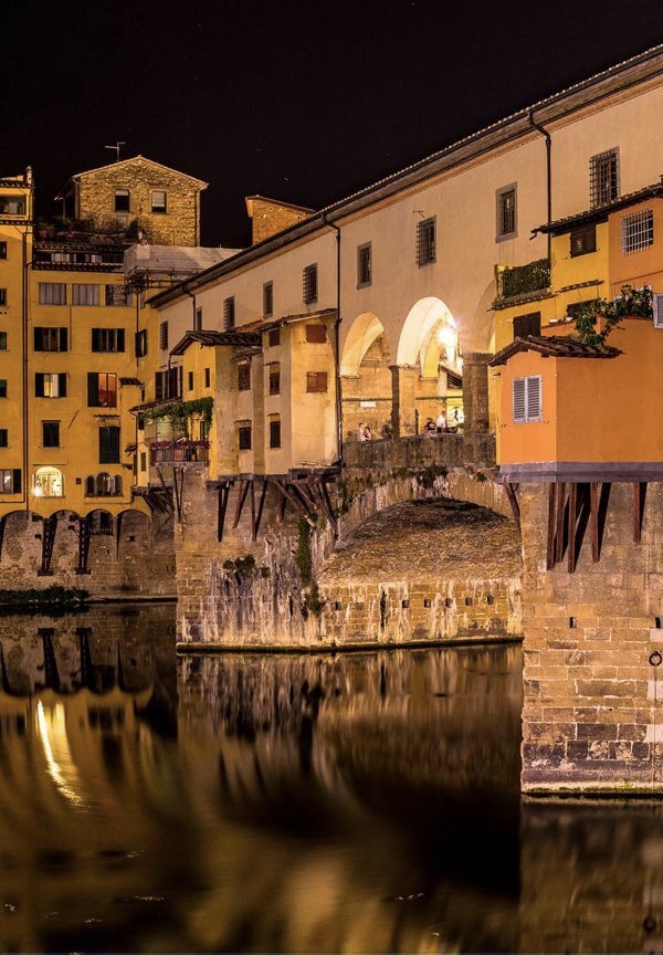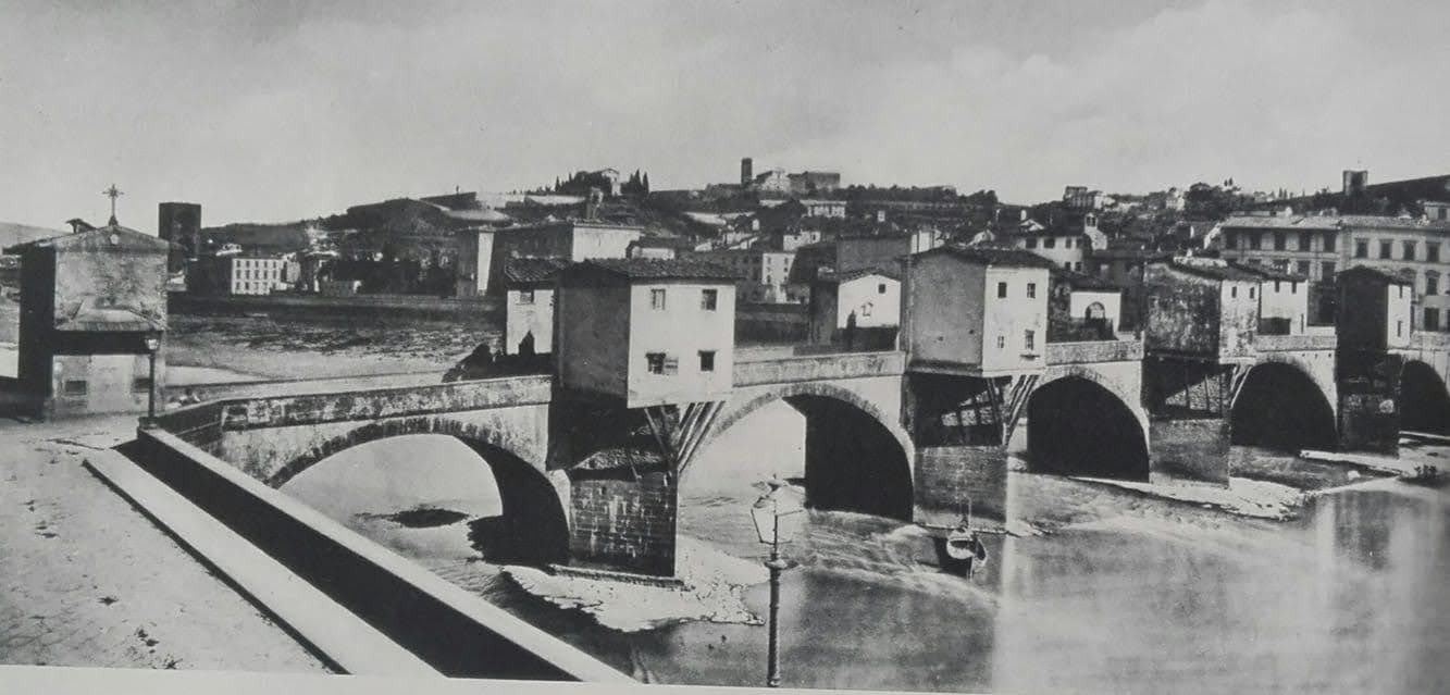 Река делит старый город на две неравные части: три района на правобережье, и один на левом берегу. Он называется Заречье (Oltrarno). Эти две части города соединены 9 мостами. Мост в долине существовал в античные времена, ещё до основания города. Через него проходила римская дорога Кассия. Катастрофическое наводнение 1333 года разрушило все мосты, включая и самый старый. На его месте, мясники города построили новый, поселившись сверху. Мясные лавки составили единое целое с мостом. Открывались они, как сундуки, к центру моста, а в окошки, нависавшие над водой, выбрасывались в реку отходы.