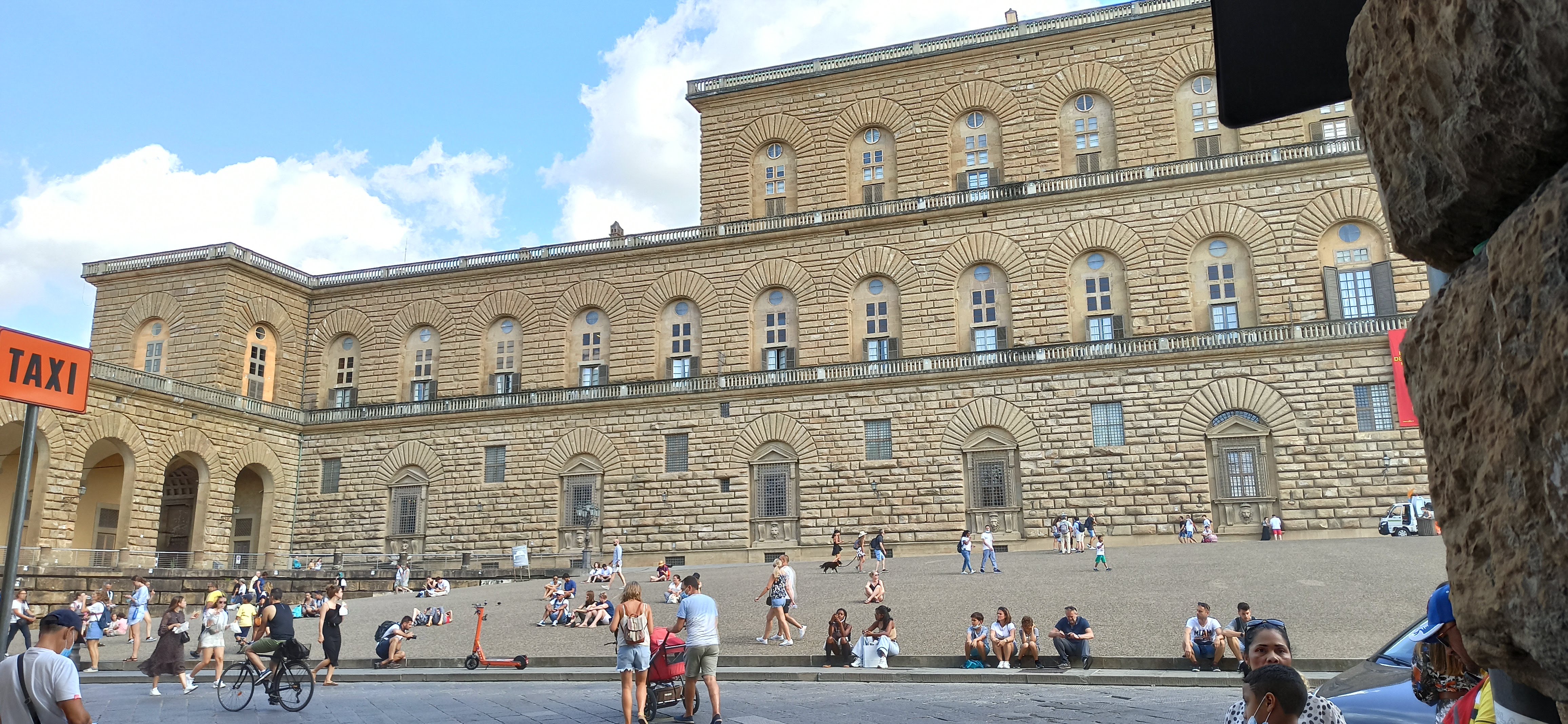 Света, Валерий и Машенька подошли к площади Питти и остановились, рассматривая открывшуюся панораму. Света, пораженная величием увиденного; Валерий, ища глазами билетную кассу; Машенька, заинтересованная лежащими на площади туристами.