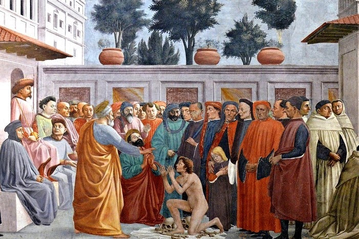 В это время в монастыре, при церкви, жил юный монашек Филиппо Липпи. Загипнотизированный «чудодейством» Мазаччо, Фра Филиппо уговорил настоятеля определить его в помощники художнику. Действительно, у Мазаччо был божий дар реалистично отображать трехмерное пространство на плоской стене. А у 18 летнего монаха был дар это увидеть и перенять. Именно с этих двоих и начинается эпоха Ренессанса в живописи. Именно сын Фра Филиппо, Филиппино Липпи завершил фрески в Капелле Бранкаччи.