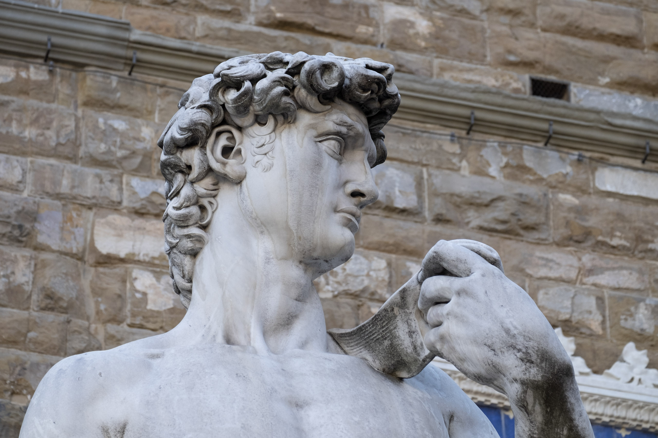 In an adjacent alcove to the square stood a battalion of statues, all seemingly presided over by a full size replica of Michelangelo’s David.
