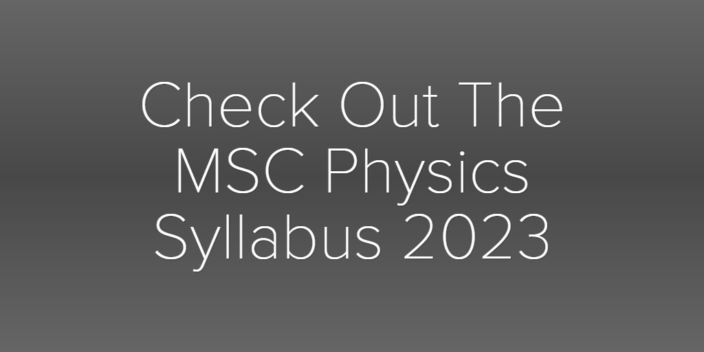 Check Out The MSC Physics Syllabus 2023