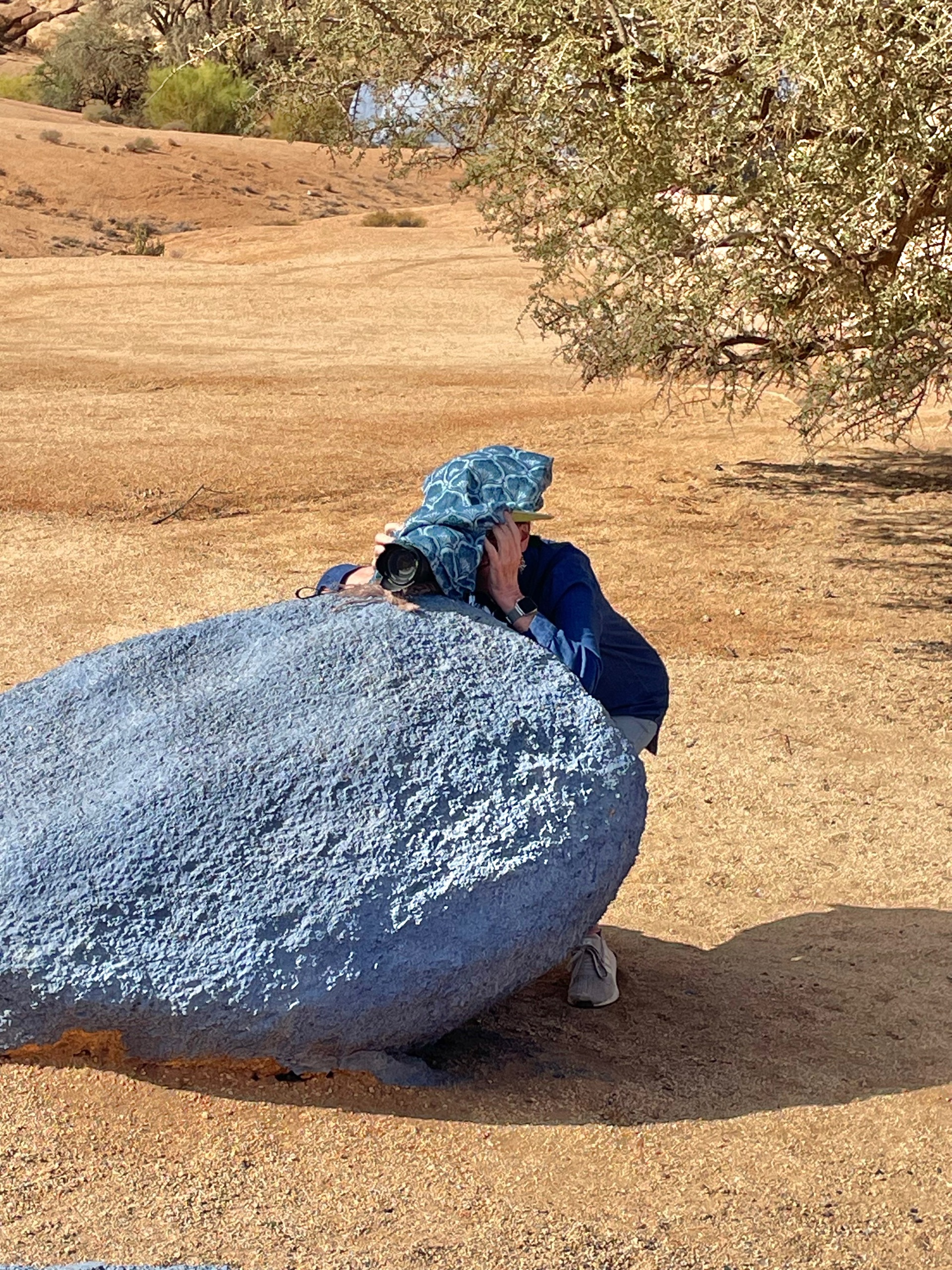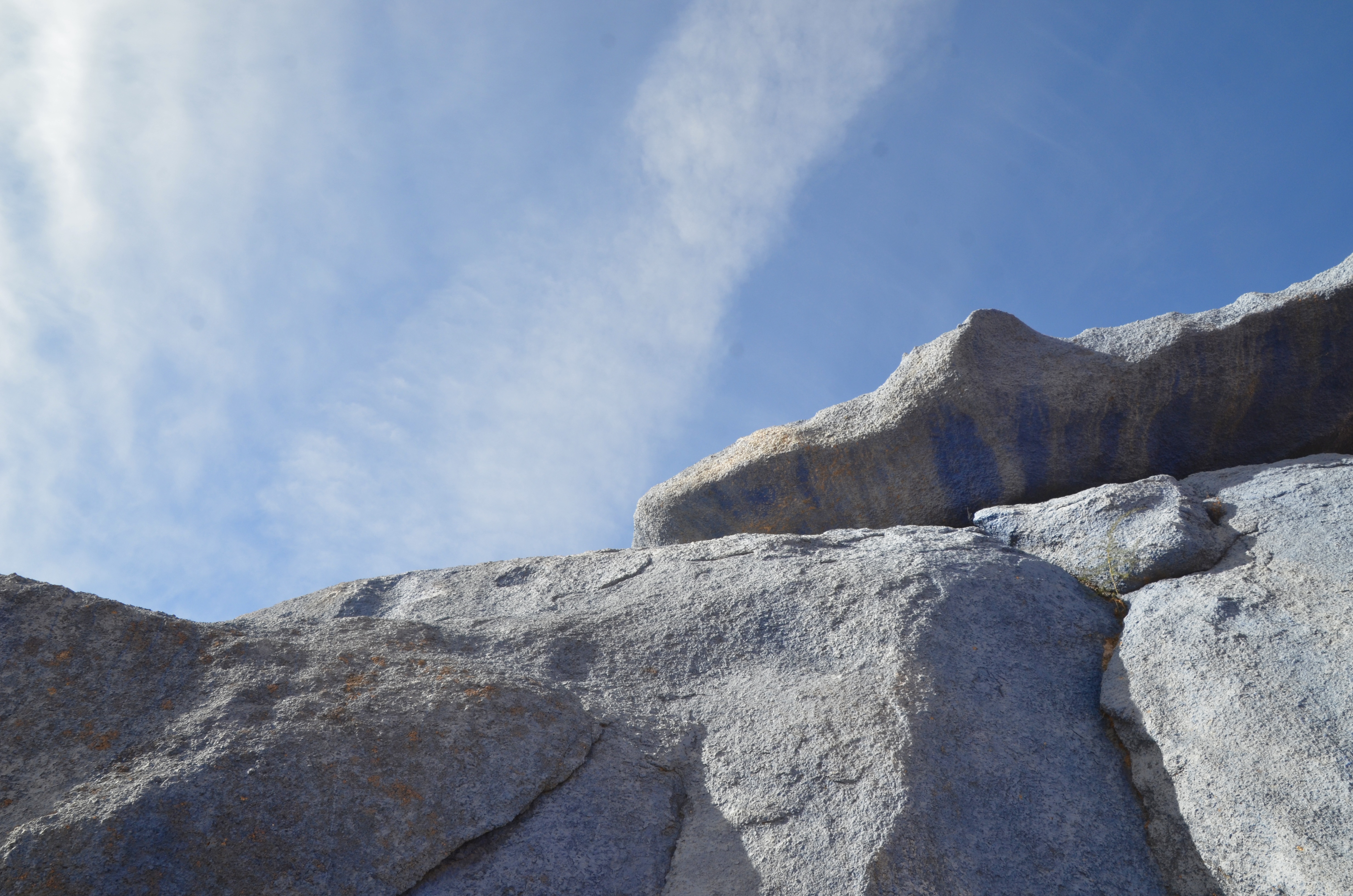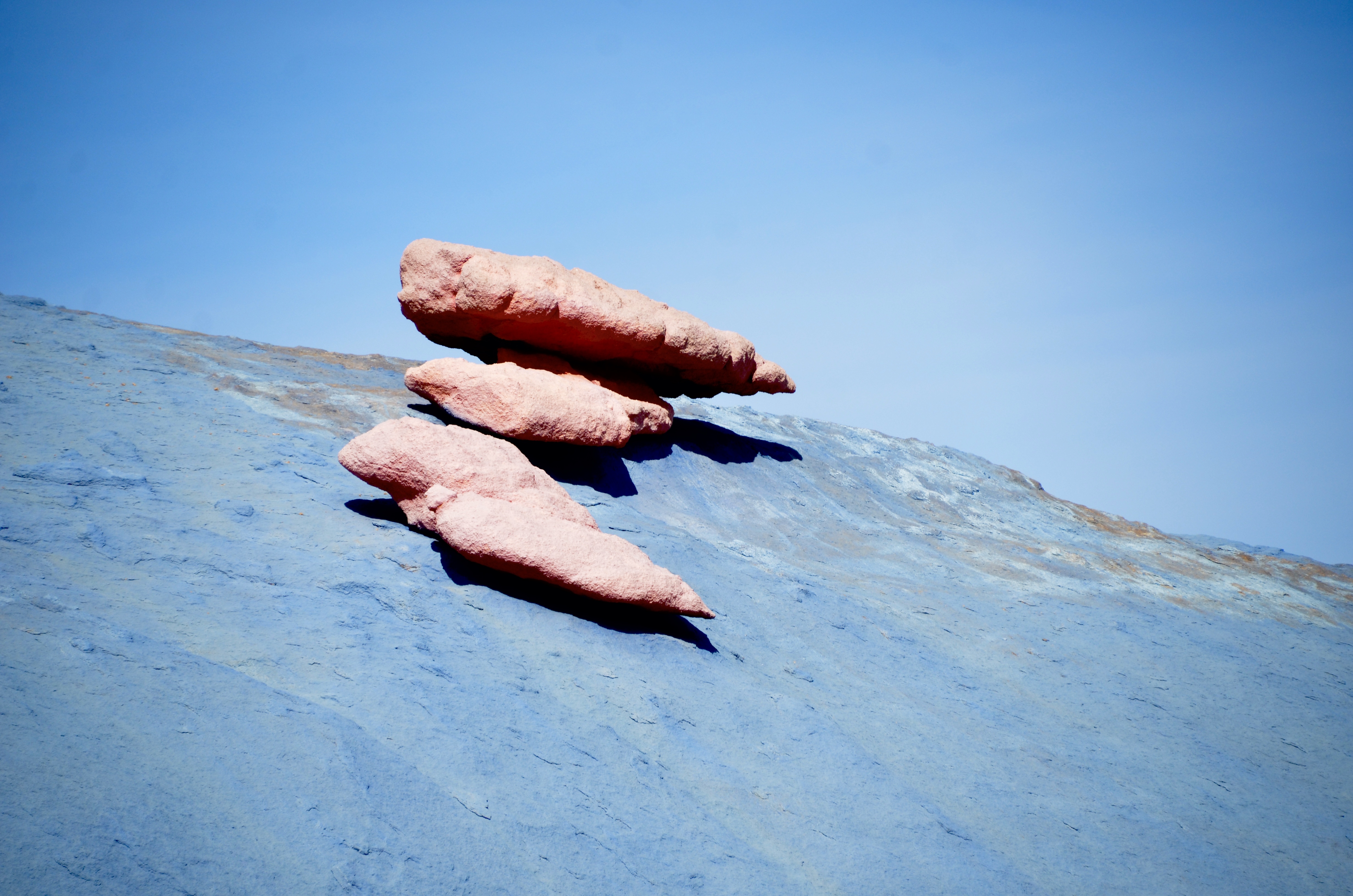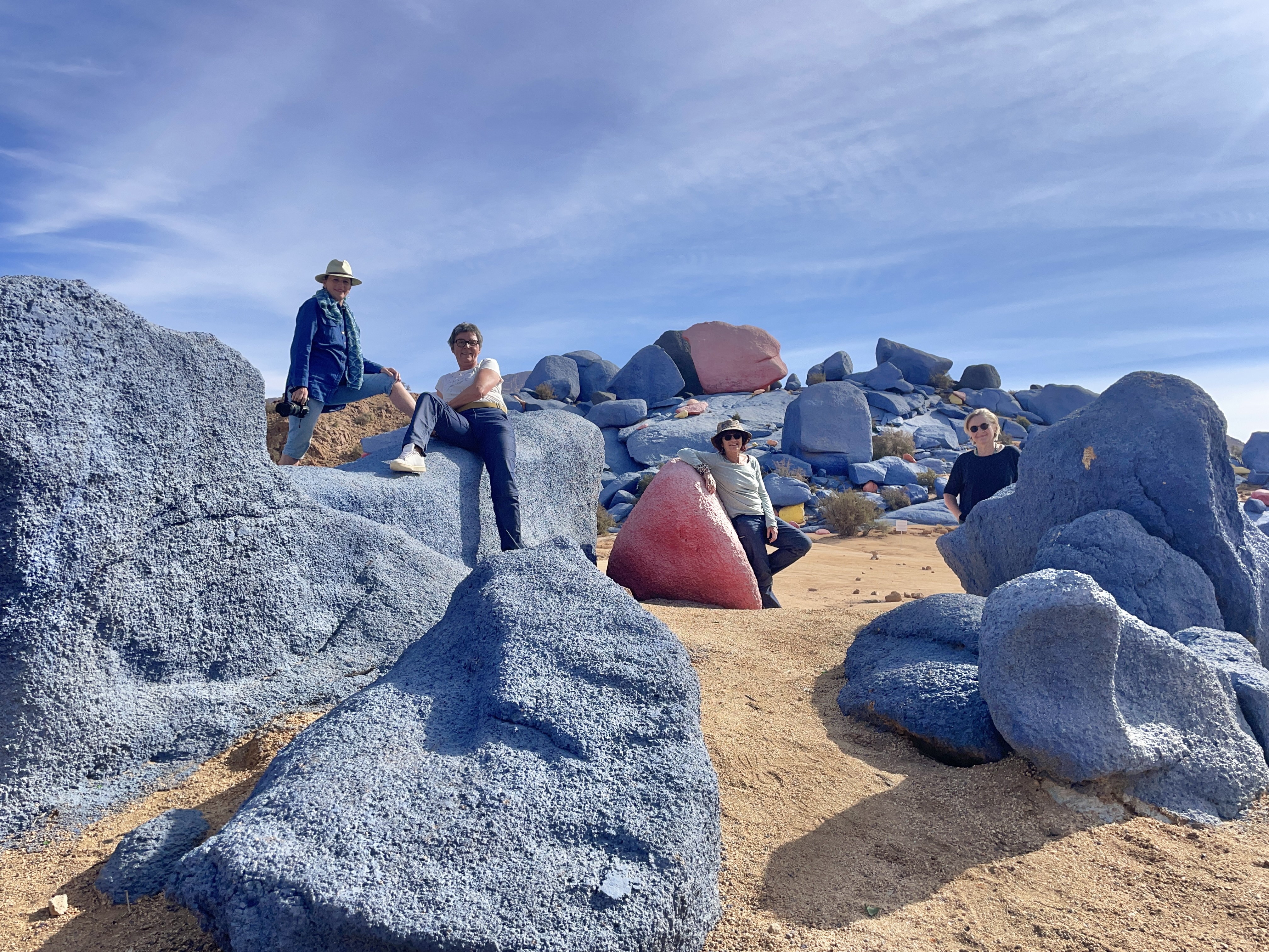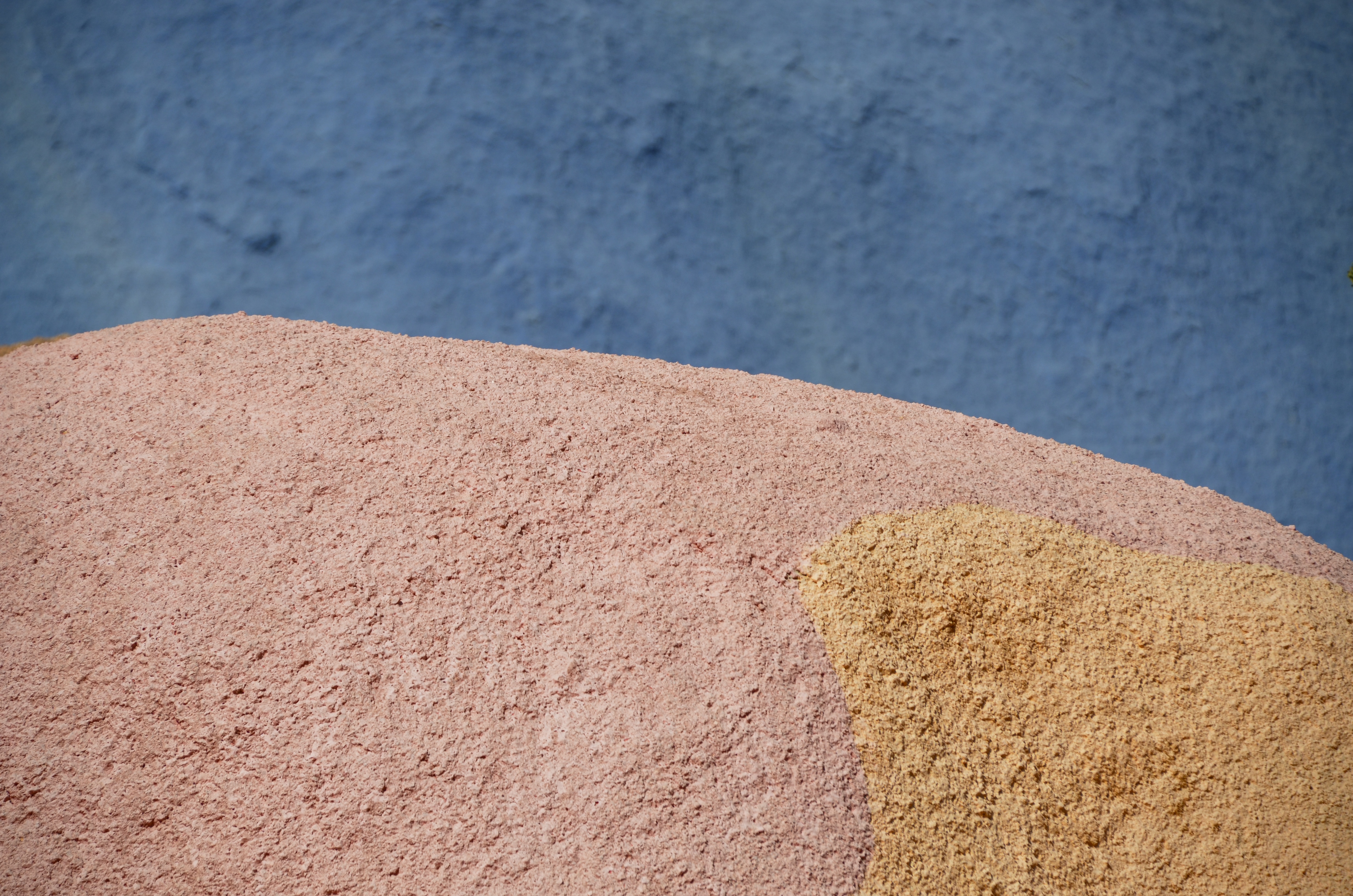 Les rochers bleus : en 1984, le plasticien belge Jean Vérame peint en bleu quelques-uns de ces blocs de granit. L’on aime ou pas. De loin cela ne me plaît guère, surtout qu’il y en a beaucoup plus que lors de mon premier passage en 2010, quand même 30 ans après. Mais en s’approchant c’est très graphique et l’adjonction d’autres couleurs assez pastel est du plus bel effet. Le site est bien entretenu, quasi pas de déchets.