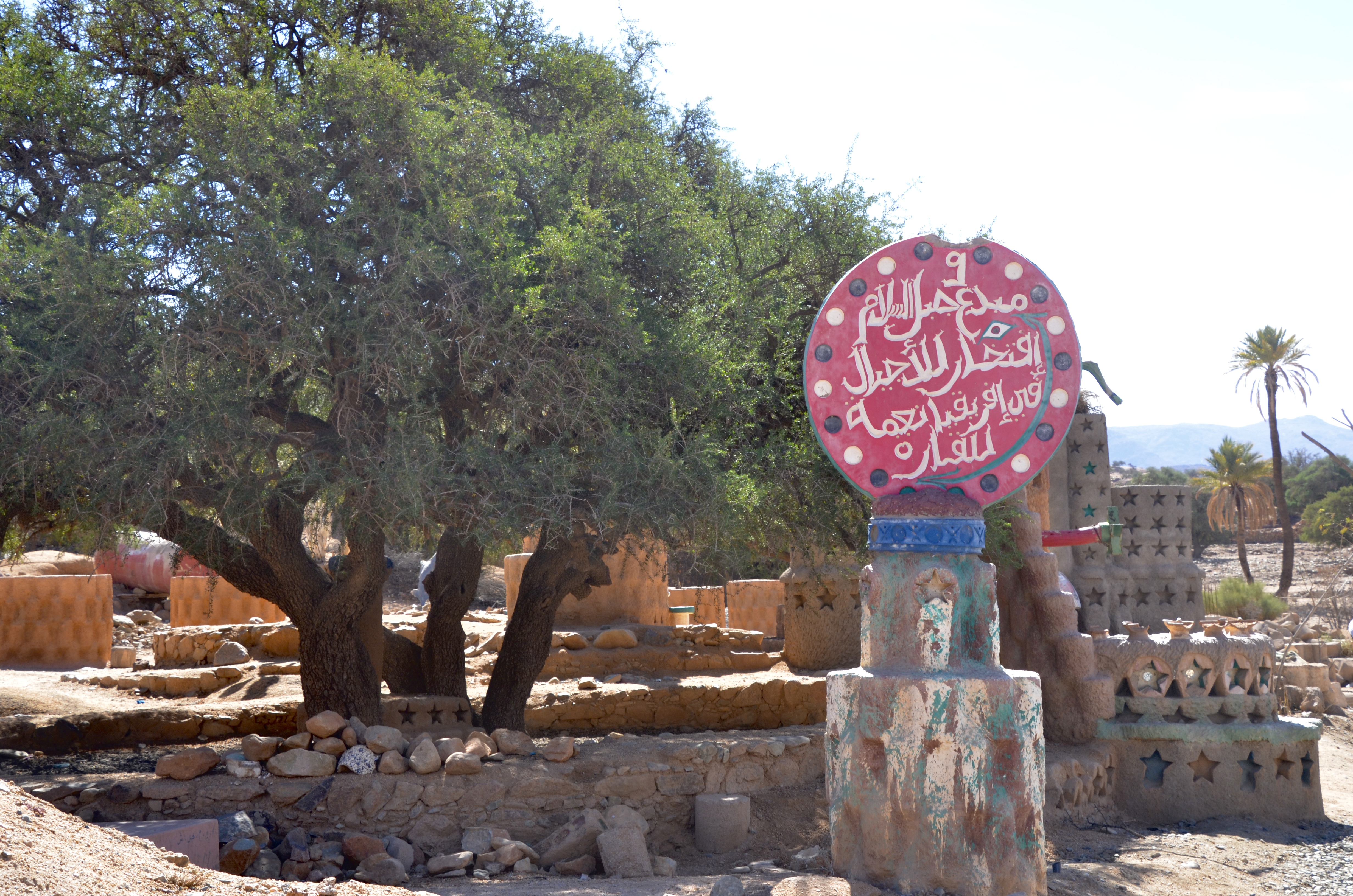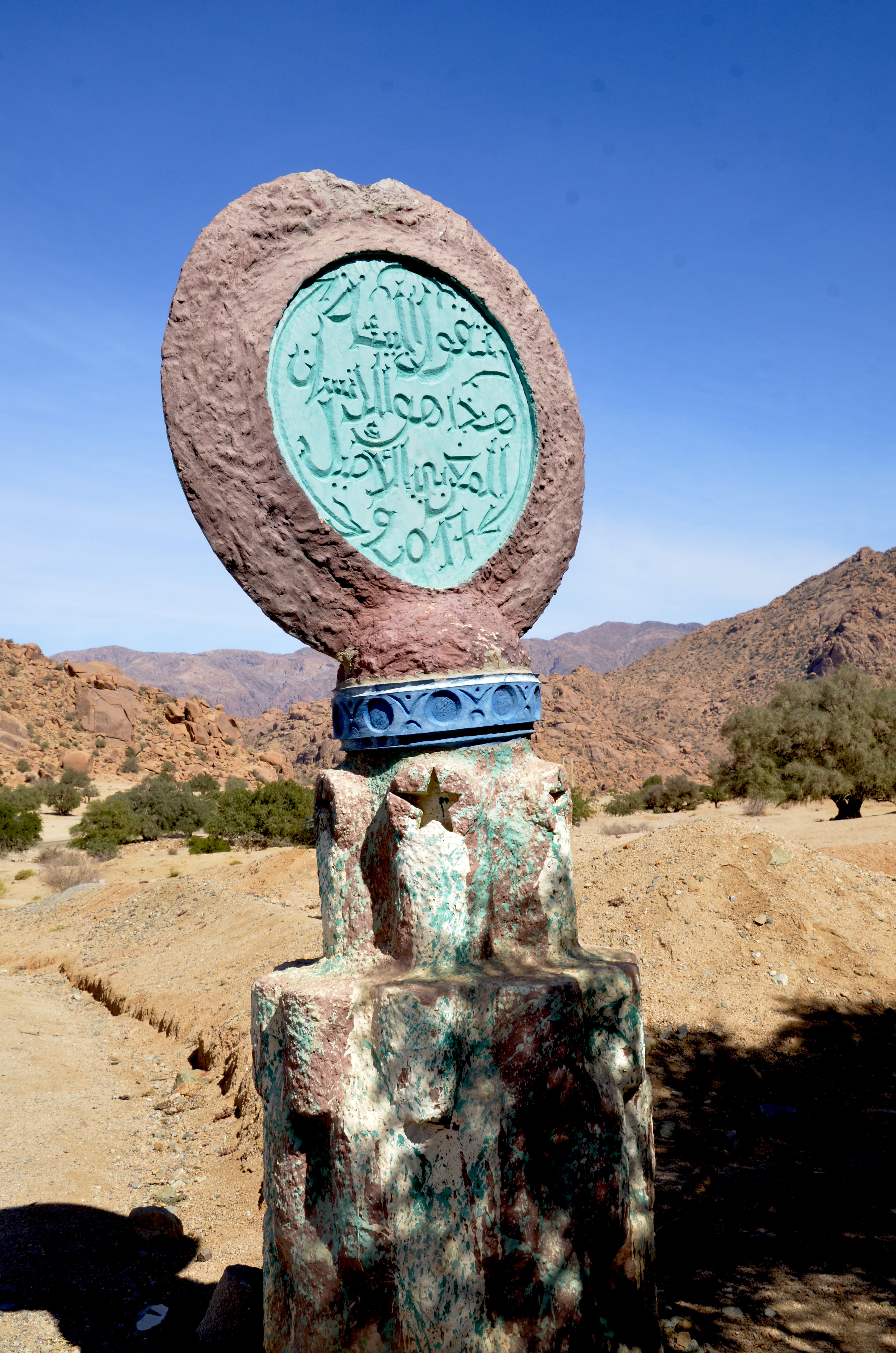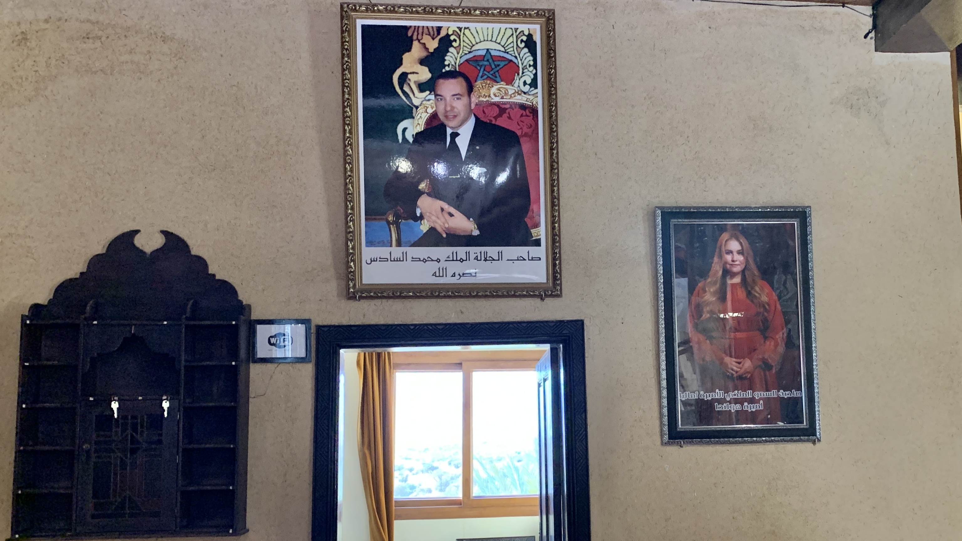 Notre sympathique hébergement où je reviens à chaque fois que je passe par là. Tenu, avec succès, par Lisbeth depuis 18 ans, qui n’oublie pas sa Hollande natale. Année après année c’est un plaisir de découvrir la nouvelle photo d’Amalia, Son Altesse Royale la princesse héritière des Pays-Bas, née le 7 décembre 2003. Peut-être passera-t-elle un jour par Tafraout. Elle côtoie sur le mur, Sa Majesté le roi du Maroc, Mohammed VI.