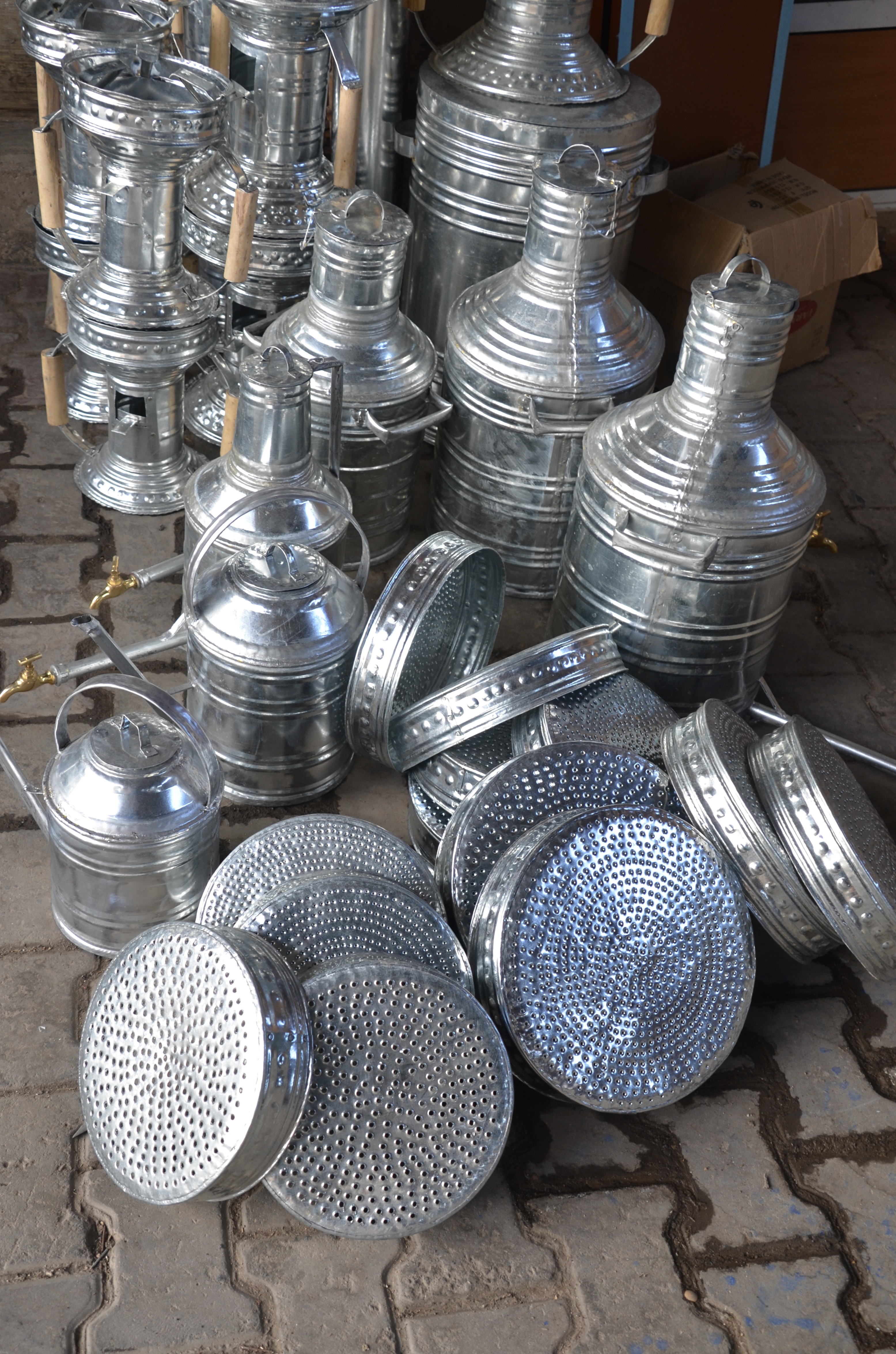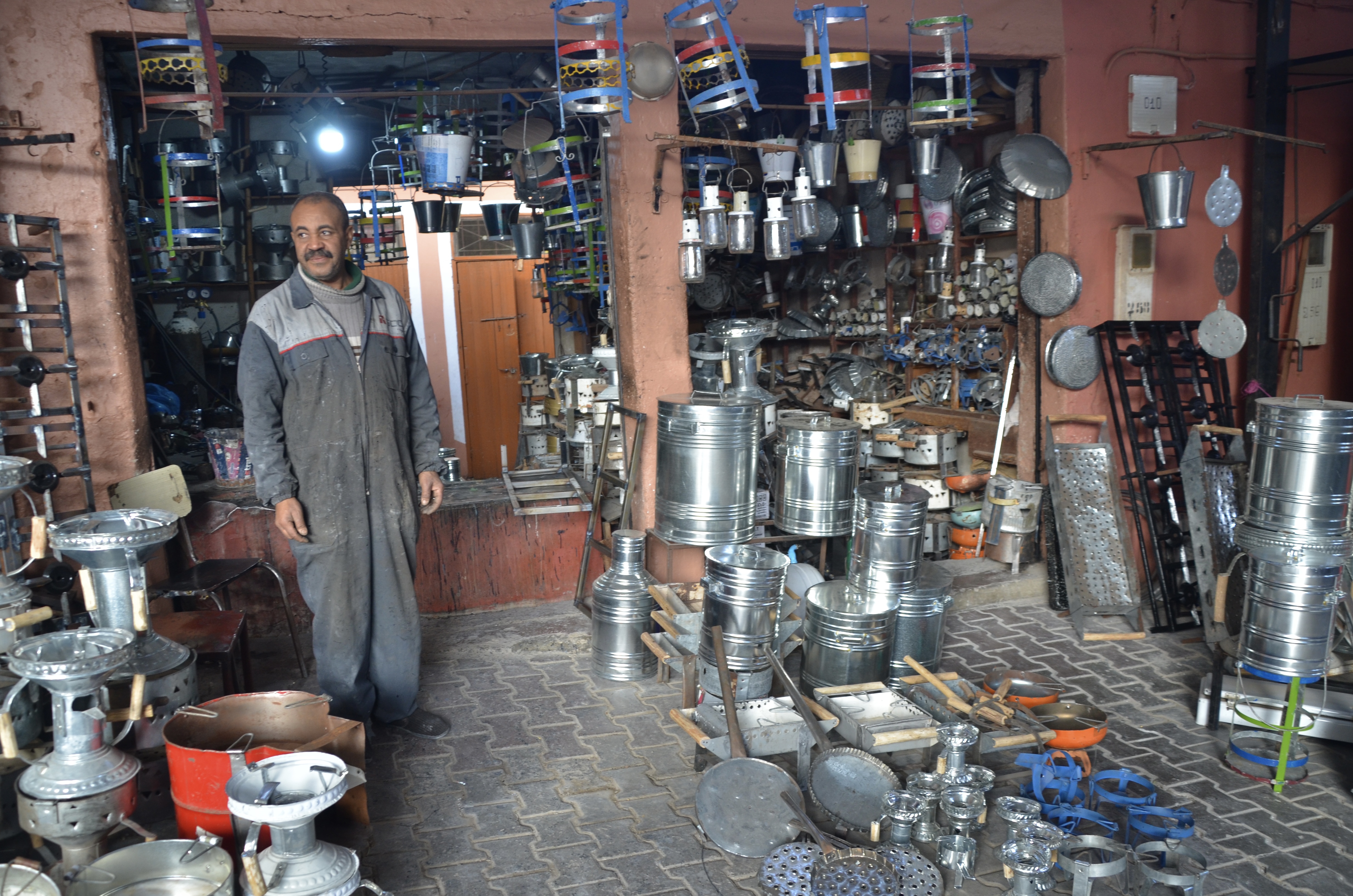 Chez le dinandier plein d’objets ingénieux en matériaux de récupération.