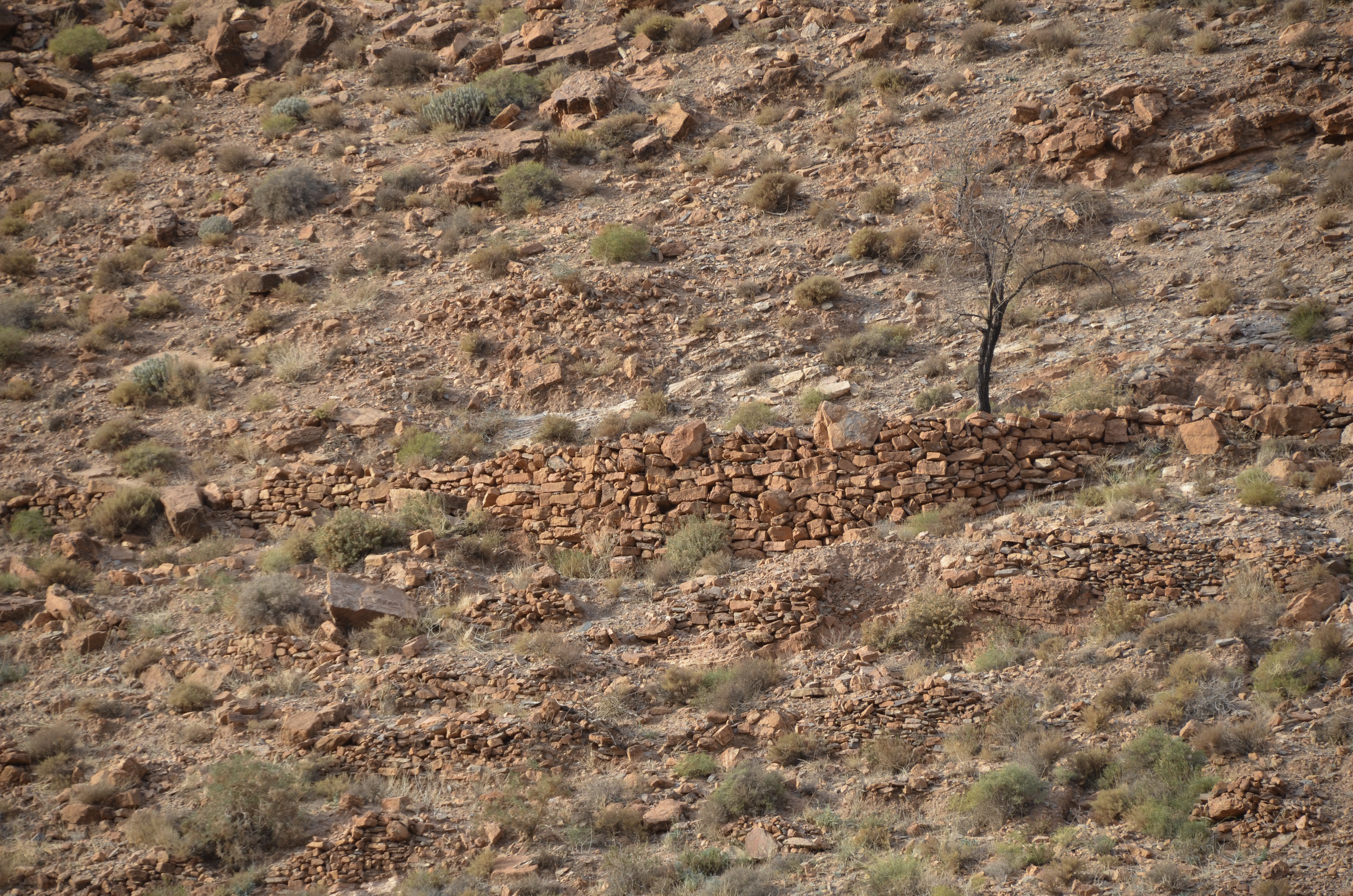 L’ancienne piste pour Tafraout, bordée de beaux murs en pierre sèche. Abdou y guide des randonnées.