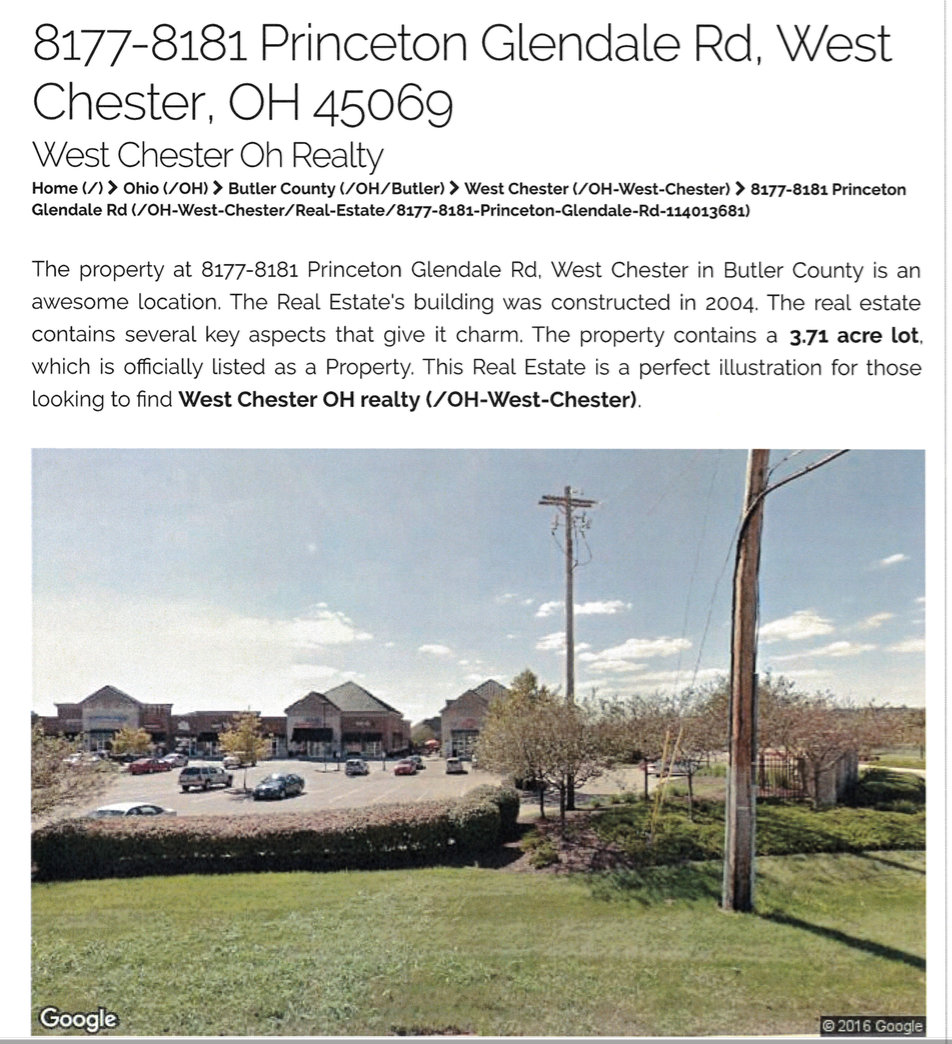 8177‐8181 Princeton Glendale Rd, West Chester the property at 8177‐8181 Princeton Glendale Rd, West Chester in Butler County is an awesome location. The Real Estate's building was constructed in 2004. The real estate contains several key aspects that give it charm. The property contains a 3.71 acre lot. which is officially listed as a Property. This Real Estate is a perfect illustration for those looking to find West Chester OH realty (/OH-West-Chester).