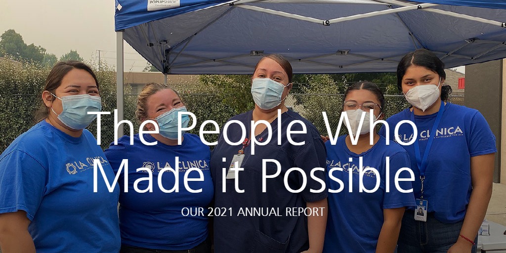 How did La Clinica make it through 2021 after 2020, the year when the COVID-19 pandemic upended everything as all of us knew it? This annual report is the story of some of that journey at La Clinica and of the brilliant, innovative, and committed caregivers and other team members I am deeply honored to work alongside every day.