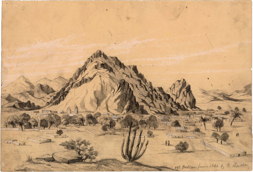Y fue hasta después de la guerra entre México y Estados Unidos Americanos, en 1854, cuando surge la primera visión del montículo, plasmado en un dibujo por el norteamericano John Russel Bartlett.