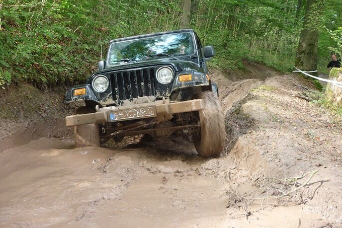 Der Wrangler hat in der Regel eine "Wattiefe" von gut 50 cm. Kurzzeitig sind aber auch 80 cm möglich. Alles darüber bringt die Gefahr, dass Wasser angesaugt wird und so den Motor zerstört oder in den Innenraum eindringt.