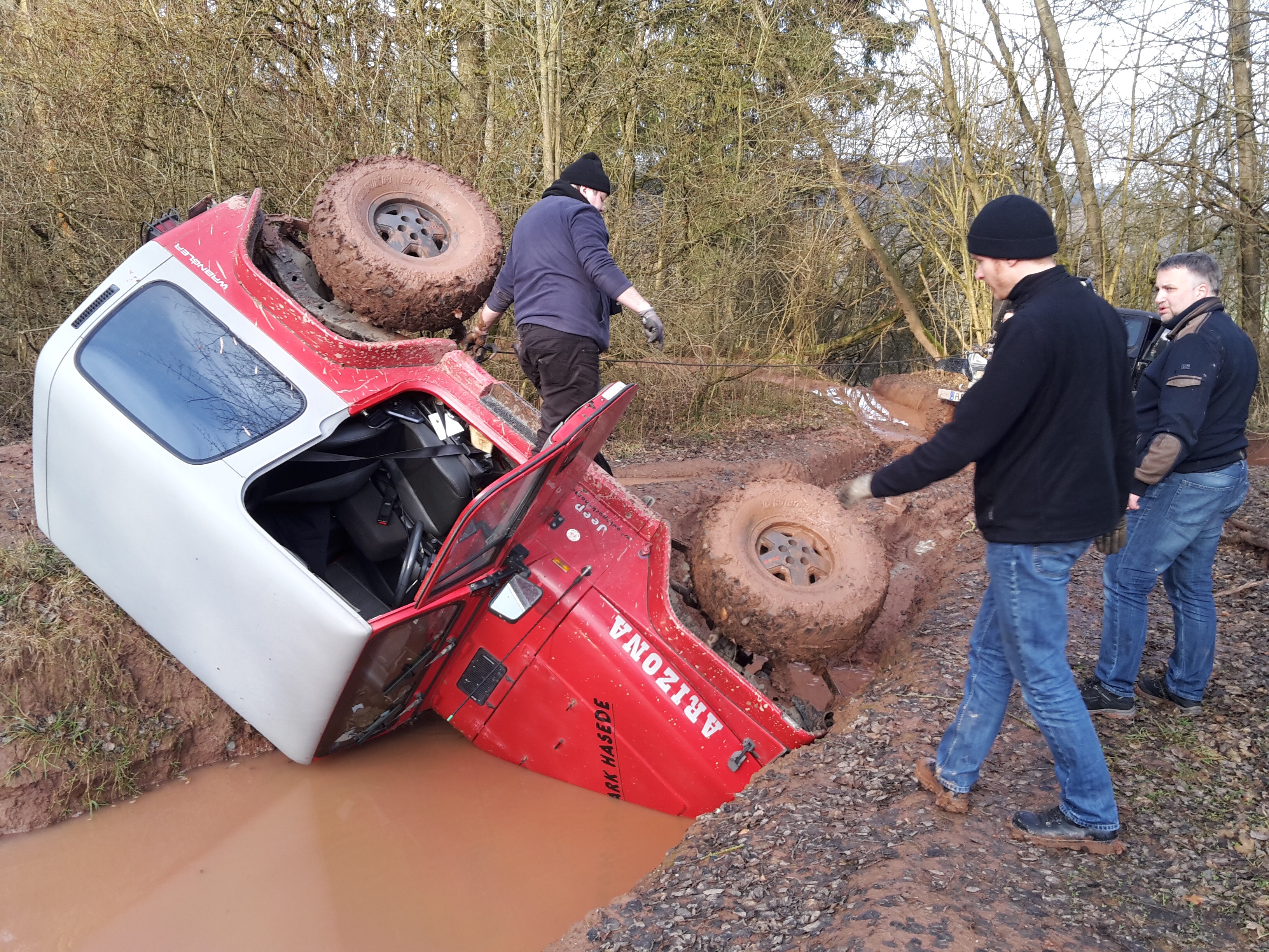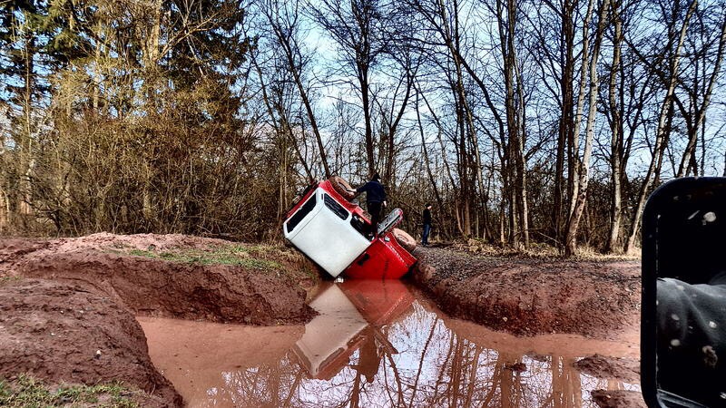 Das obige Video markiert den heftigsten Einsatz im Offroadpark "Mammut". Dabei lief auch Schlamm ins Innere des Wagens. So musste nicht nur der Motorraum und der Kühler ausgiebig gereinigt und durchgespüllt werden, sondern auch der Innenraum und der Fahrzeugteppich. In vorangegangene Touren im "Mammut" konnte diese Passage bedenkenlos gefahren werden. Siehe Video weiter unten.