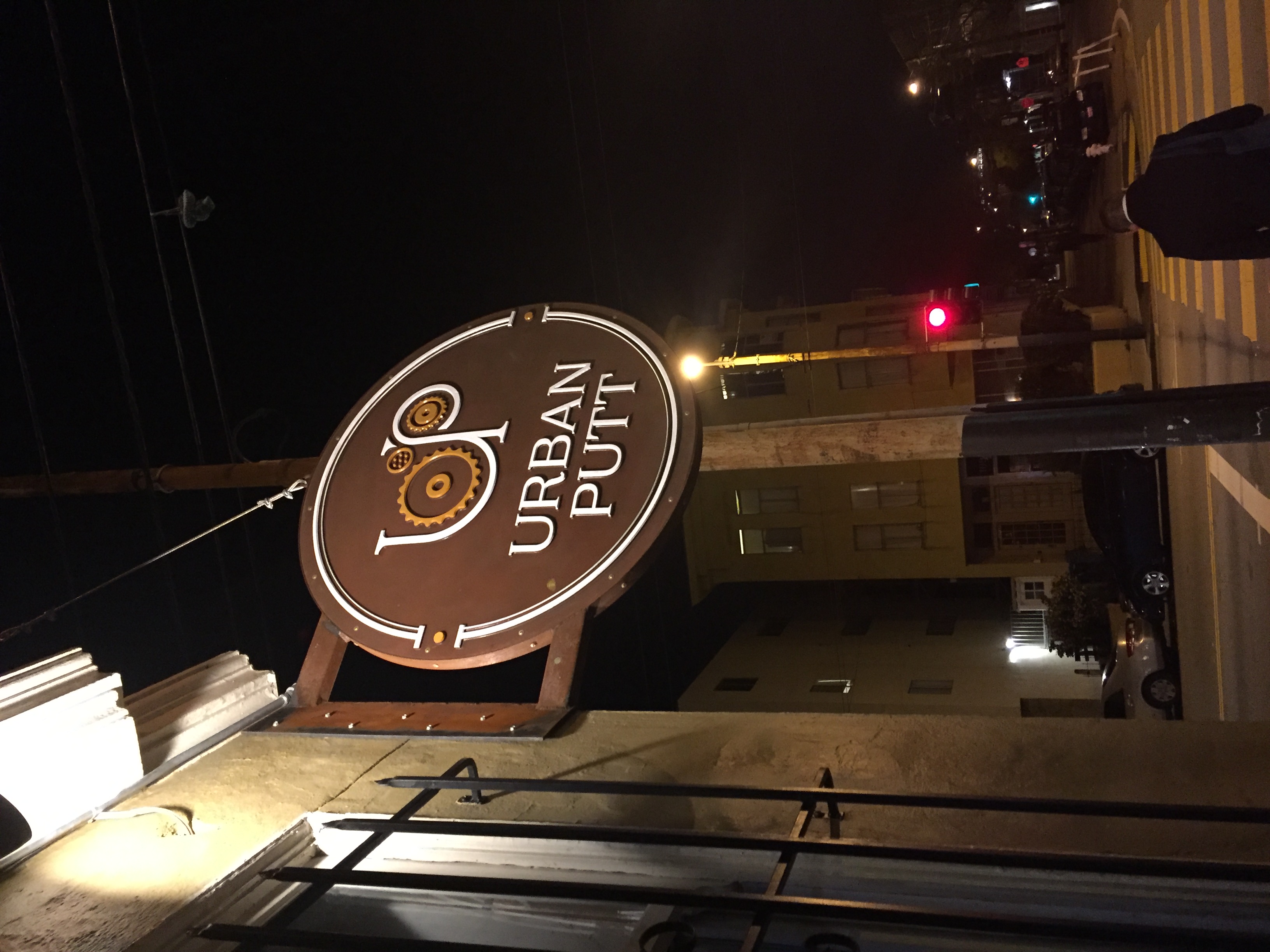Showered and changed and etc, it's time to head out to Urban Putt. Virtually no-one has responded to my "come drink with me in San Francisco" invite so it looks like it might just be the two of us, but actually the Priest will be making an appearance. Excellent.
