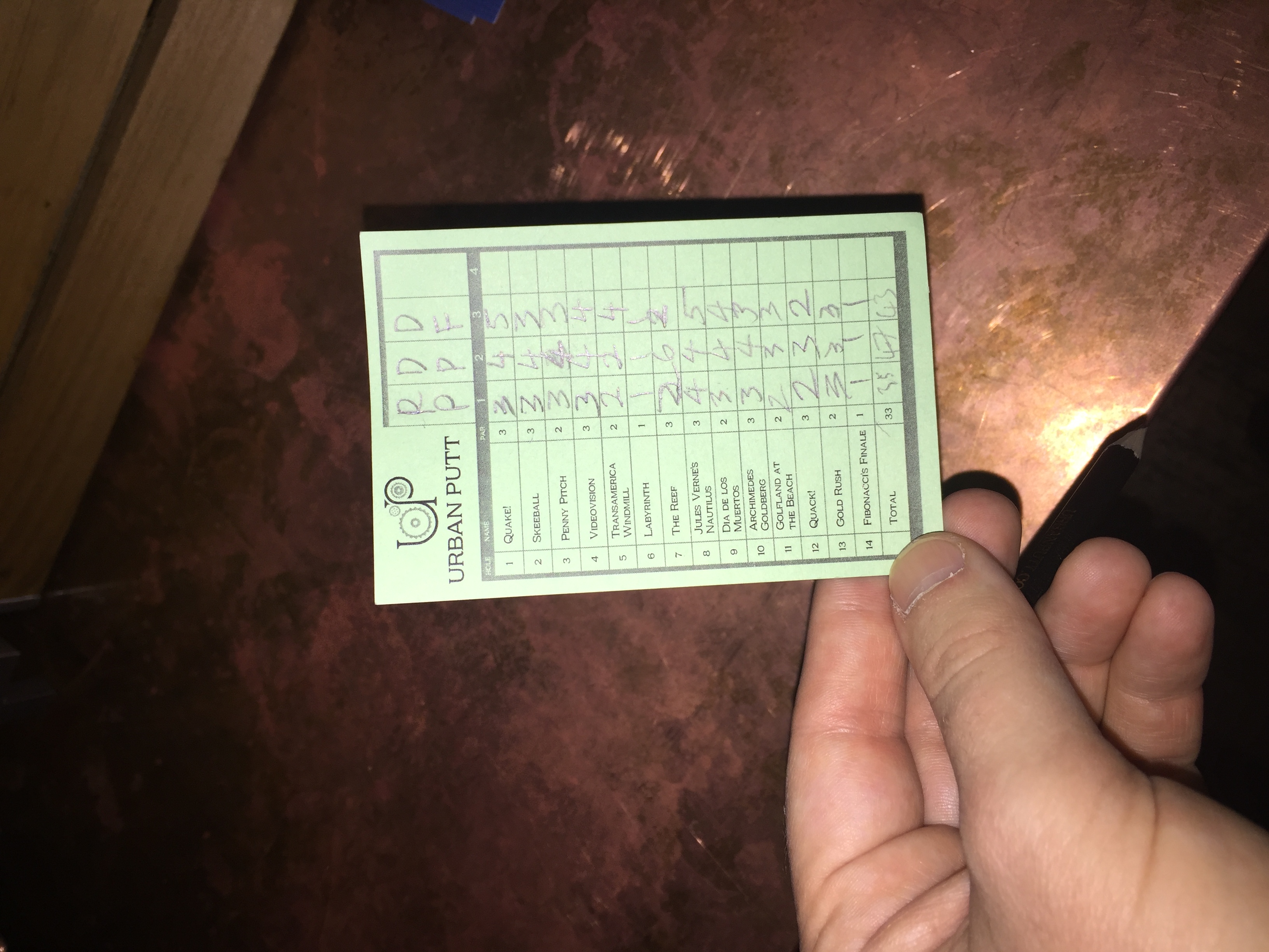 I think we end up losing 17-2 or so. Humiliated. I'm told I didn't do badly for a first timer, but that's total bullshit. Look at the score! Though really I was pretty unlucky to knock them into winning positions rather than off the edge. Whatever. It's a good game, but we have other sports to play and so piss off towards Urban Putt. Literally as we exit we bump into the Priest, or "t'other Darren" as we each refer to one another. Huzzah! Now let's go play golf.
